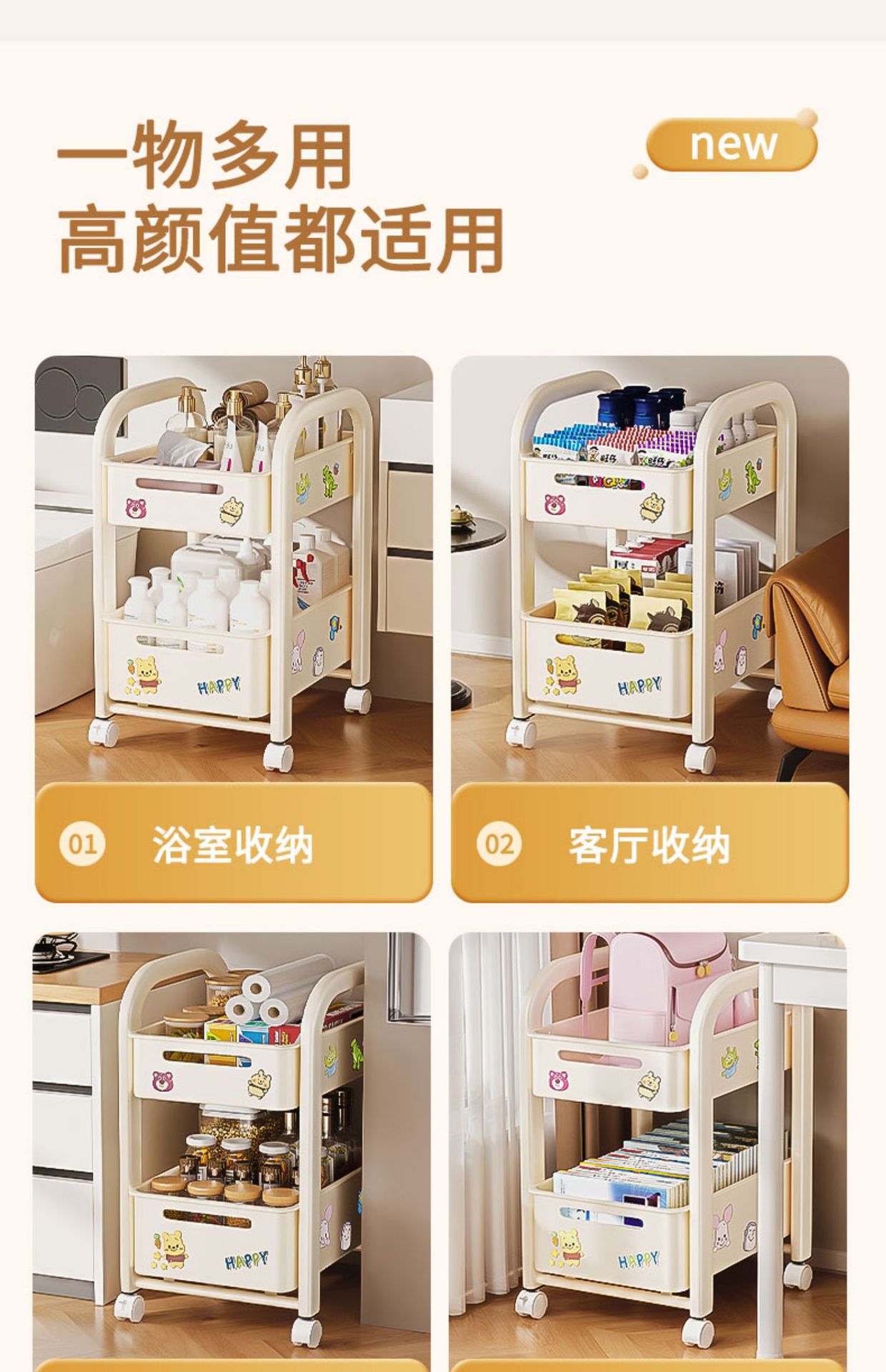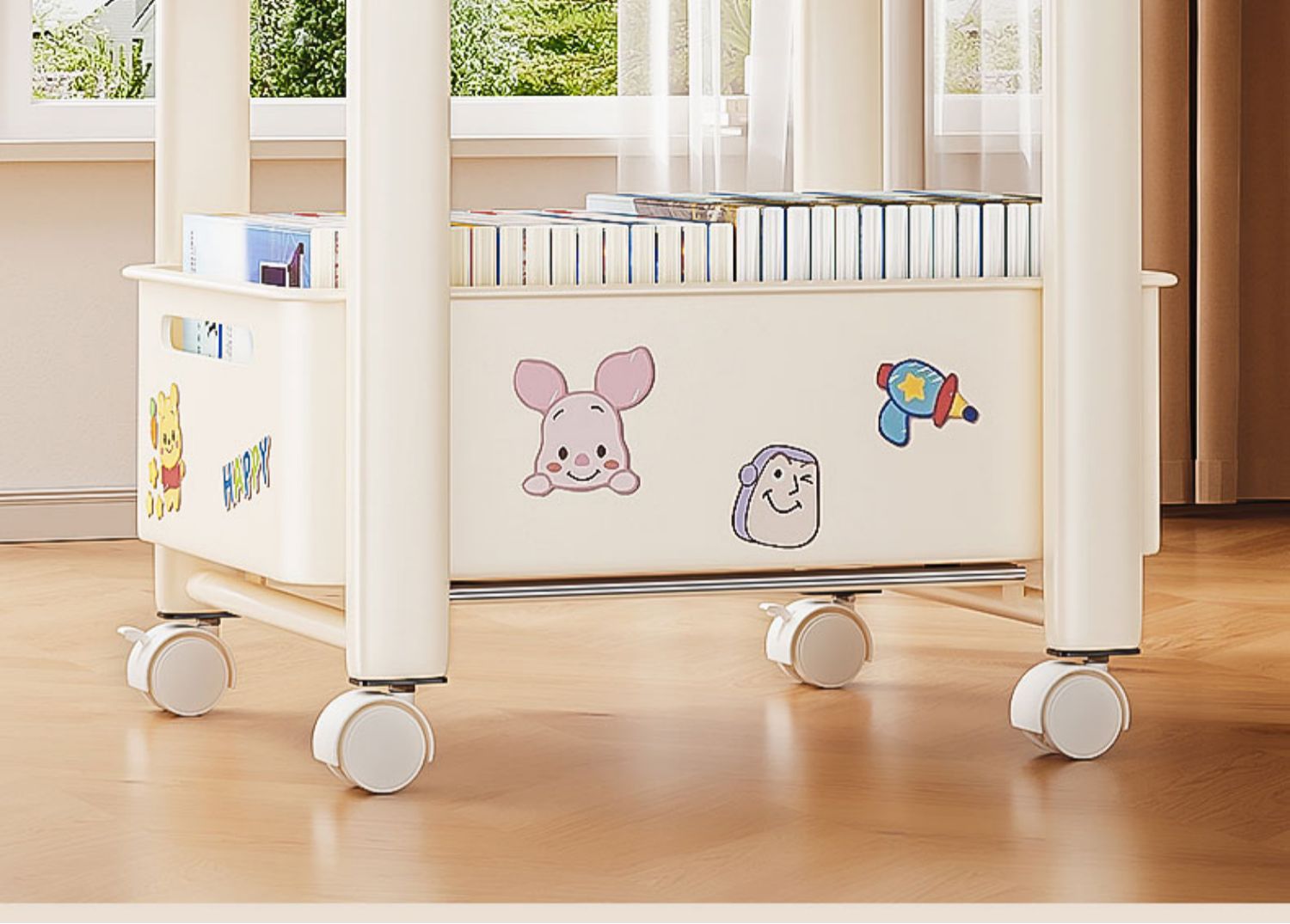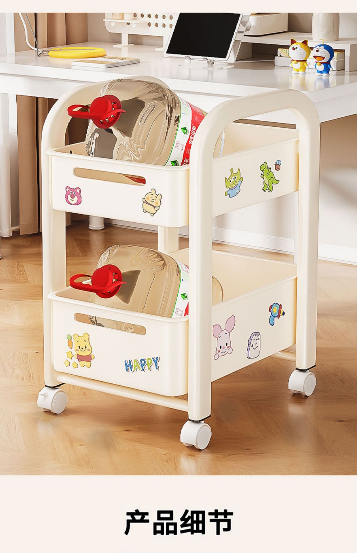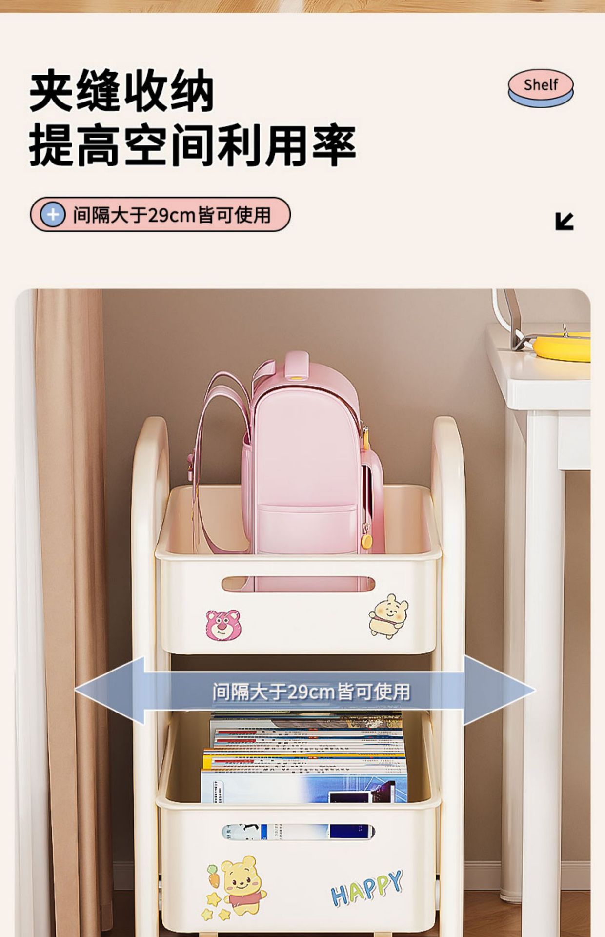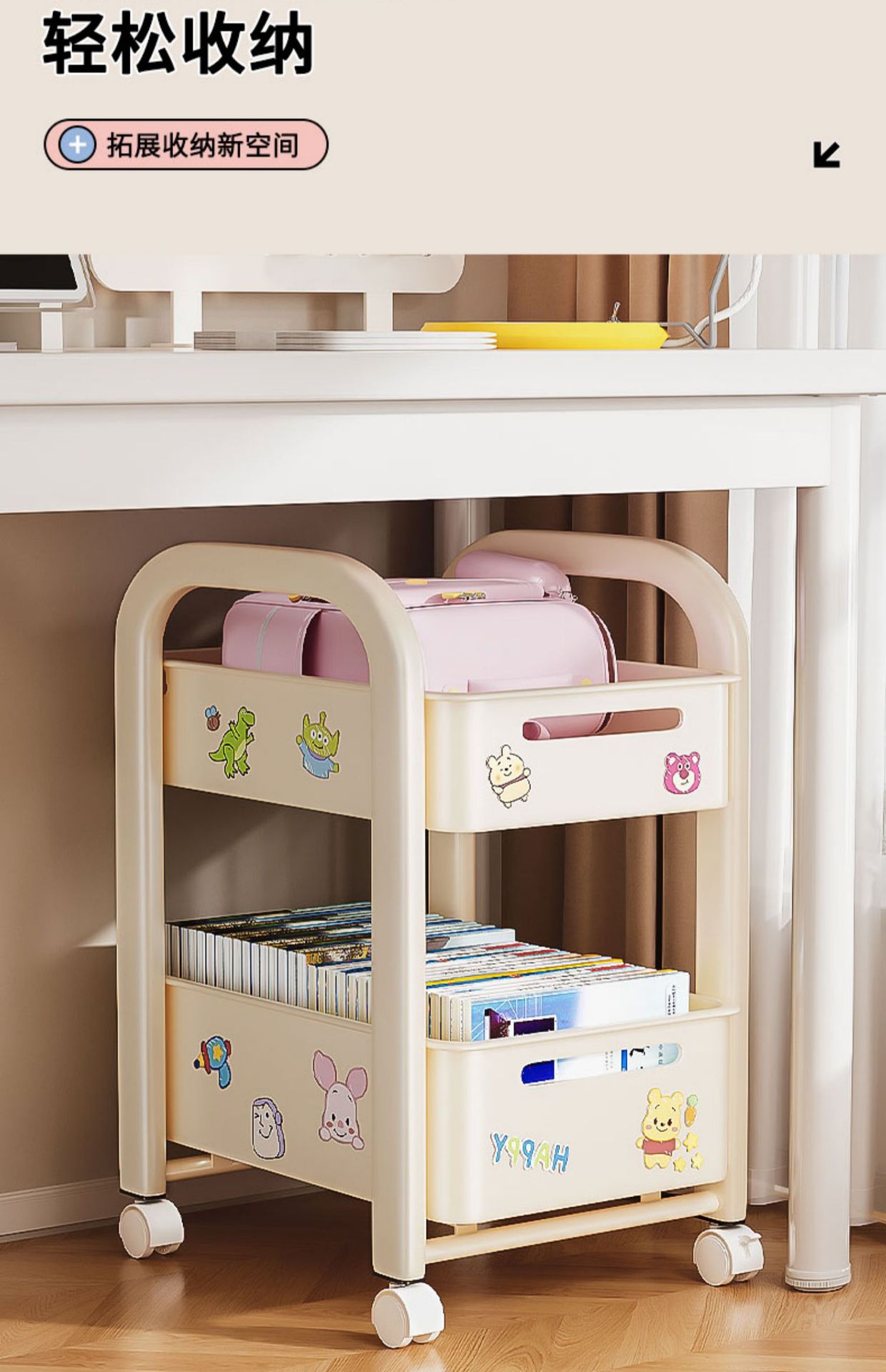 바퀴가 달린 Schoolbag 보관 랙 움직일 수있는 책상 바닥 카트 책 배치 랙 유물 책장 보관 캐비닛