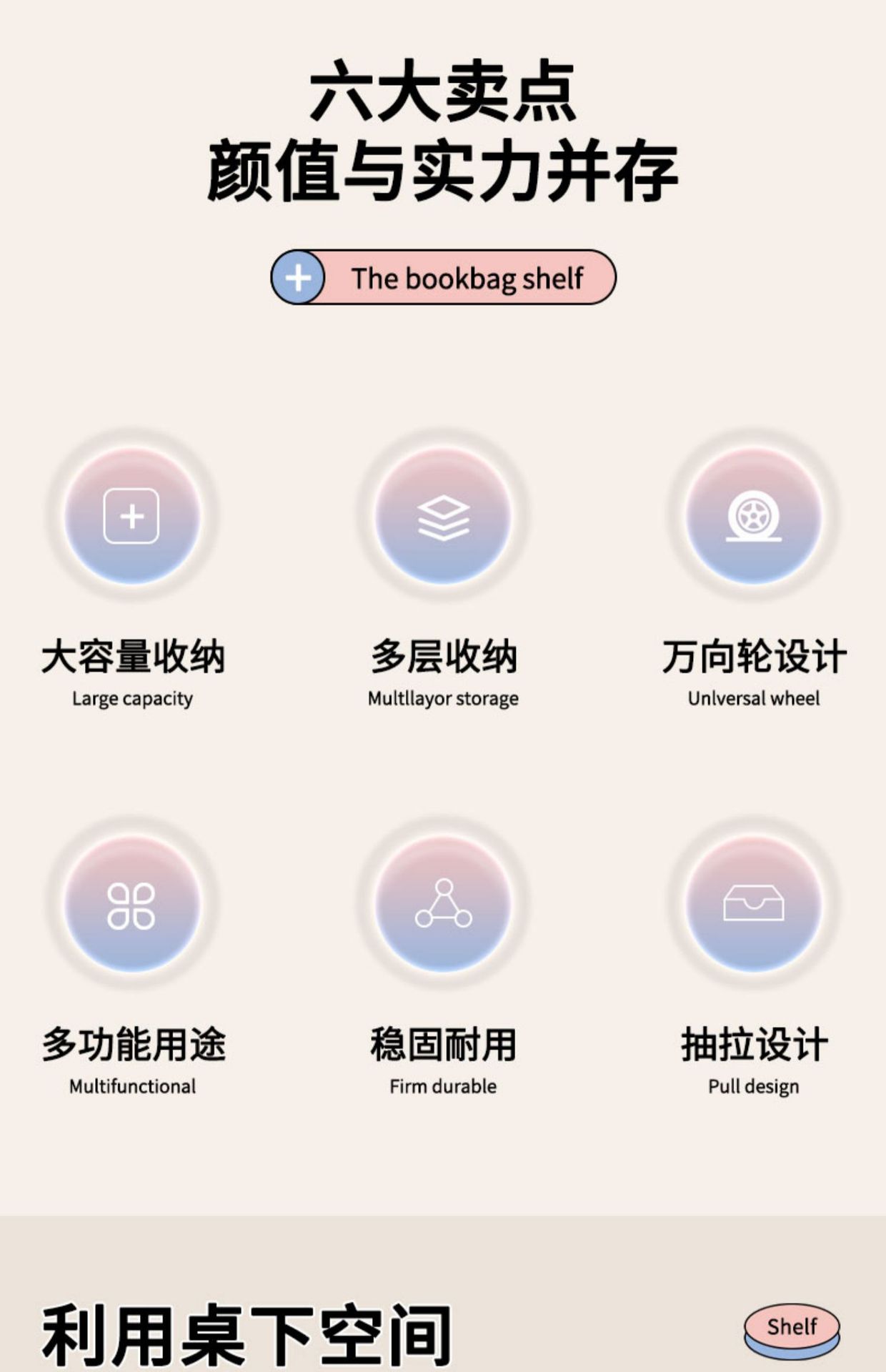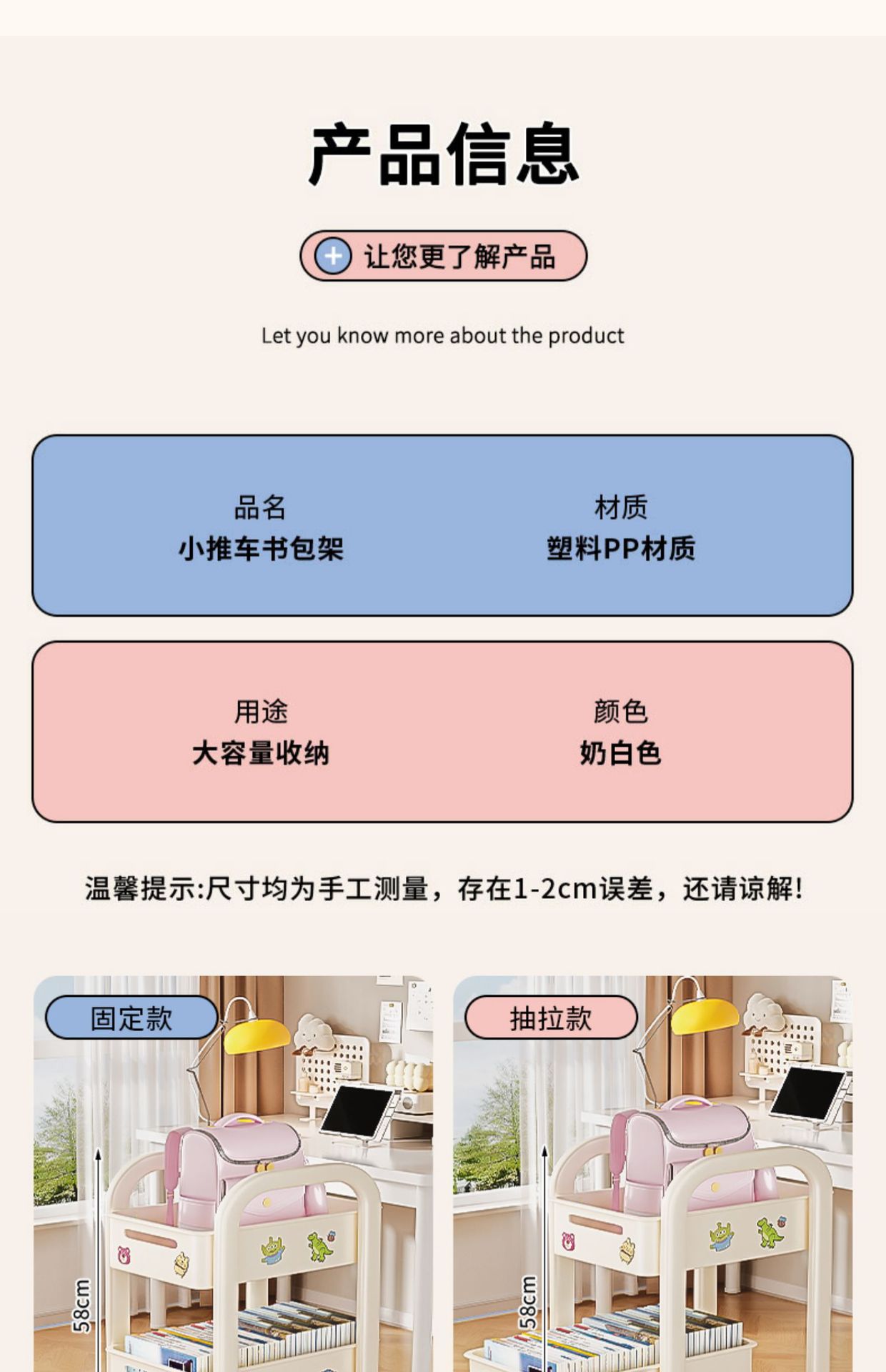 • 소형 더블 레이어*타원형 튜브 고정 책가방 랙*밀크 화이트