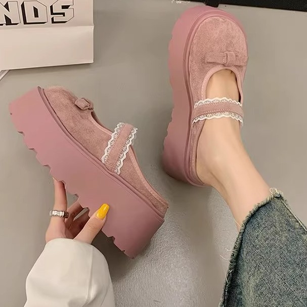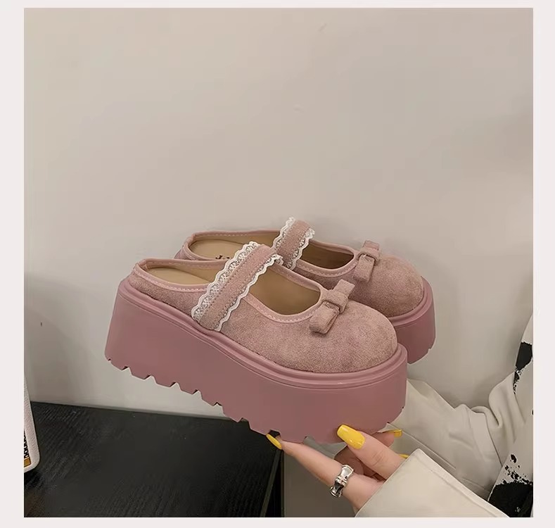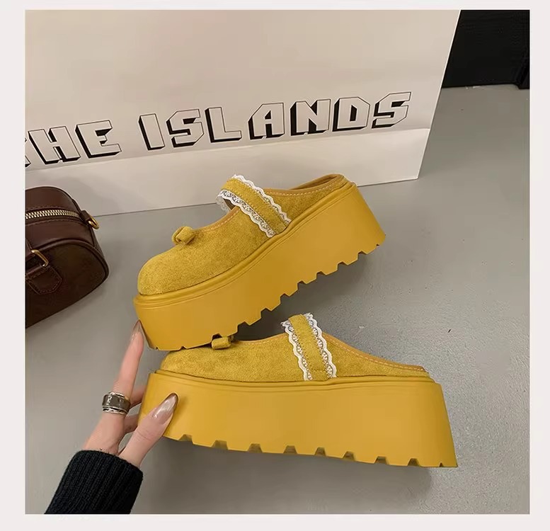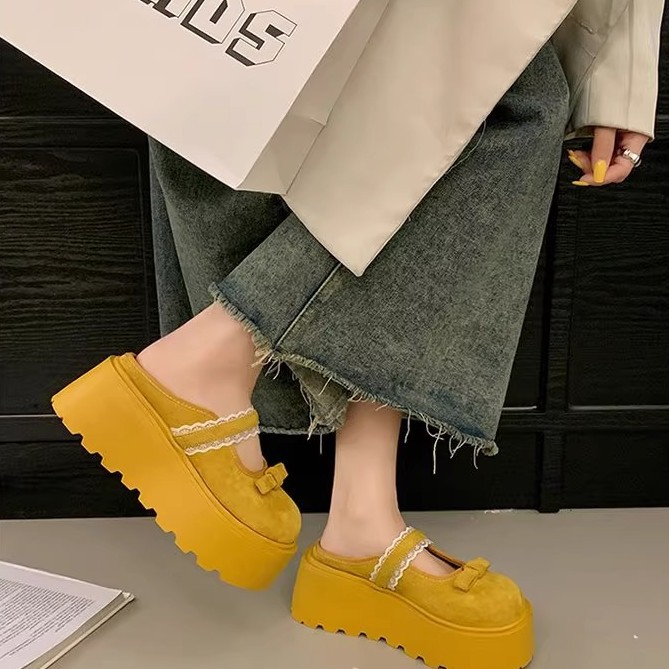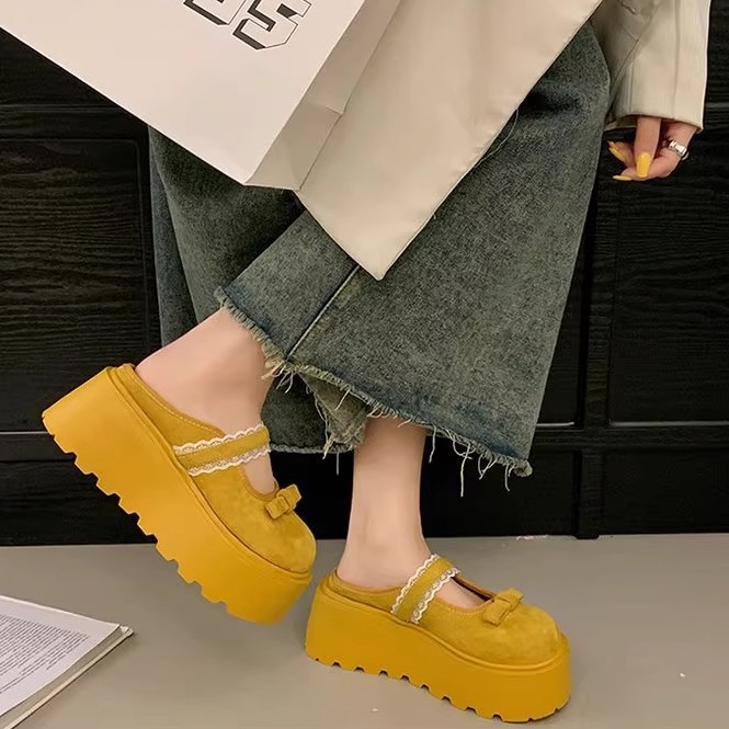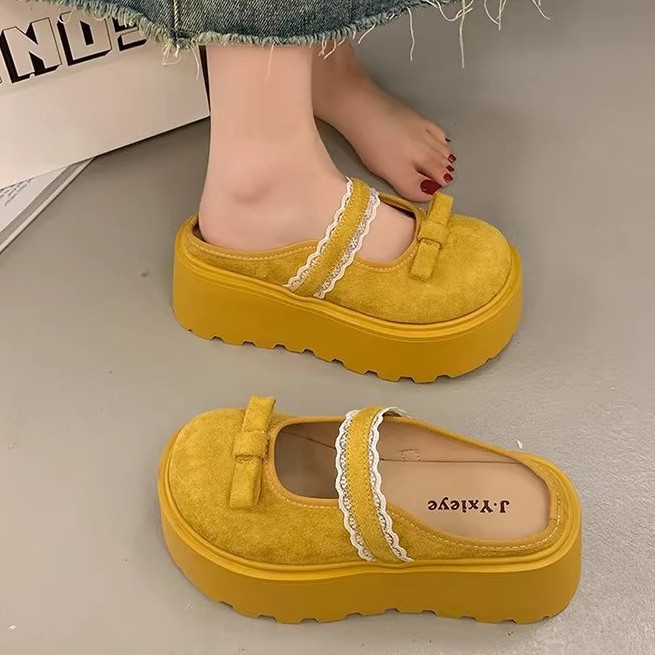 Baotou 반 슬리퍼 2025 봄 신상 두꺼운 밑창 스커트 높이 증가 여성용 Birkenstock 신발 다용도 나비 매듭 샌들
