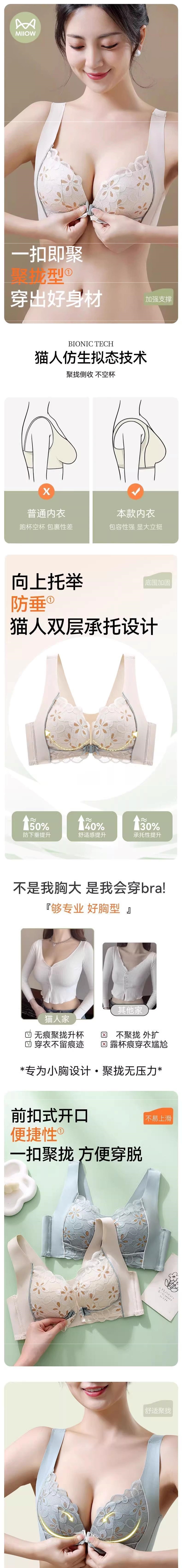 가슴이 작은 여성용 고양이 앞버튼 속옷, 푸쉬업, 보조가슴축소, 처짐방지, 레이스, 와이어프리 조끼스타일 브라스토어 가기