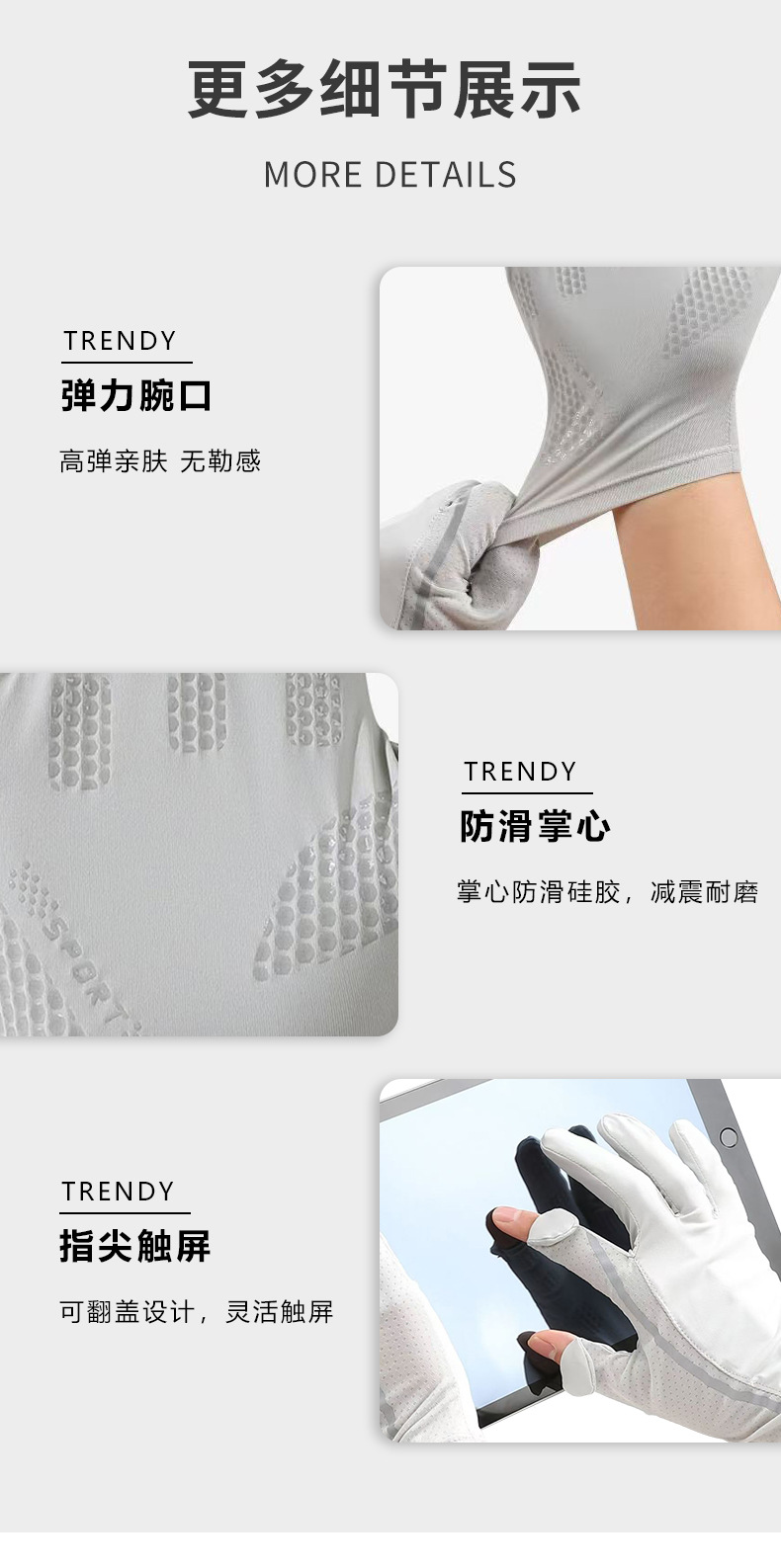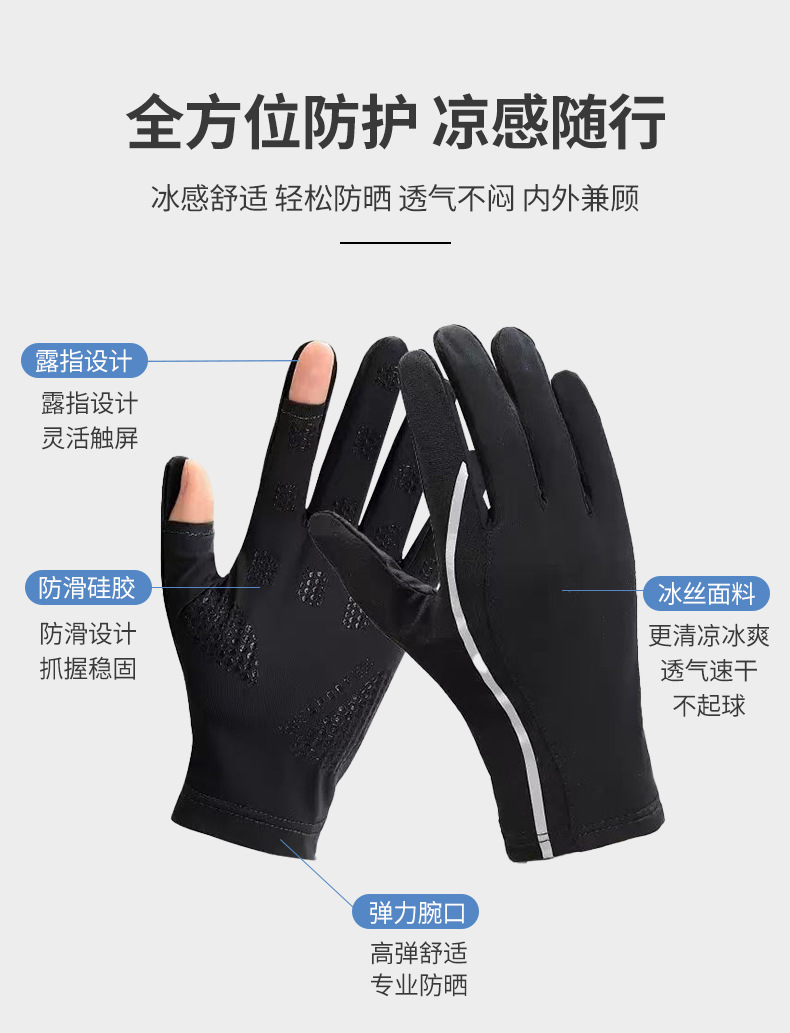 도매 여름 남자 얼음 실크 태양 보호 장갑 얇은 통기성 플립 커버 터치 스크린 장갑 야외 사이클링 미끄럼 방지 장갑