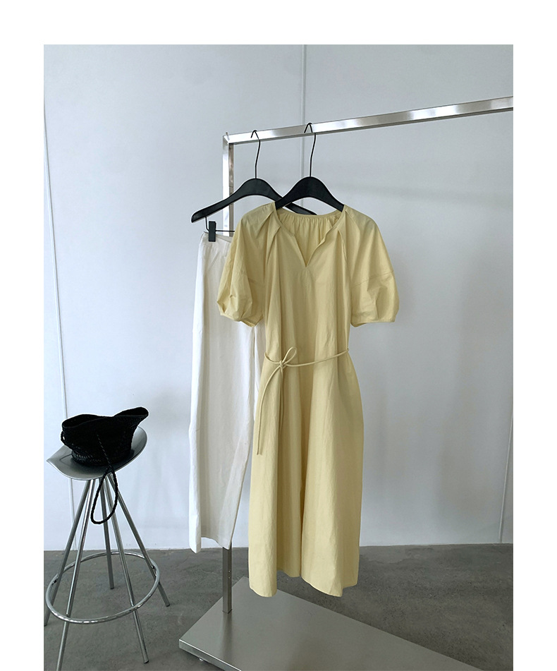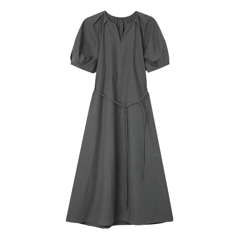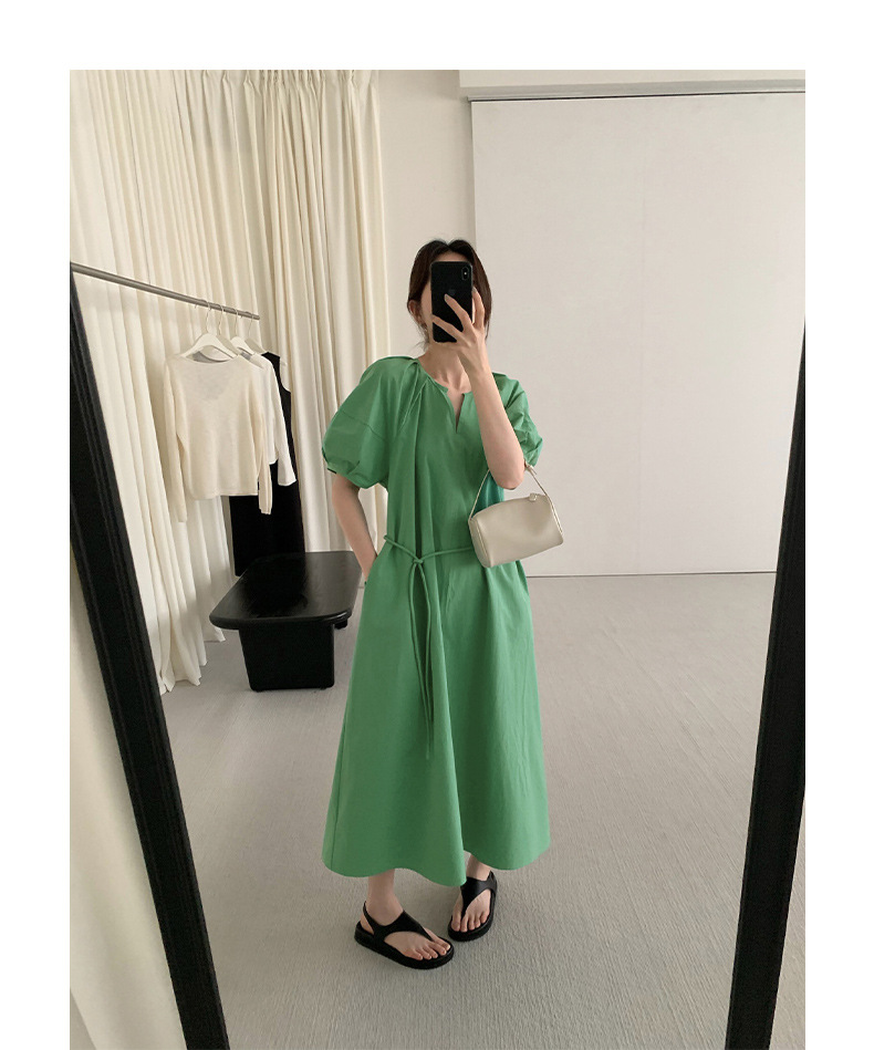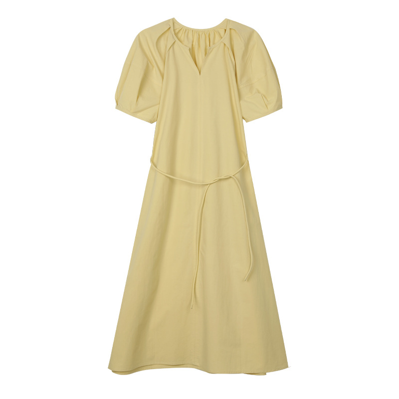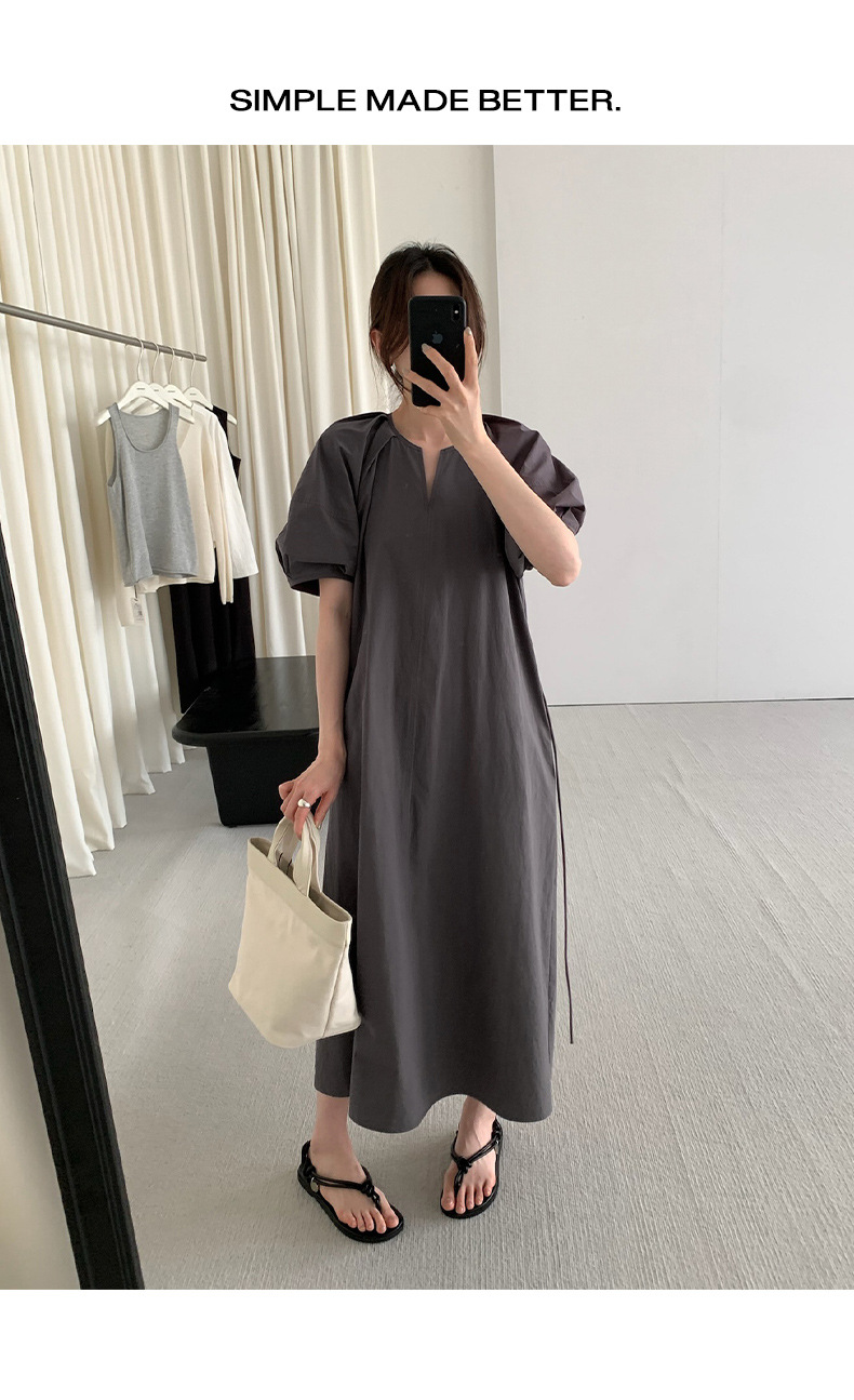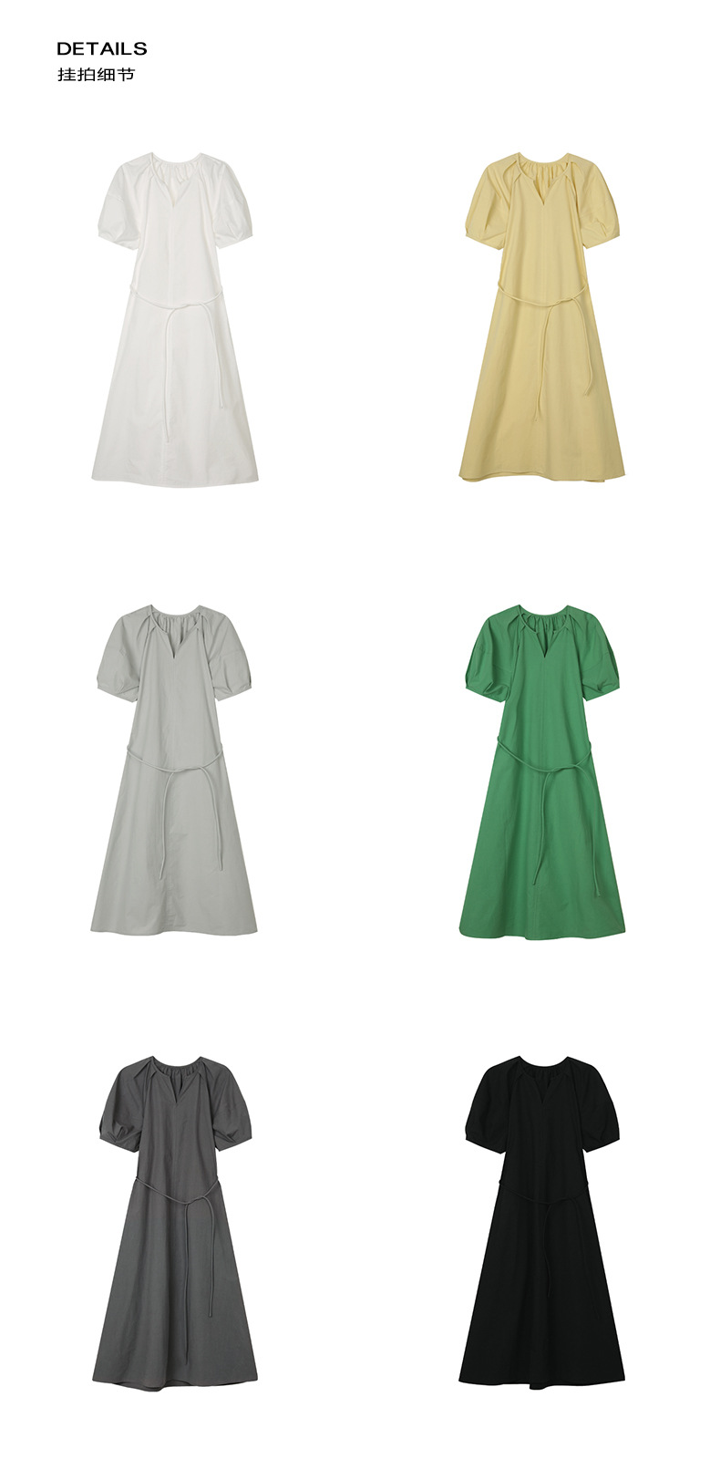 TG 프렌치 스타일 우아한 핀치 주름진 퍼프 슬리브 원피스 여성 2025 년 여름 새로운 소형 V 넥 레이스 업 롱 원피스 24850스토어 가기