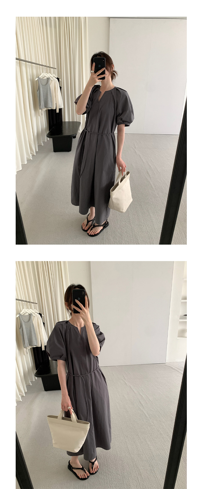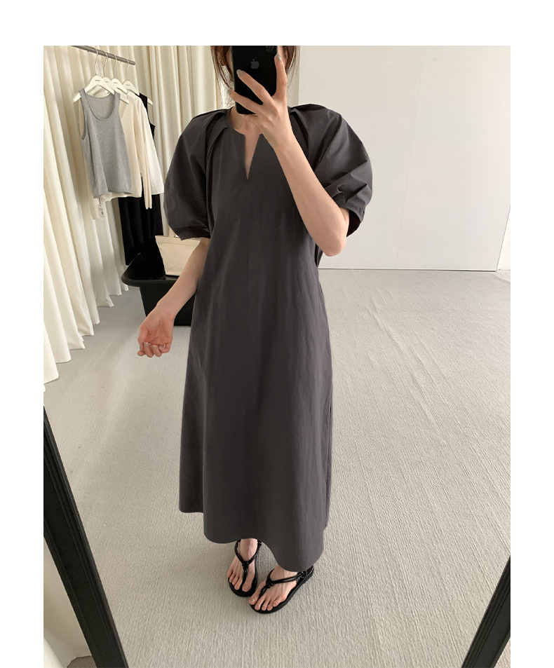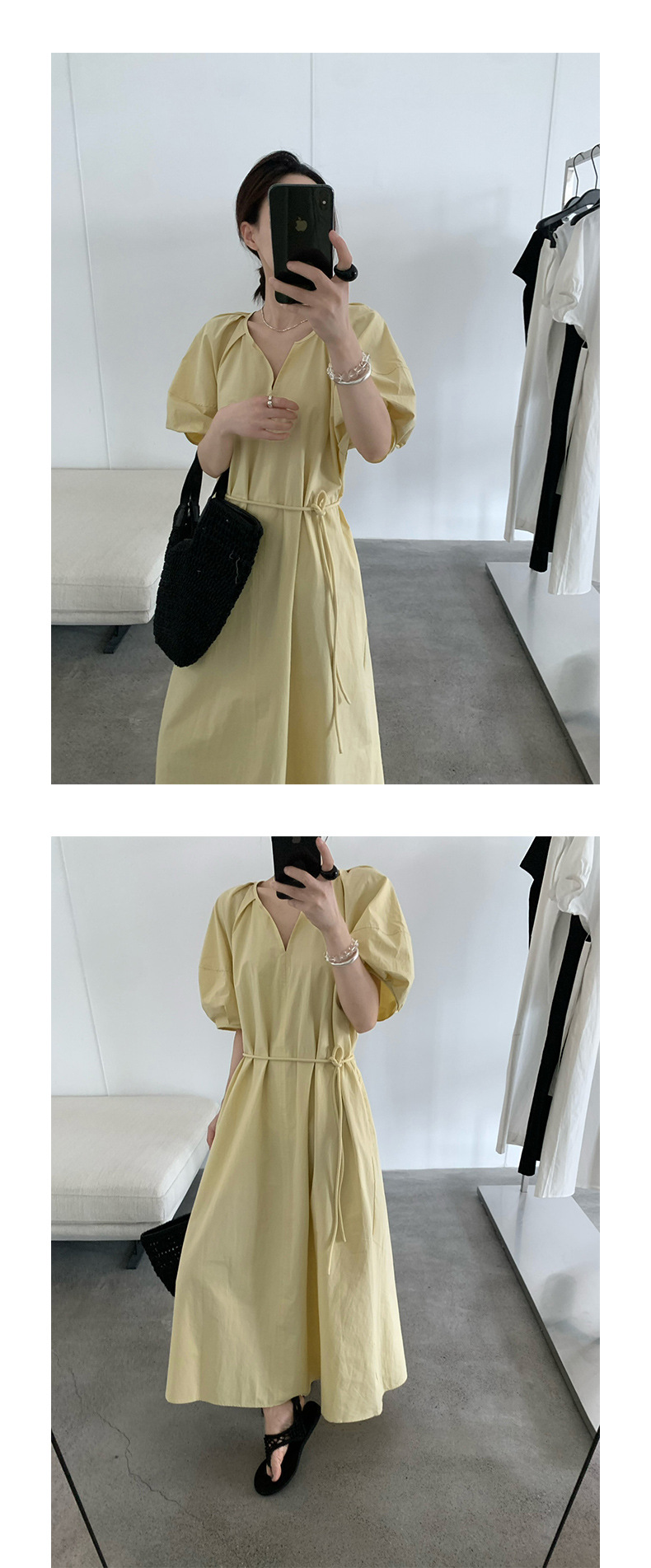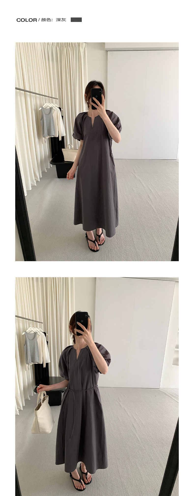 TG 프렌치 스타일 우아한 핀치 주름진 퍼프 슬리브 원피스 여성 2025 년 여름 새로운 소형 V 넥 레이스 업 롱 원피스 24850스토어 가기