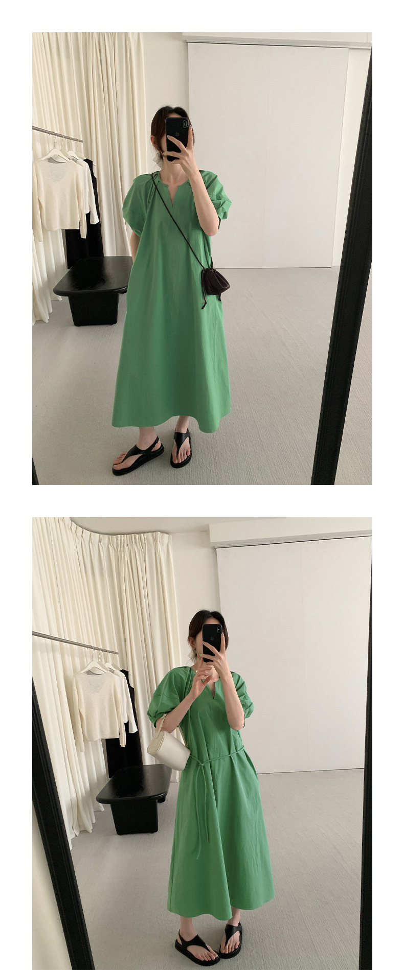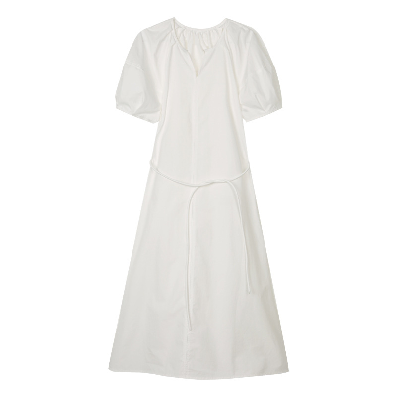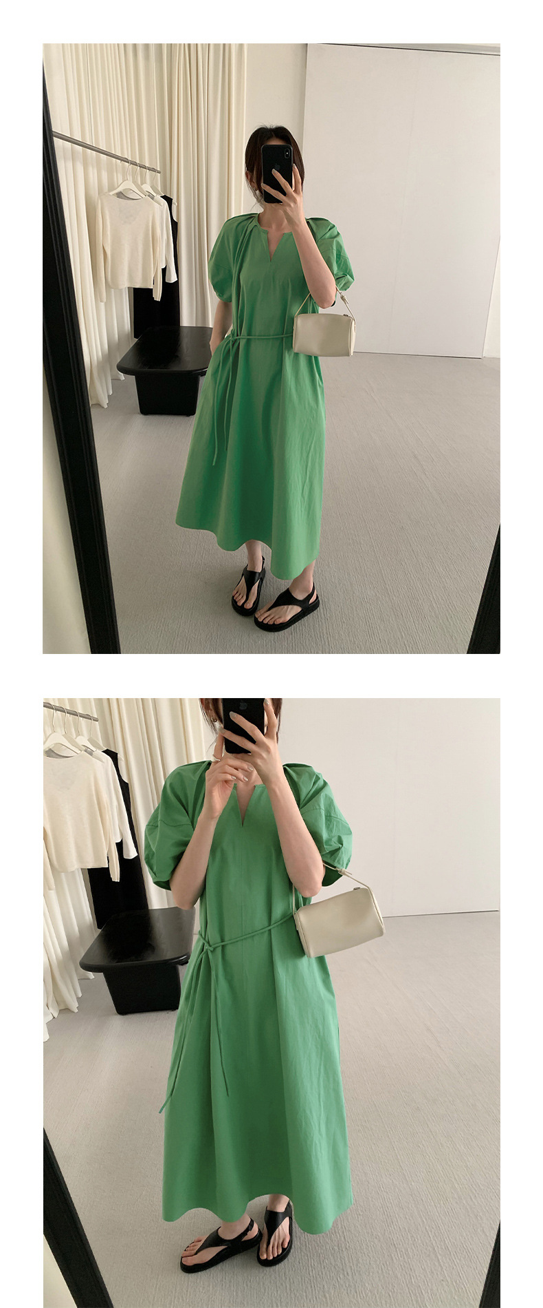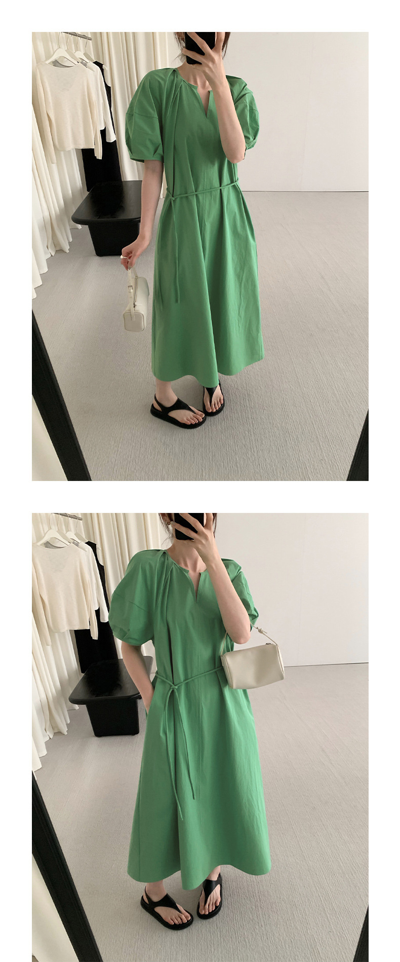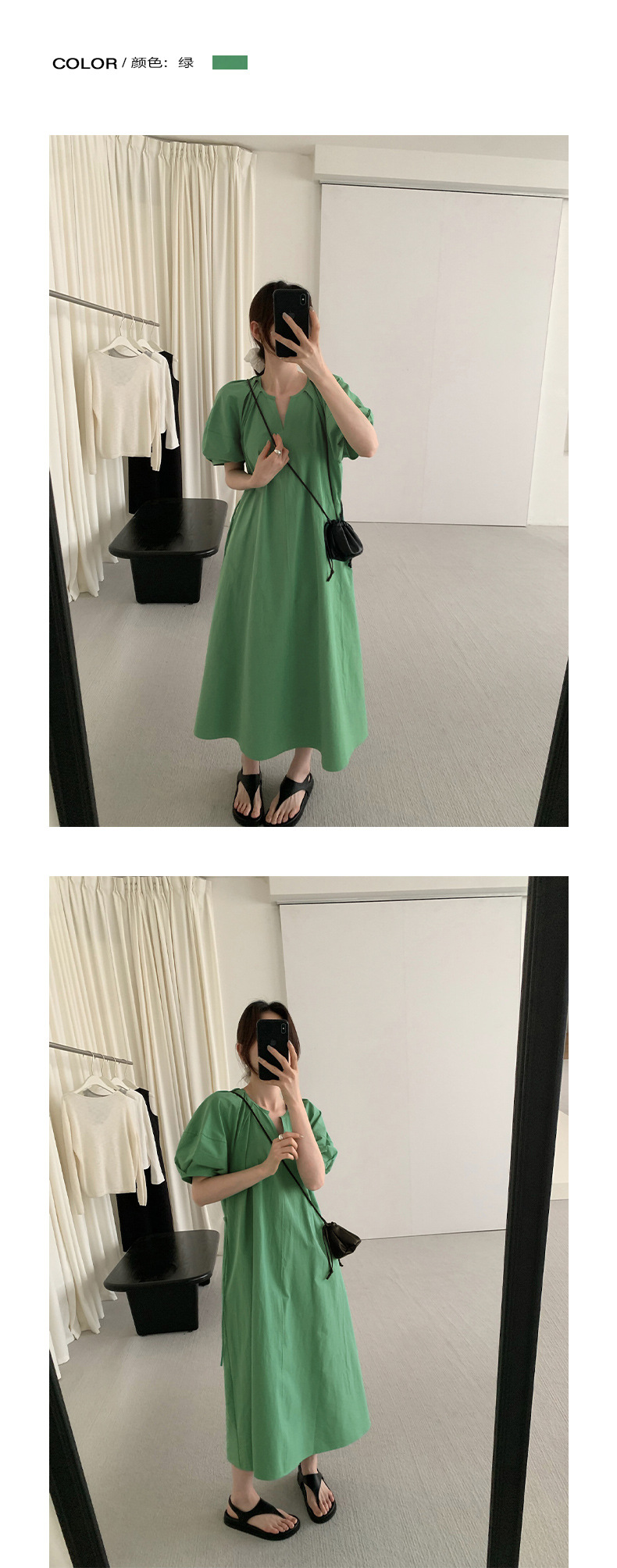 TG 프렌치 스타일 우아한 핀치 주름진 퍼프 슬리브 원피스 여성 2025 년 여름 새로운 소형 V 넥 레이스 업 롱 원피스 24850스토어 가기