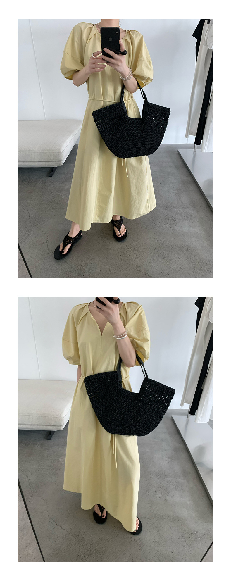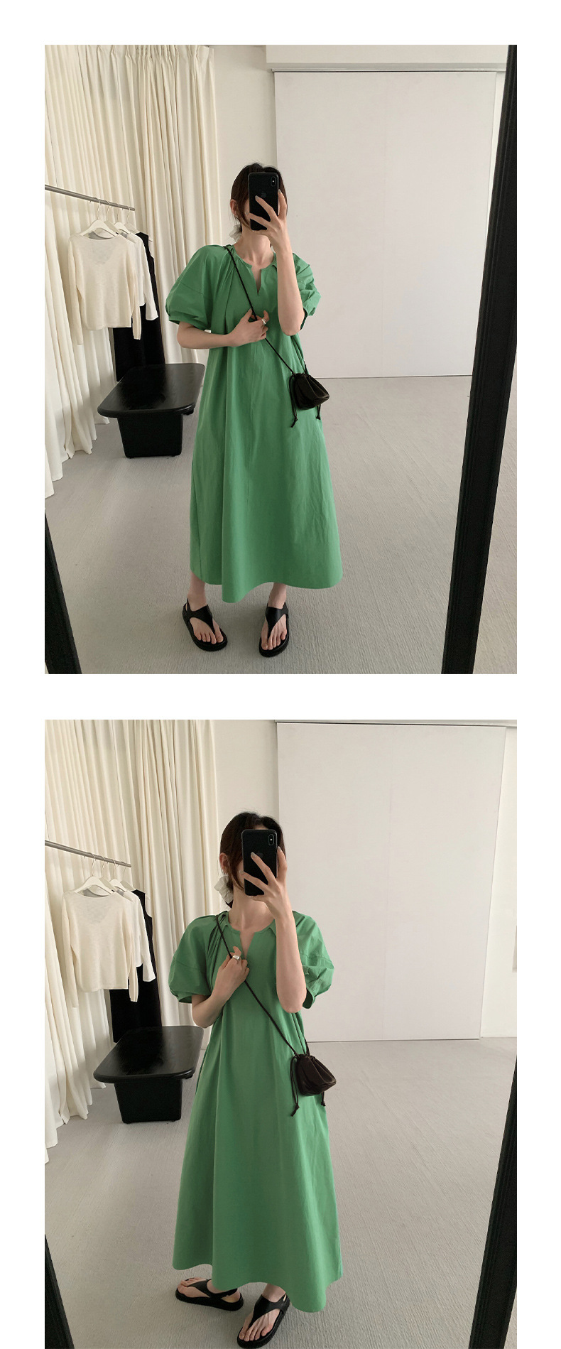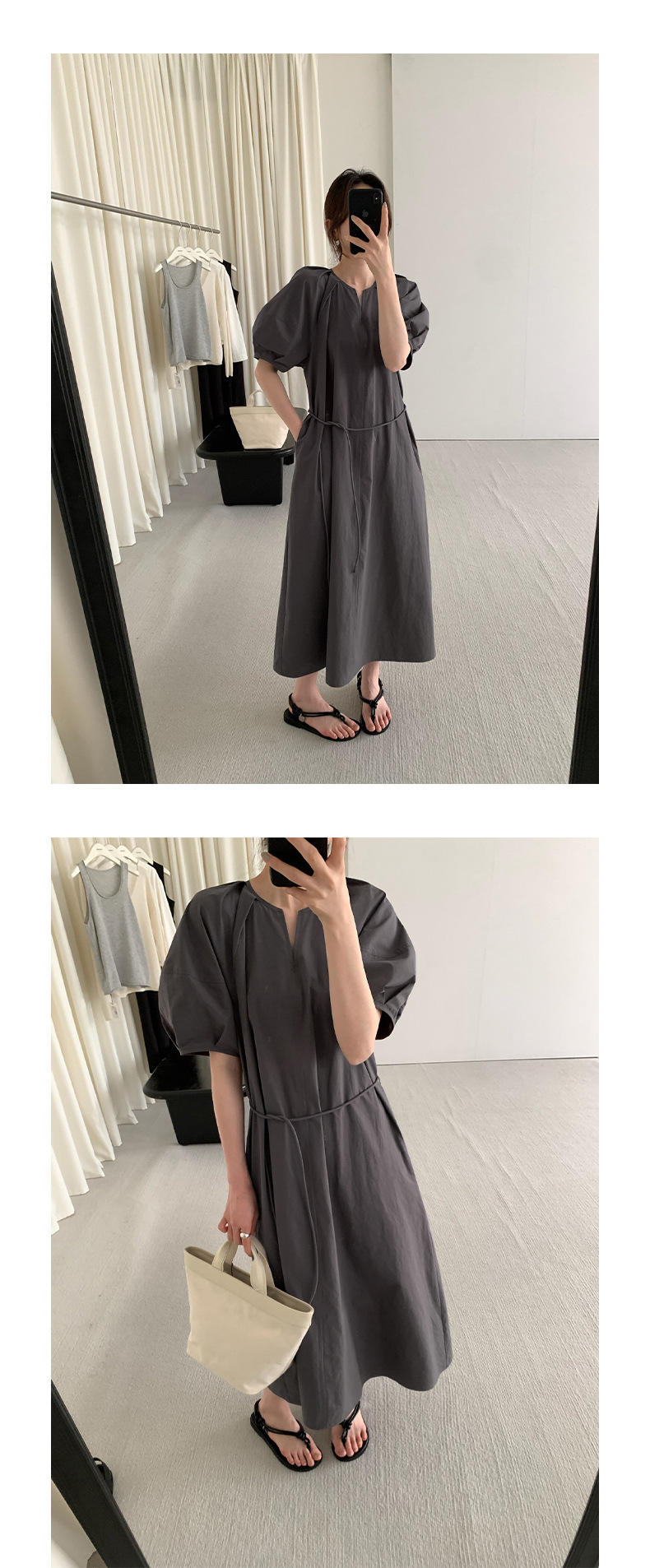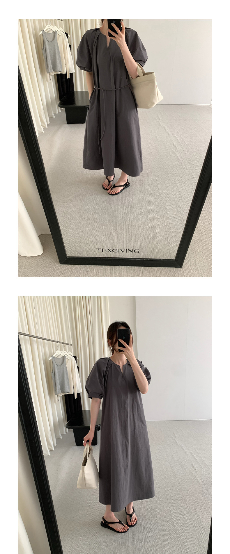 TG 프렌치 스타일 우아한 핀치 주름진 퍼프 슬리브 원피스 여성 2025 년 여름 새로운 소형 V 넥 레이스 업 롱 원피스 24850스토어 가기