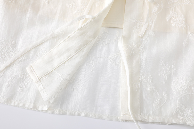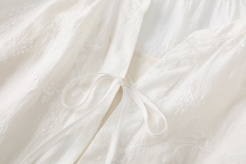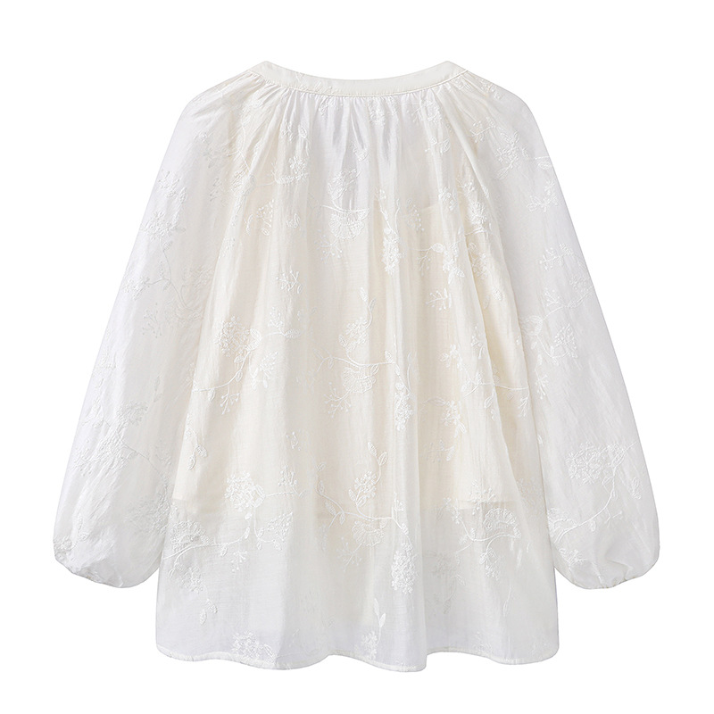 여름 2025 년 새로운 자수 Lyocell 텐셀 셔츠 탑 랜턴 슬리브 셔츠 슬링 여성용 E401D010GC10스토어 가기