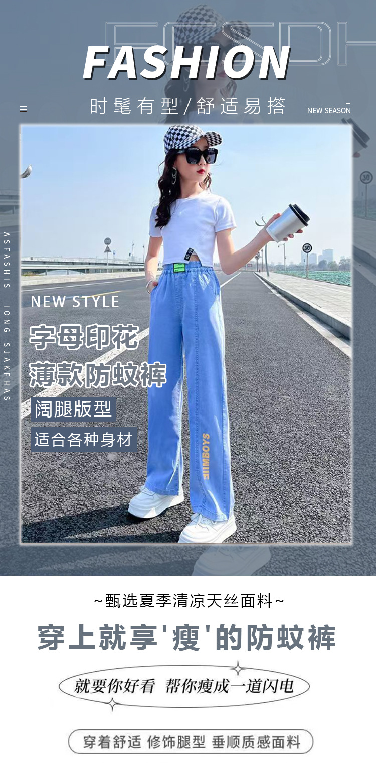 여아 바지 새로운 여름 스타일 스트리트 스타일 멋진 어린이 텐셀 바지 아동 의류 얇은 모기 방지 바지 도매스토어 가기