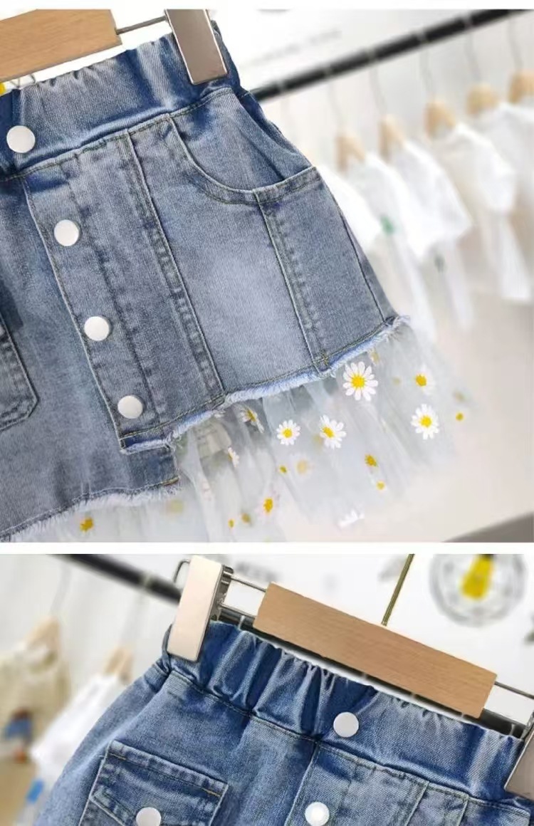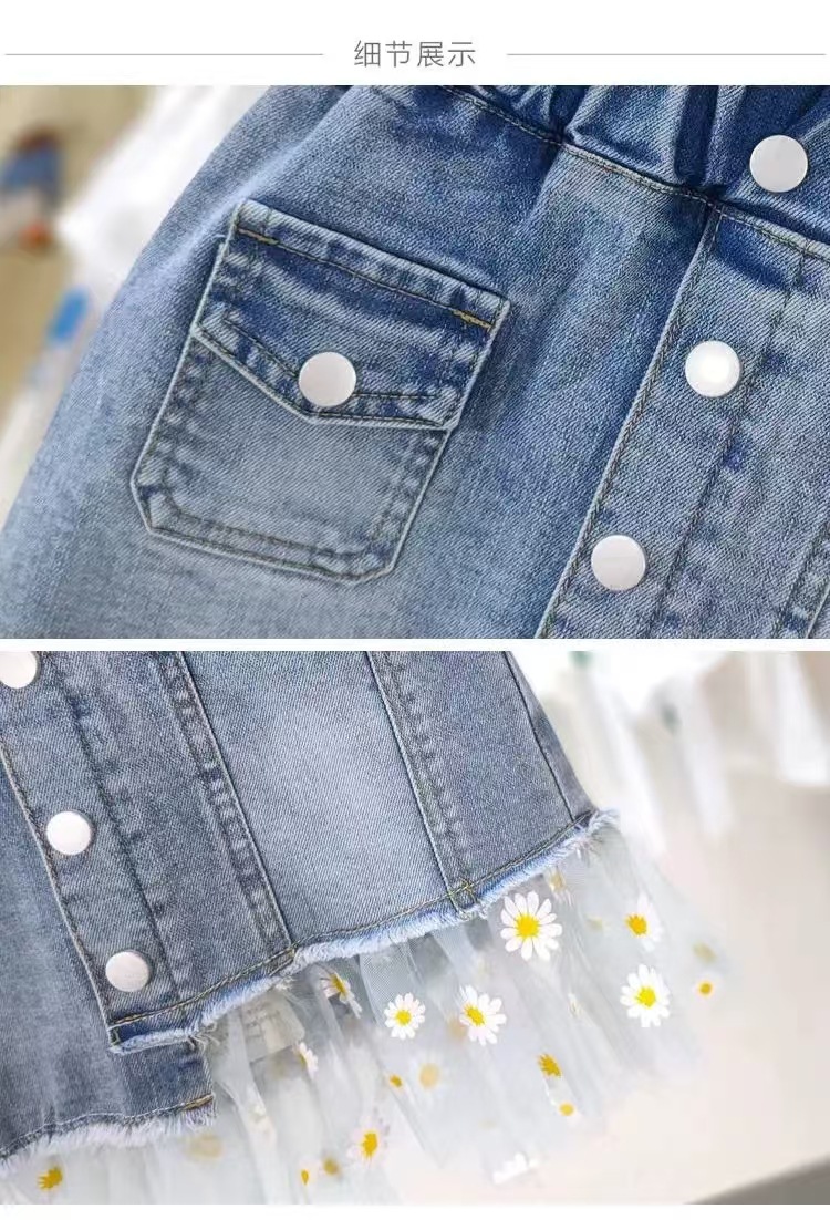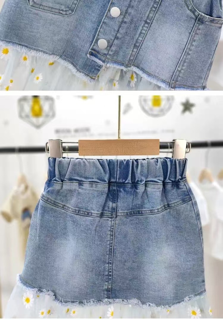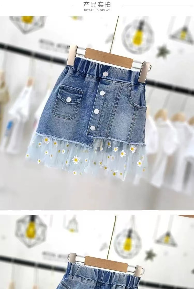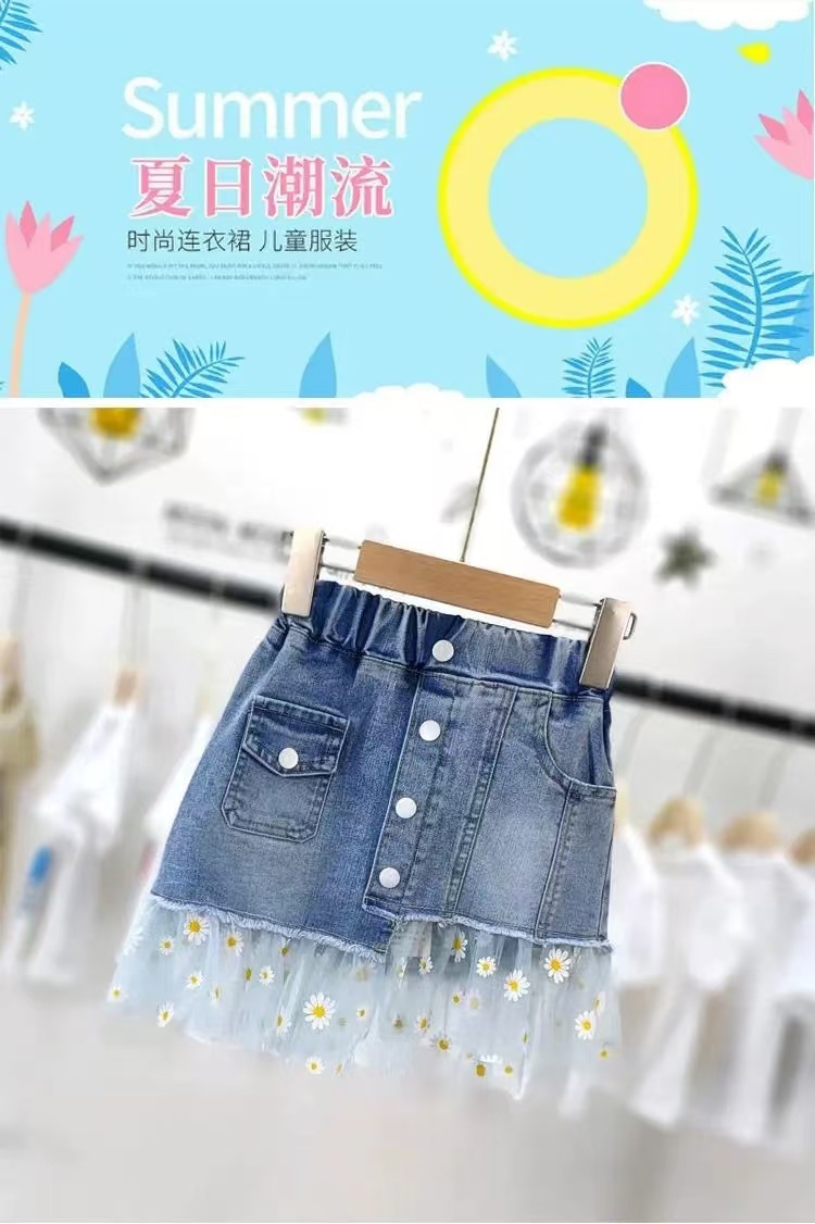 어린이 데님 스커트 새로운 여름 한국 스타일 소녀 베이비 데이지 메쉬 스커트 유행 소녀 데님 스커트스토어 가기