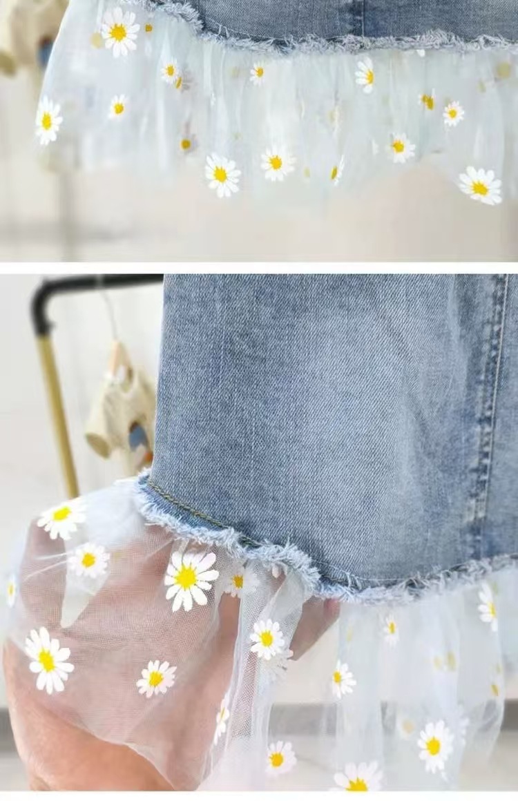 어린이 데님 스커트 새로운 여름 한국 스타일 소녀 베이비 데이지 메쉬 스커트 유행 소녀 데님 스커트