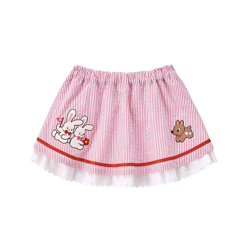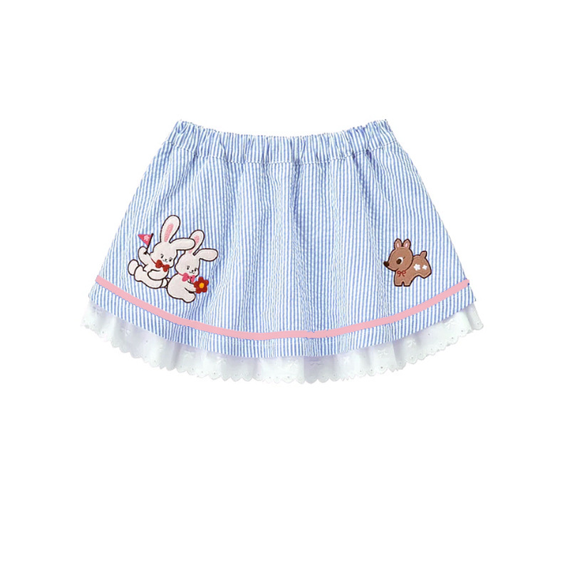 여름 신상 여아용 카툰 귀여운 토끼 자수 스트라이프 숏 스커트 플리츠 스커트스토어 가기