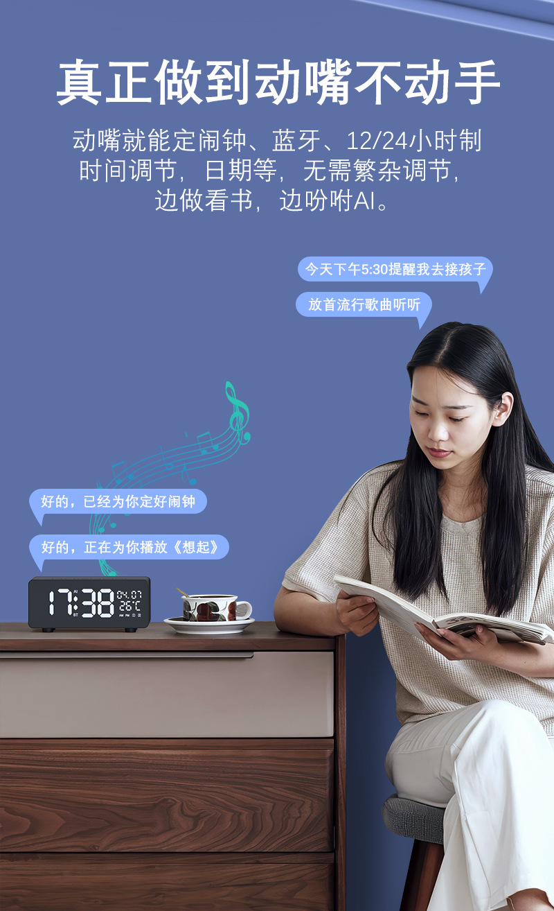 스마트 음성 AI 블루투스 무선 스피커 휴대용 백색소음 알람시계 소형 스피커 서브우퍼 AI 스마트