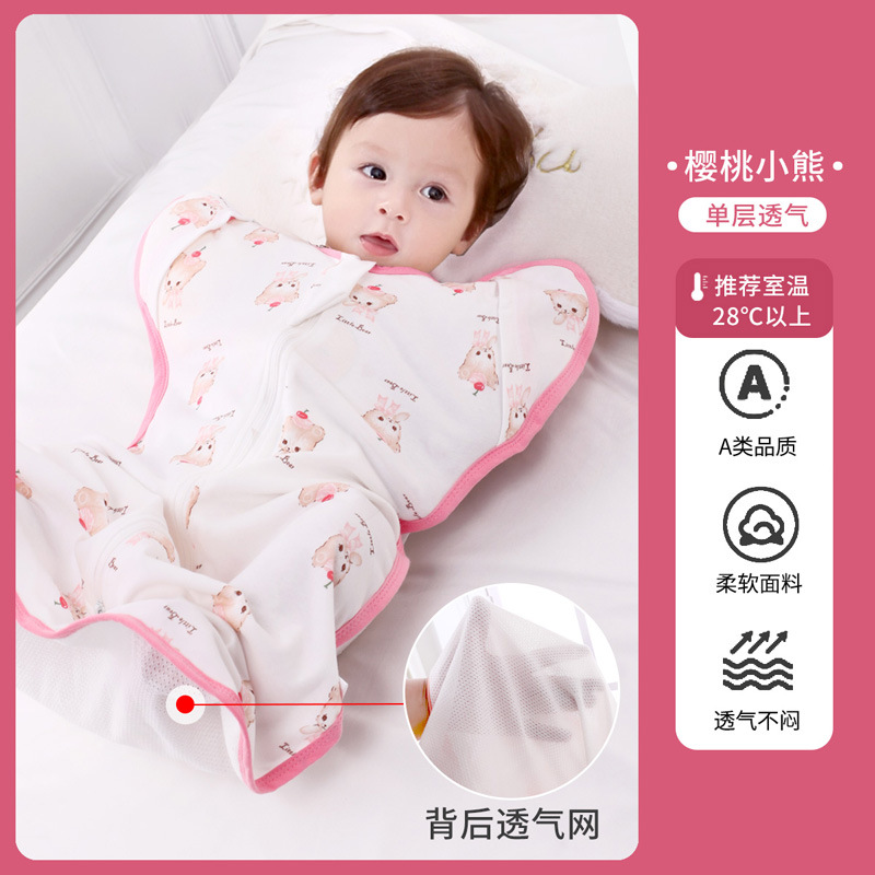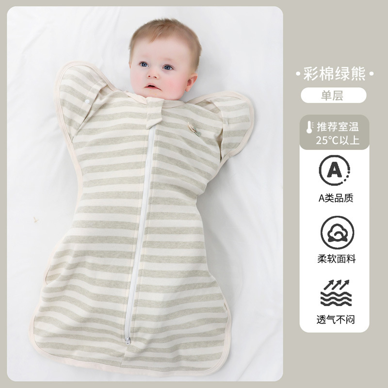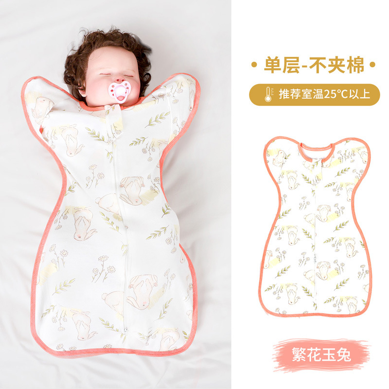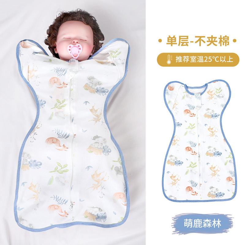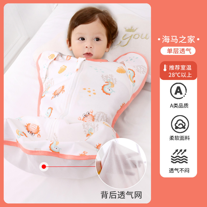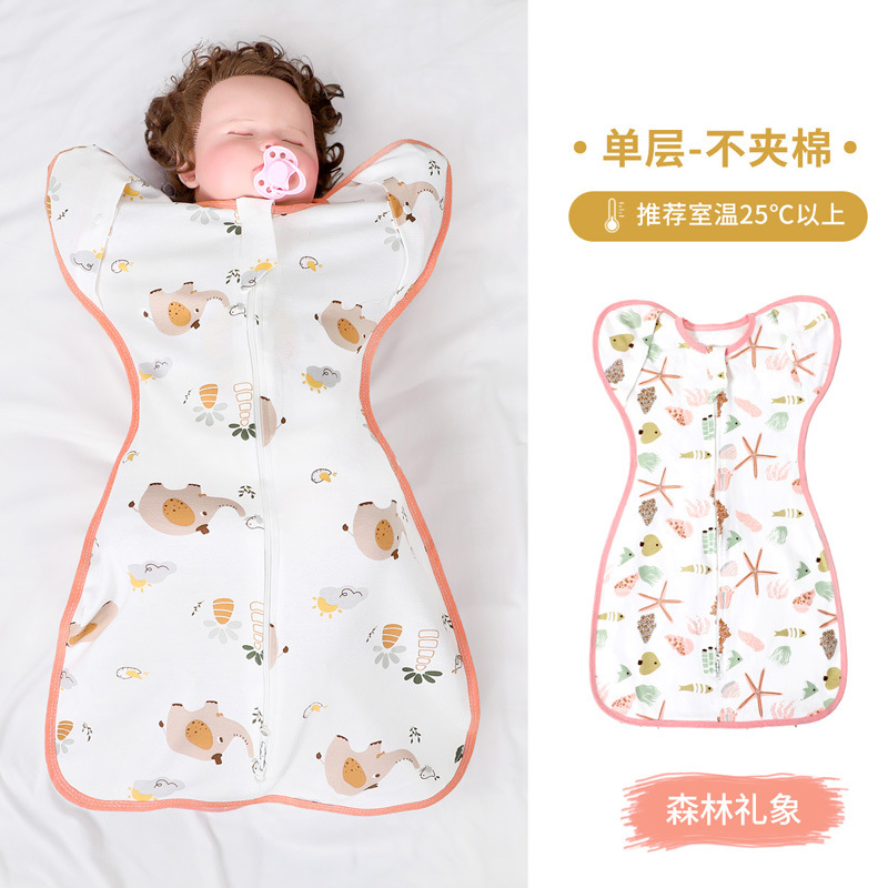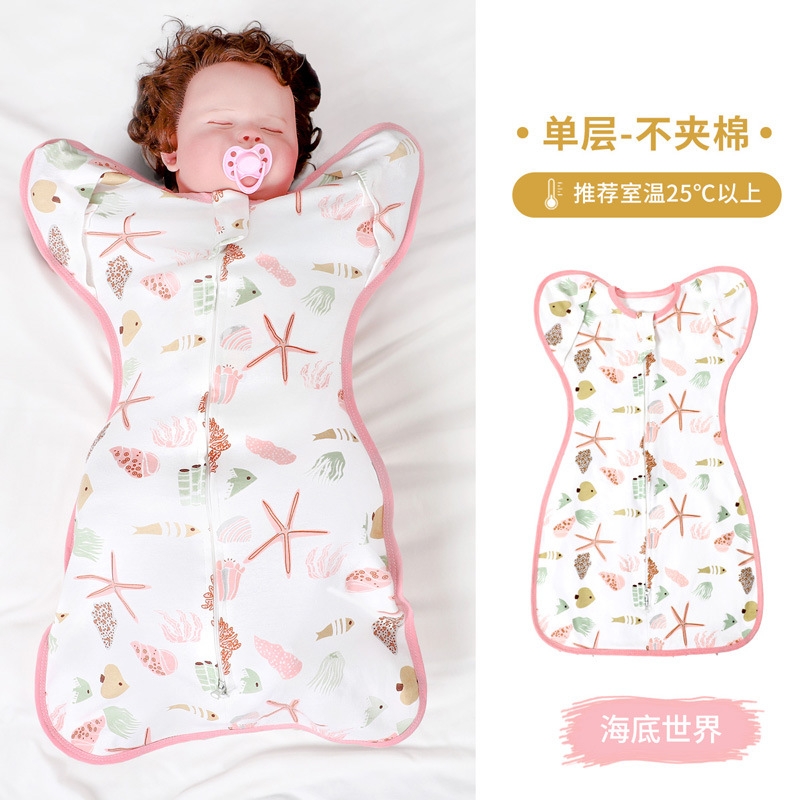 아기 항복 스타일 충격 방지 슬리핑 백 봄, 가을, 겨울 얇은 면 여름 통기성 순수 아기 포대기 안티 킥 이불 0-6-12 개월