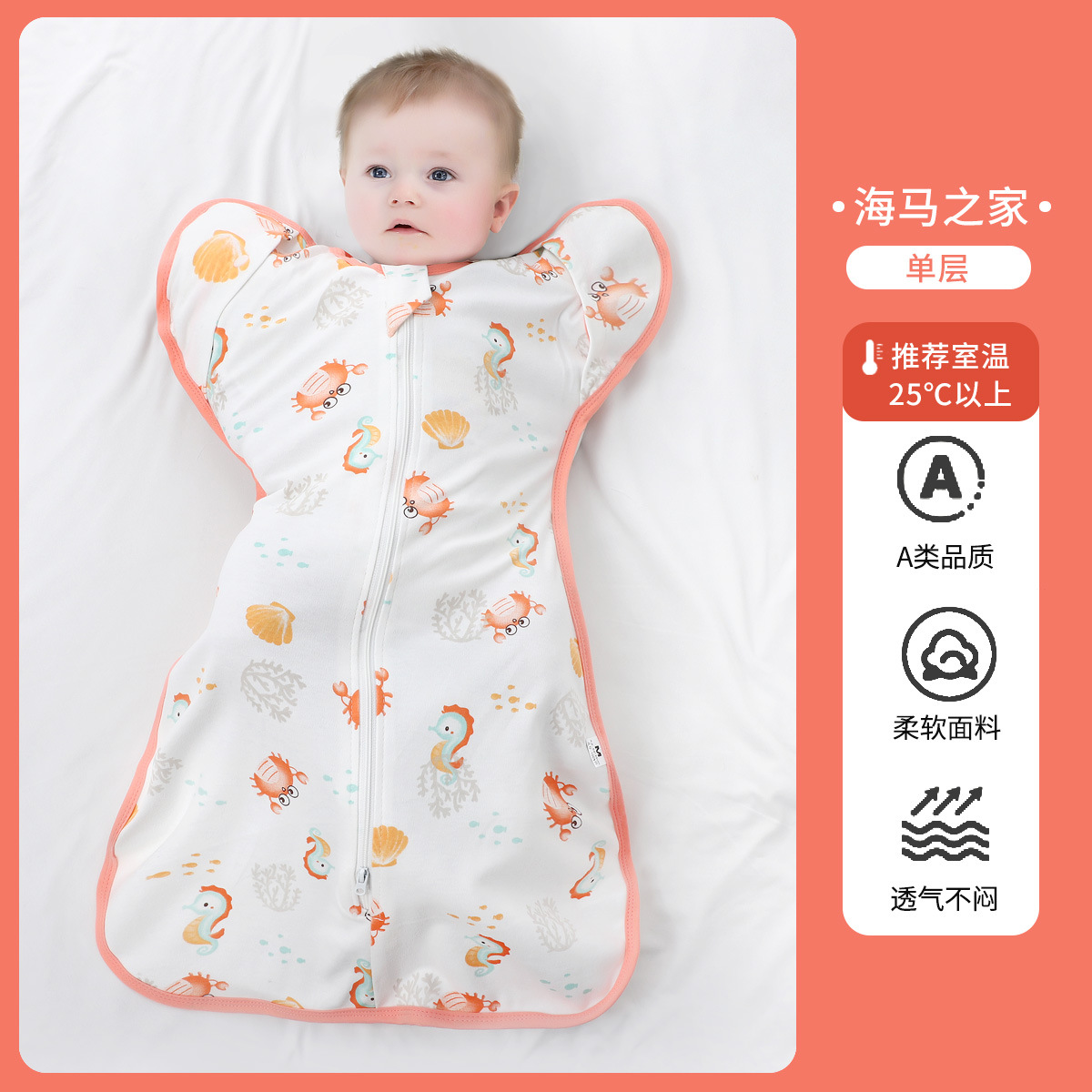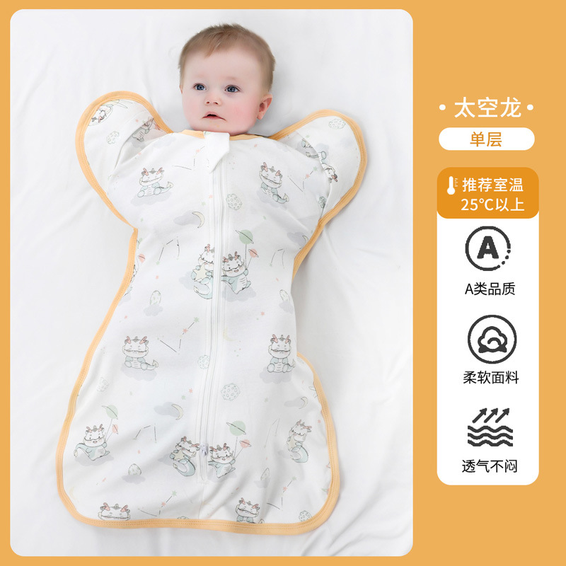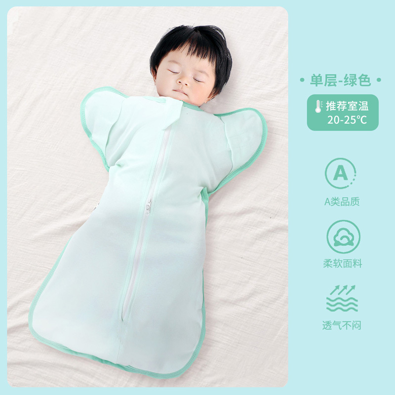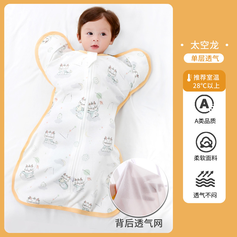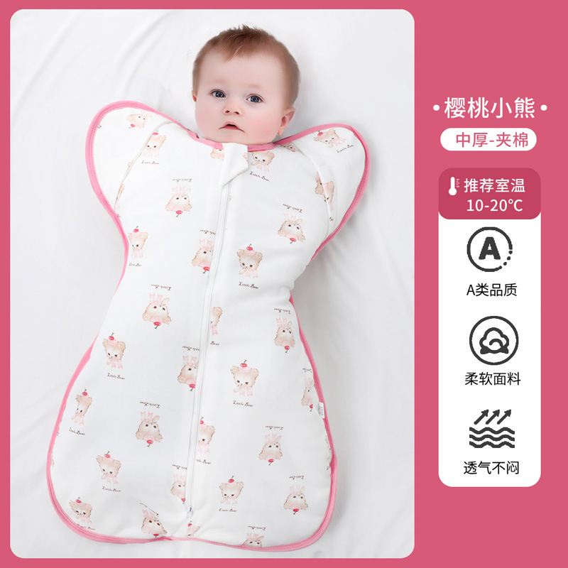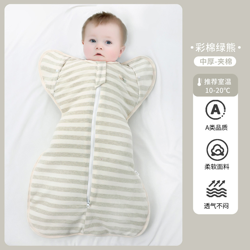 아기 항복 스타일 충격 방지 슬리핑 백 봄, 가을, 겨울 얇은 면 여름 통기성 순수 아기 포대기 안티 킥 이불 0-6-12 개월