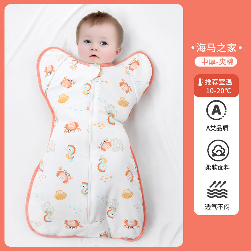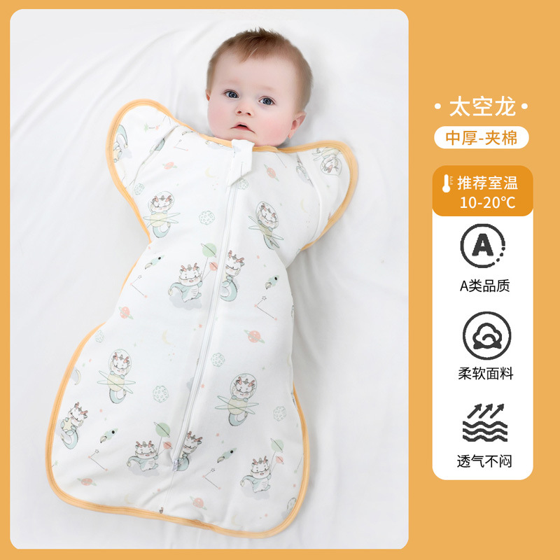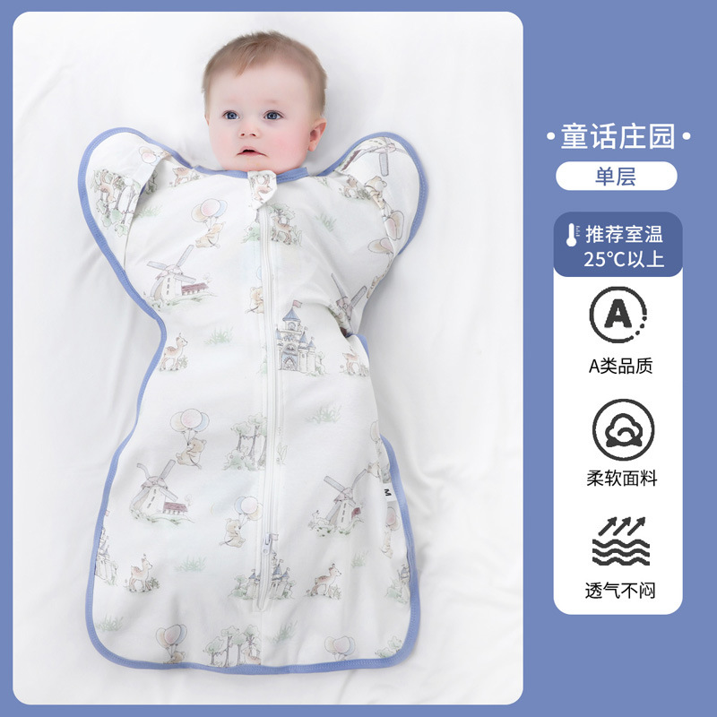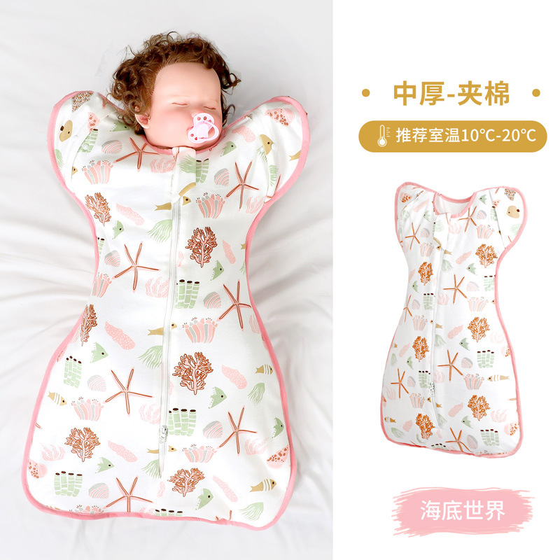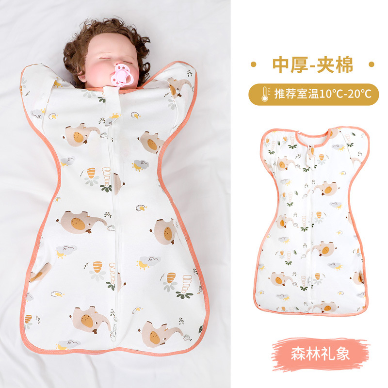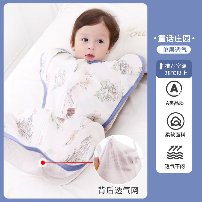 아기 항복 스타일 충격 방지 슬리핑 백 봄, 가을, 겨울 얇은 면 여름 통기성 순수 아기 포대기 안티 킥 이불 0-6-12 개월