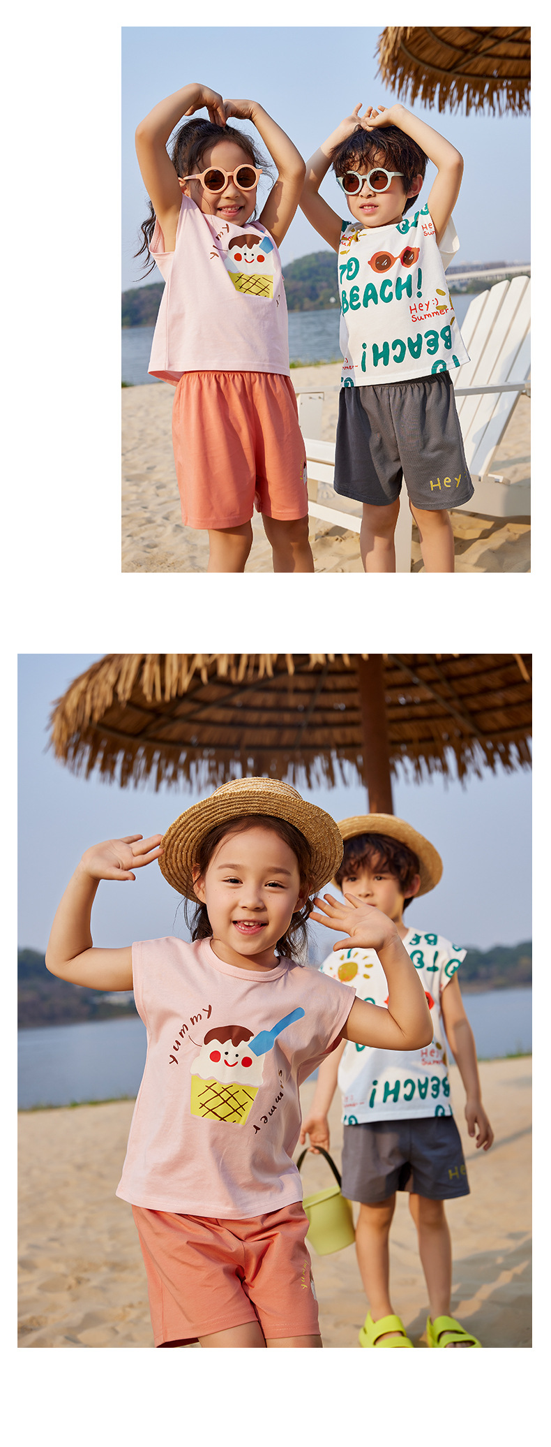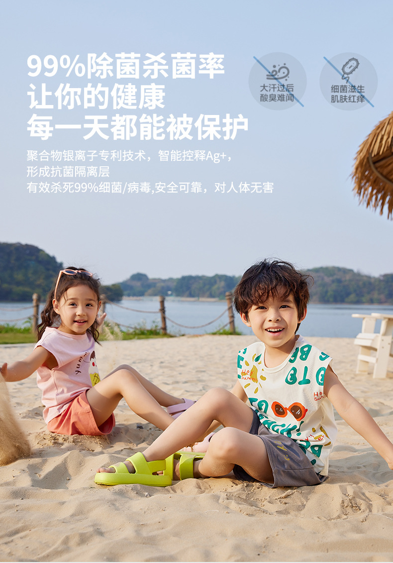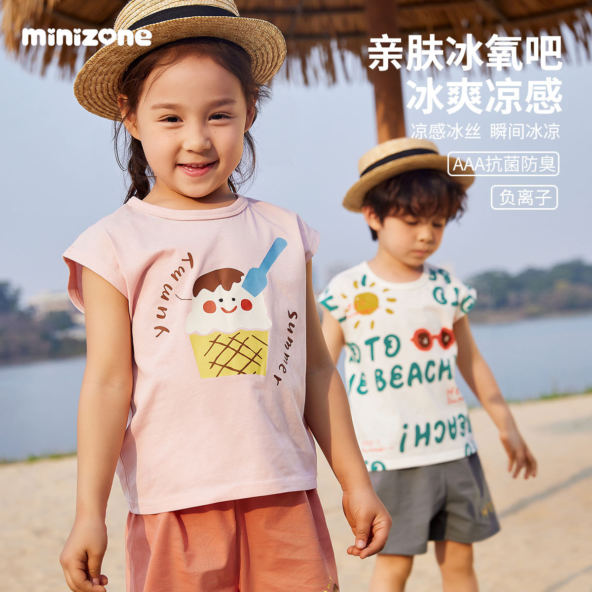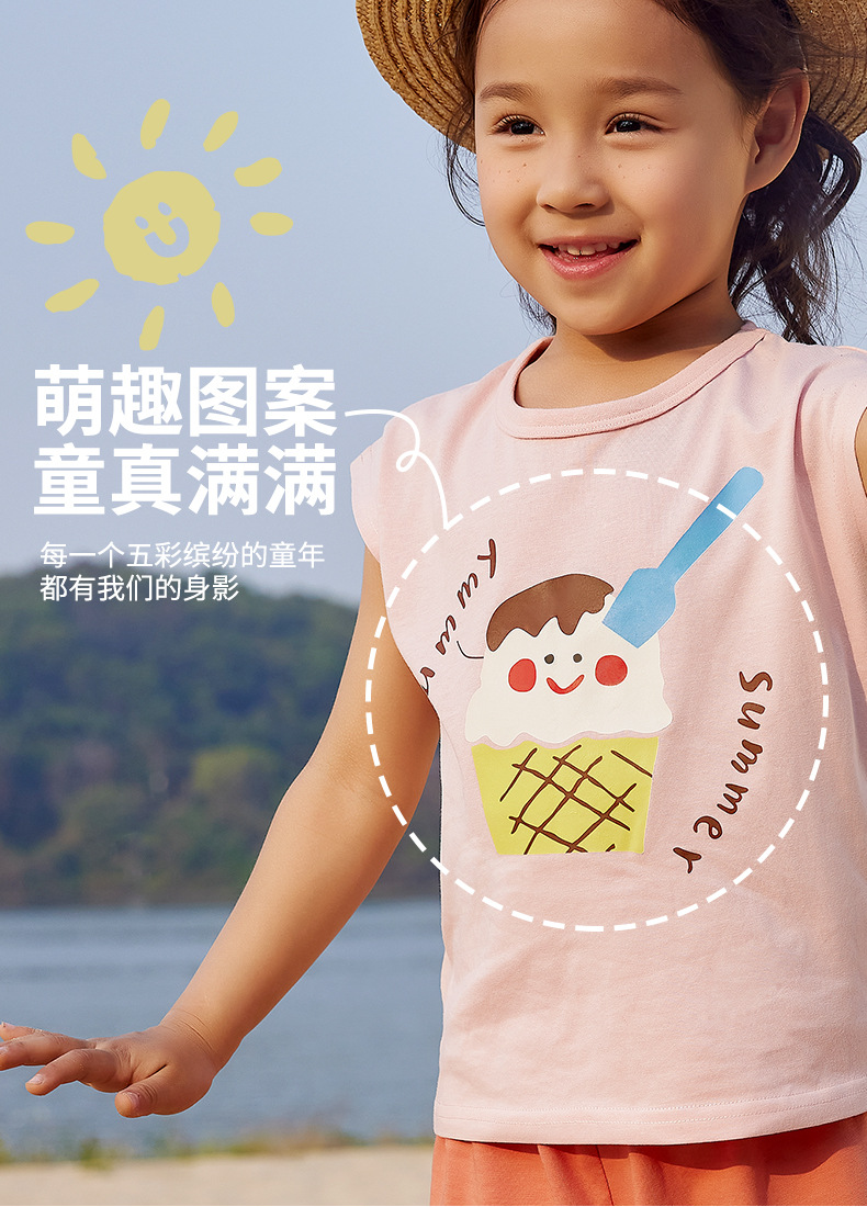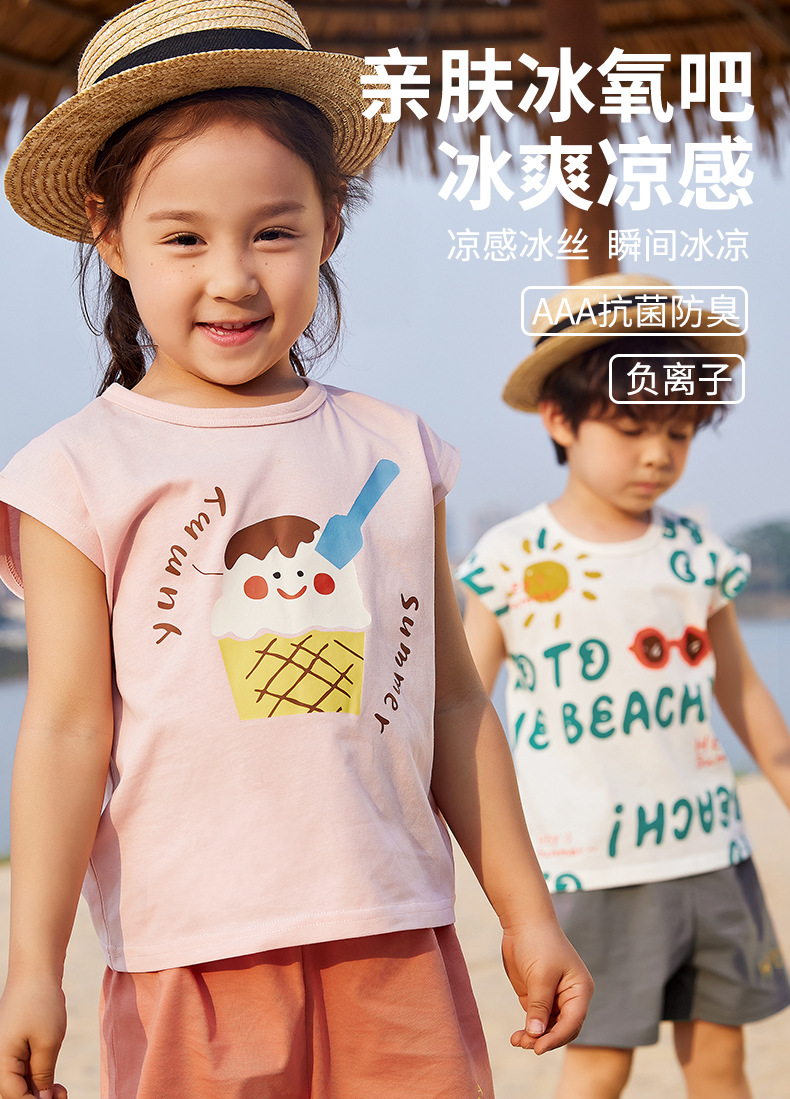 미니 존 어린이 세트 여름 아이스 산소 바 민소매 반바지 얇은 티셔츠 소년 소녀 둥근 목 세트 3A 항균