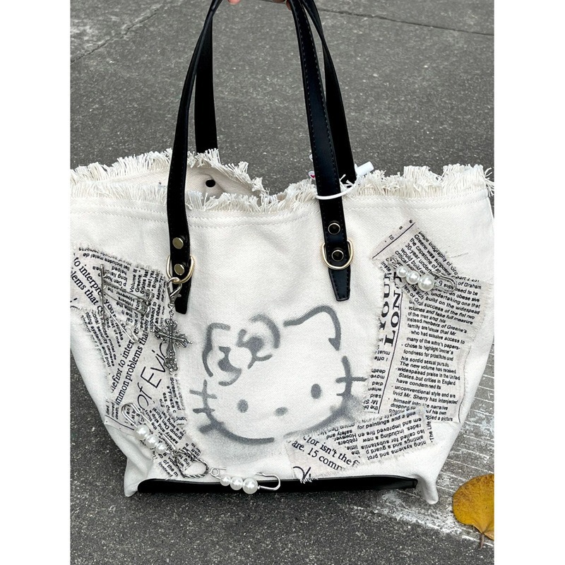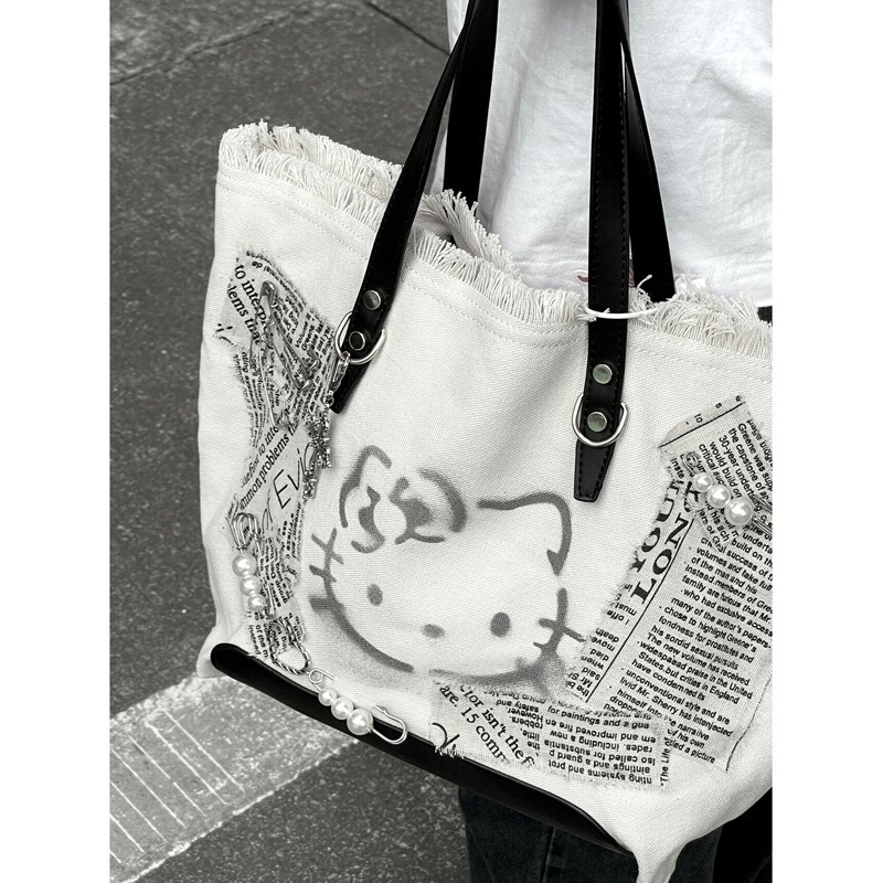 원래 새로운 키티 고양이 캔버스 가방 스파이스 소녀 수 놓은 대용량 어깨 토트 백 캐주얼 귀여운 크로스 바디 백