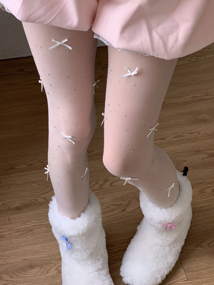 신제품 로리타 보우 반짝이는 다이아몬드 스킨 뷰티 스타킹 핫 다이아몬드 바닥 팬티 스타킹 발레 스타일 퓨어 러스트 화이트 스타킹스토어 가기