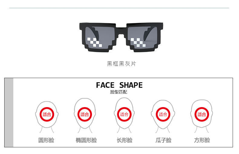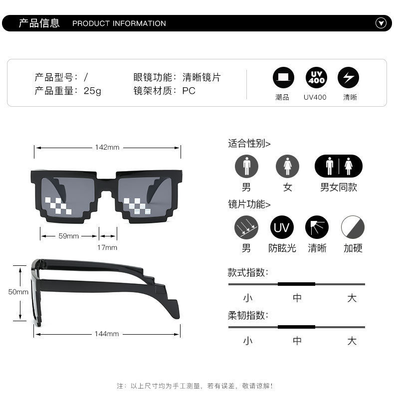 TikTok 폭발 재미있는 모자이크 선글라스 패션 스트리트 비트 코드 선글라스 파티 보조 픽셀 안경 조수스토어 가기