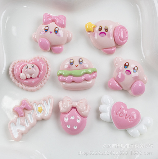 만화 커비 귀여운 수지 액세서리 도매 diy 휴대 전화 케이스 액세서리 수제 머리핀 워터 컵 재료 패키지스토어 가기
