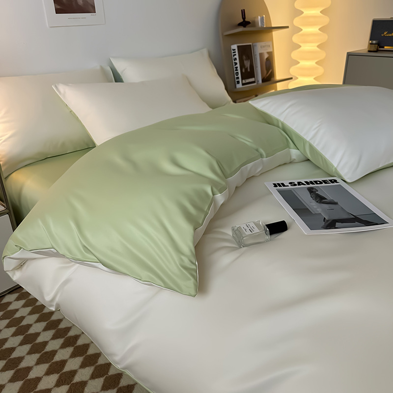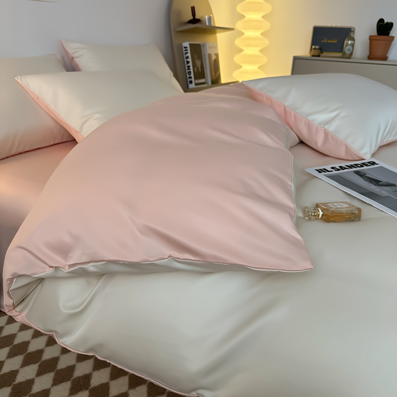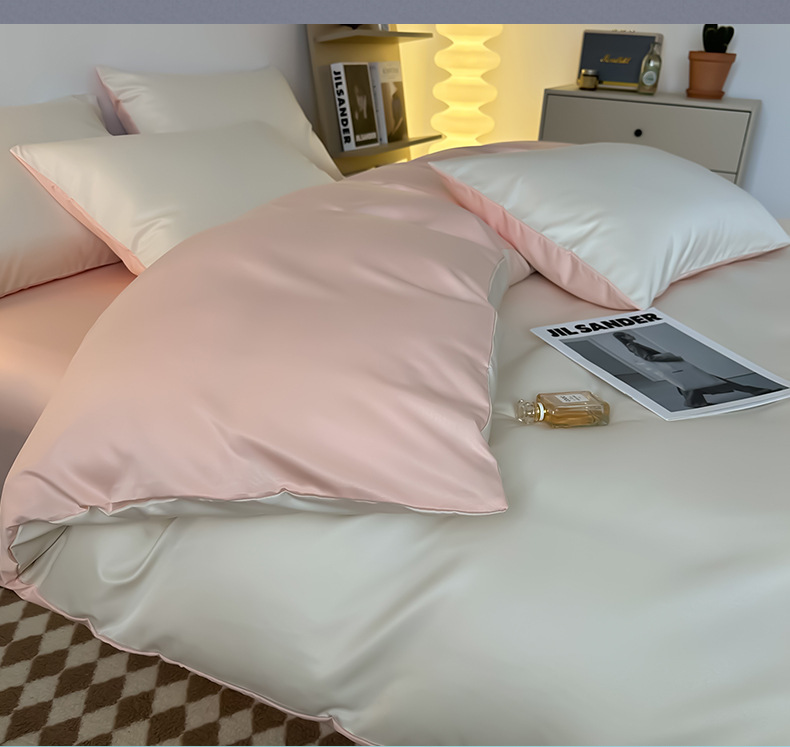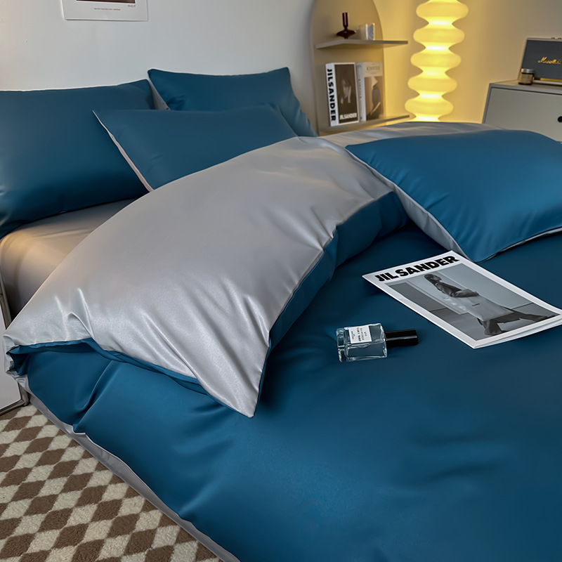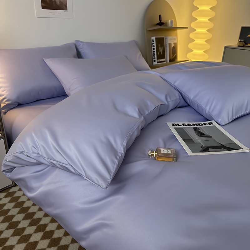 여름 얼음 실크 4 피스 세트 씻은 면화 여름 씻은 실크 침대 시트 여름 시원한 이불 커버 침구