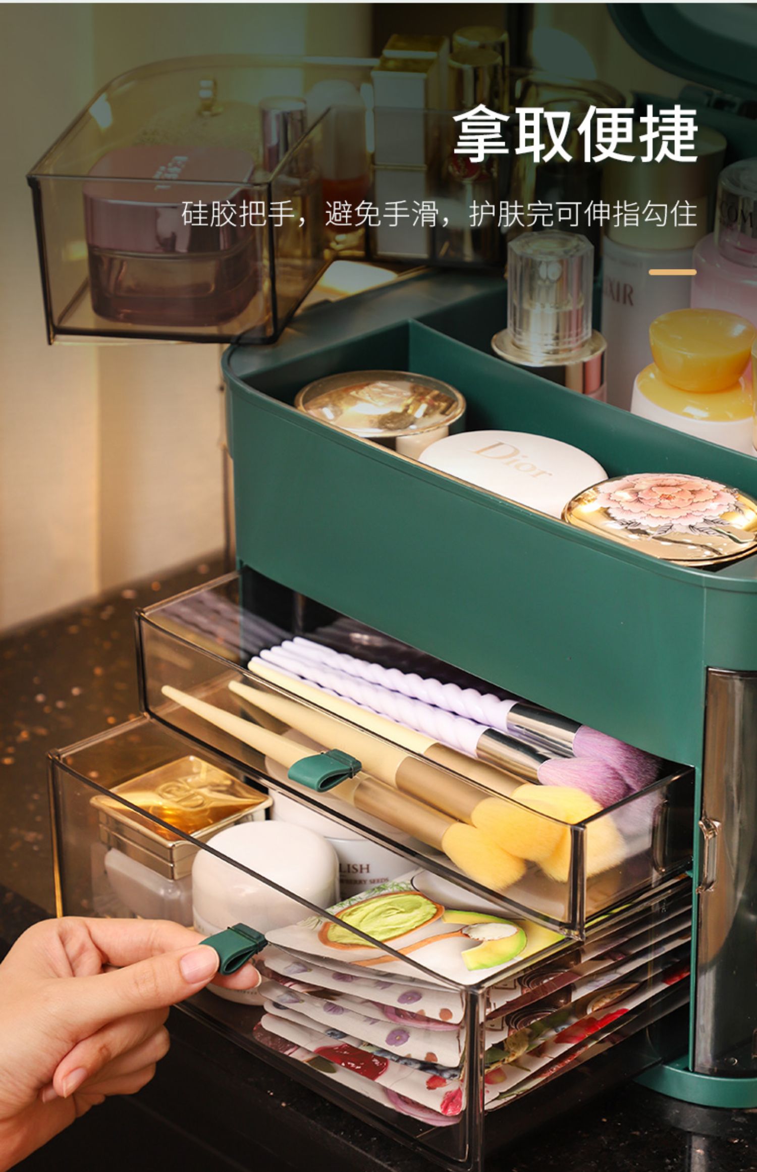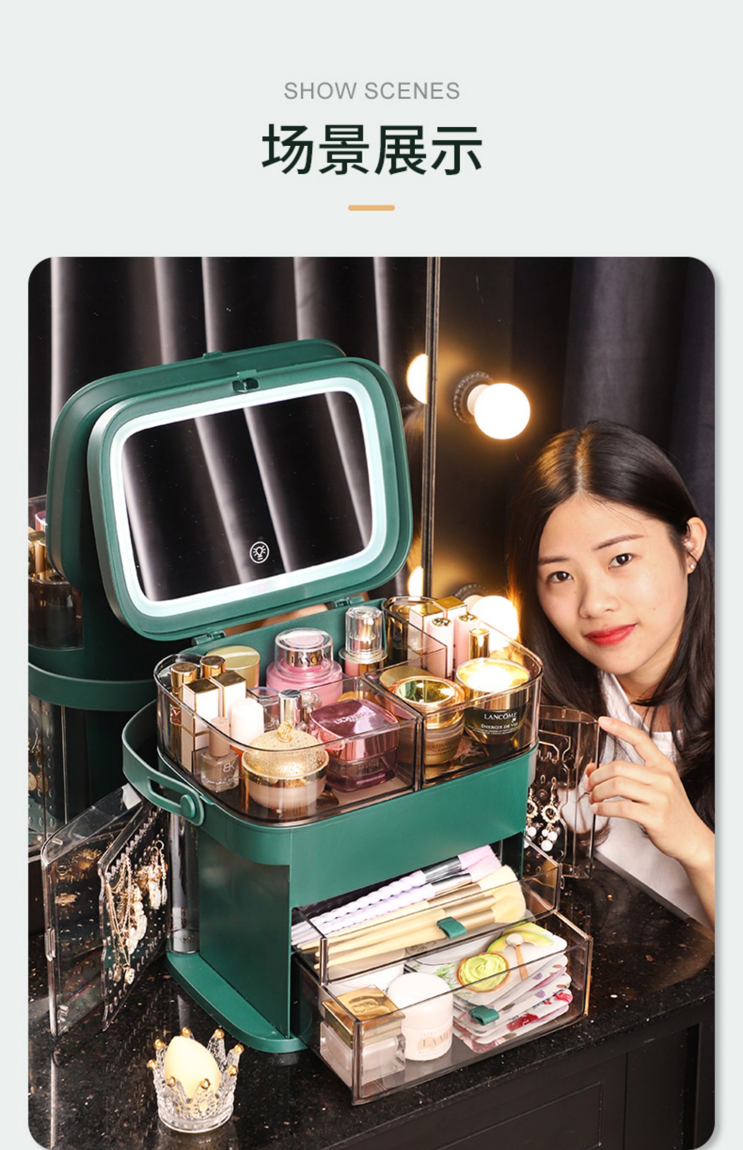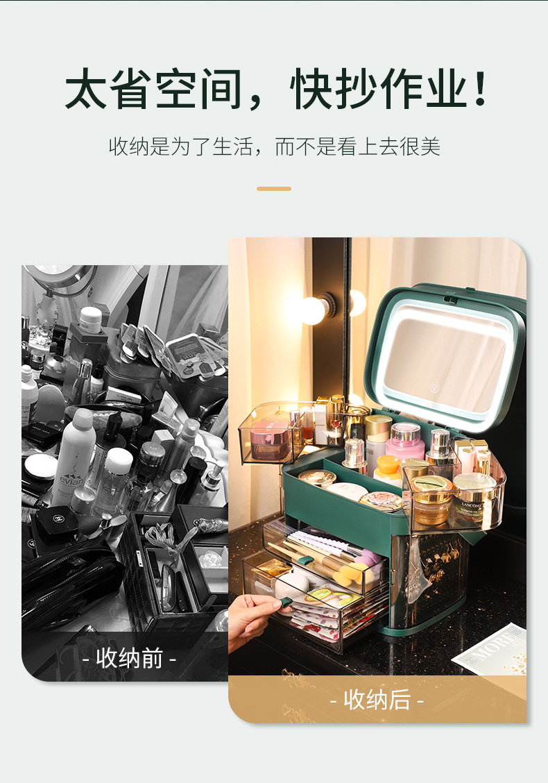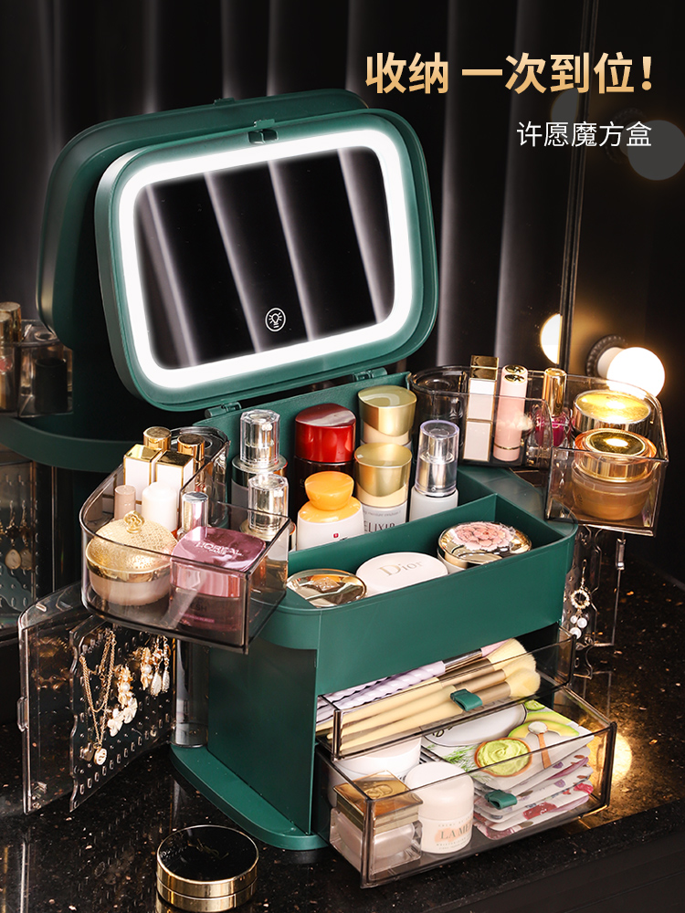 화장품 보관 상자 2021 새로운 슈퍼 인기 대용량 휴대용 스킨 케어 제품 상자 거울 드레싱 포구스토어 가기