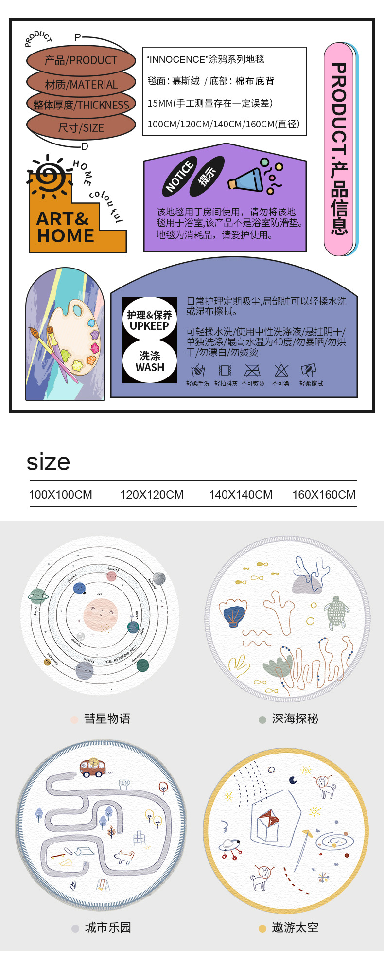 카펫 만화 라운드 거실 북유럽 침실 침실 담요 방 어린이 컴퓨터 회전 의자 귀여운 가정용 매트
