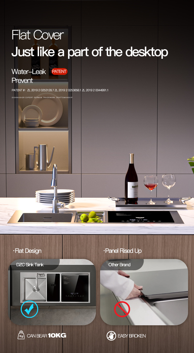 Deshi 싱크대 식기 세척기 주방 대형 단일 슬롯 가정용 완전 자동 건조 및 소독 초음파 과일 및 야채 기계