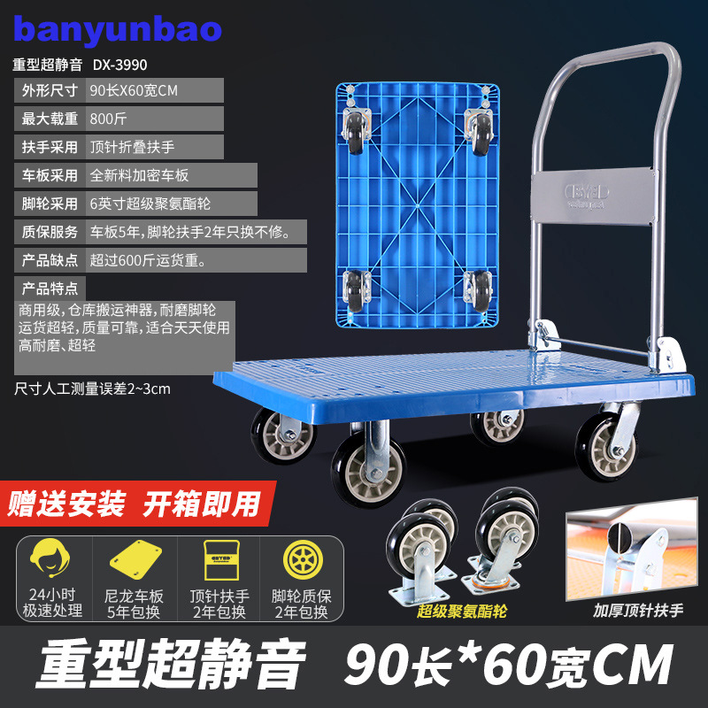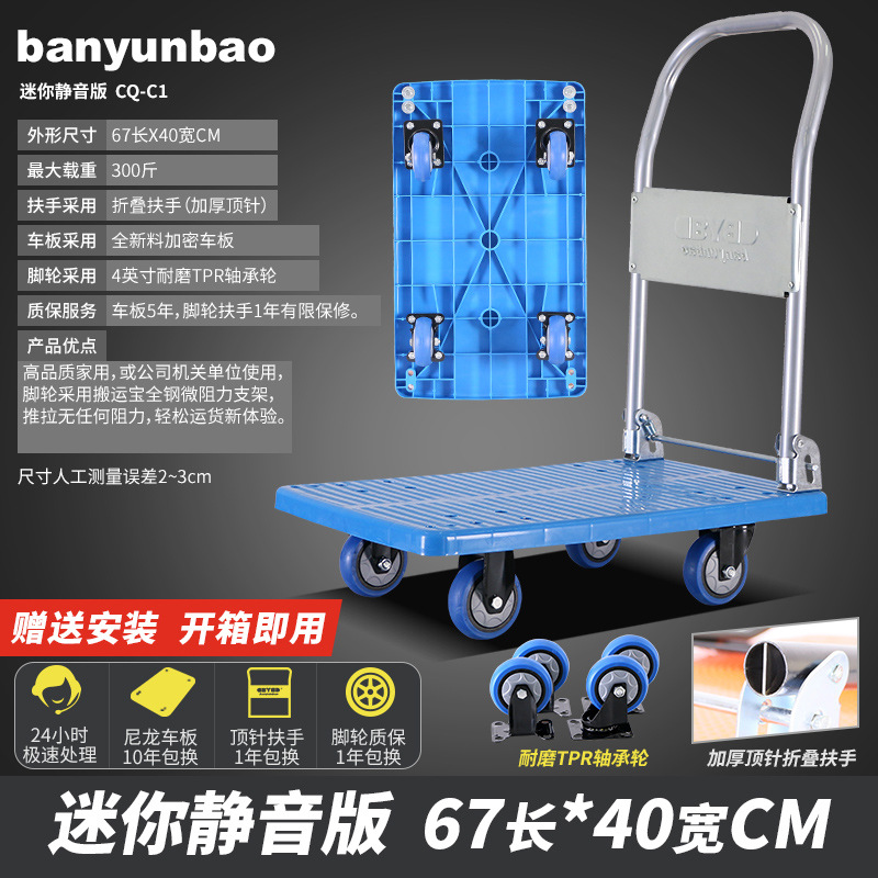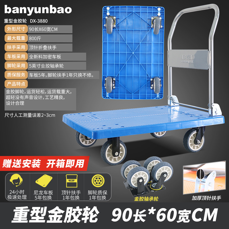 휴대용 저장 랙 트롤리화물 플랫 베드 트럭 작은 트레일러 휴대용 접이식 가정용 경량 트롤리
