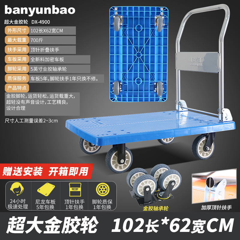 휴대용 저장 랙 트롤리화물 플랫 베드 트럭 작은 트레일러 휴대용 접이식 가정용 경량 트롤리스토어 가기