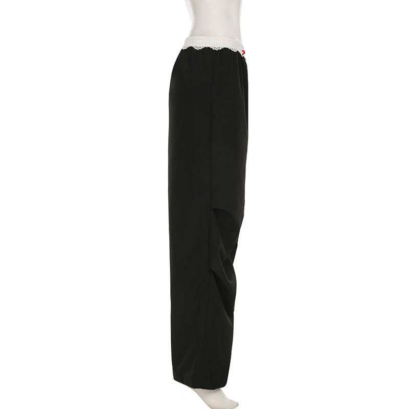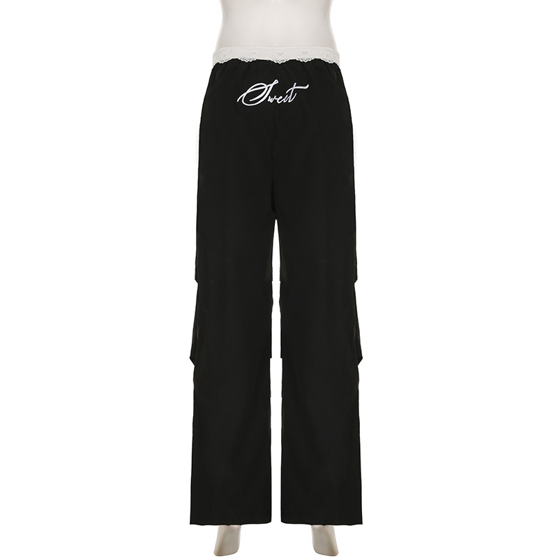 사랑 옷감은 미국의 거리 낮은 허리 색상 일치 레이스 허리 머리 느슨한 캐주얼 바지 디자인 스트레이트 작업복을 잊어 버립니다.스토어 가기
