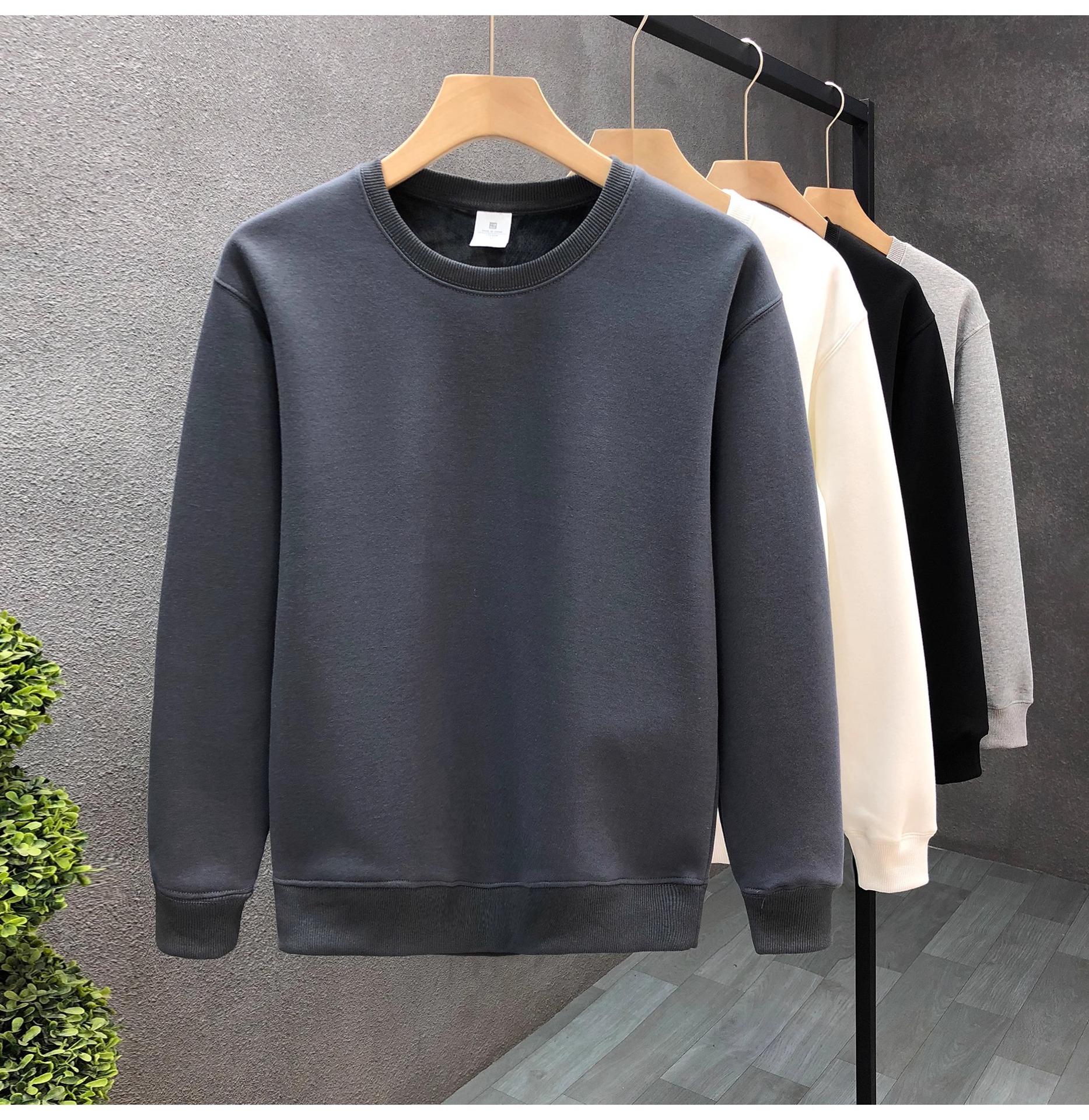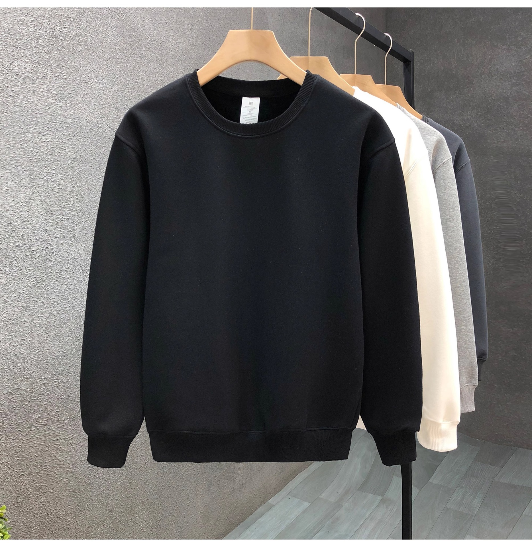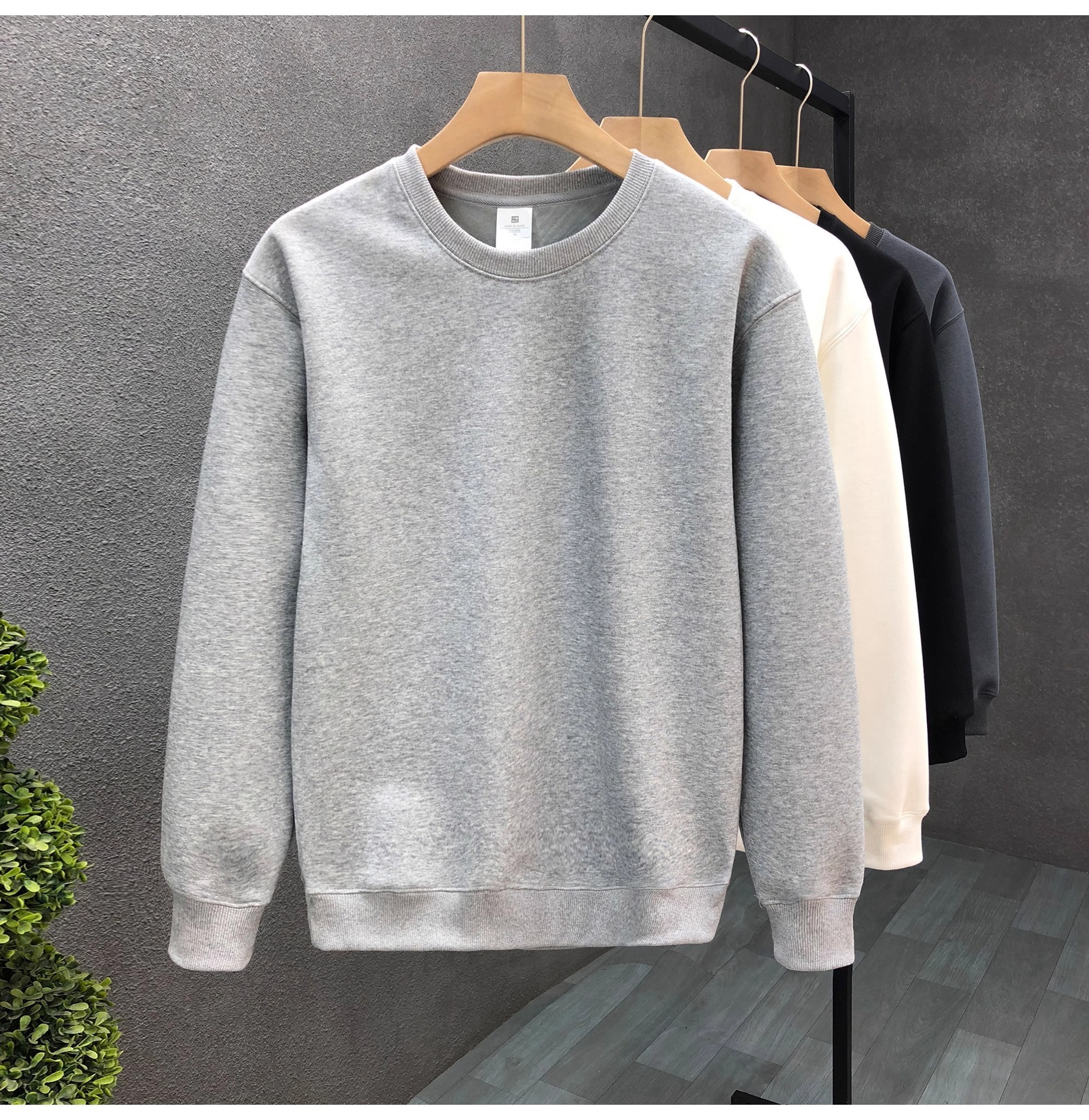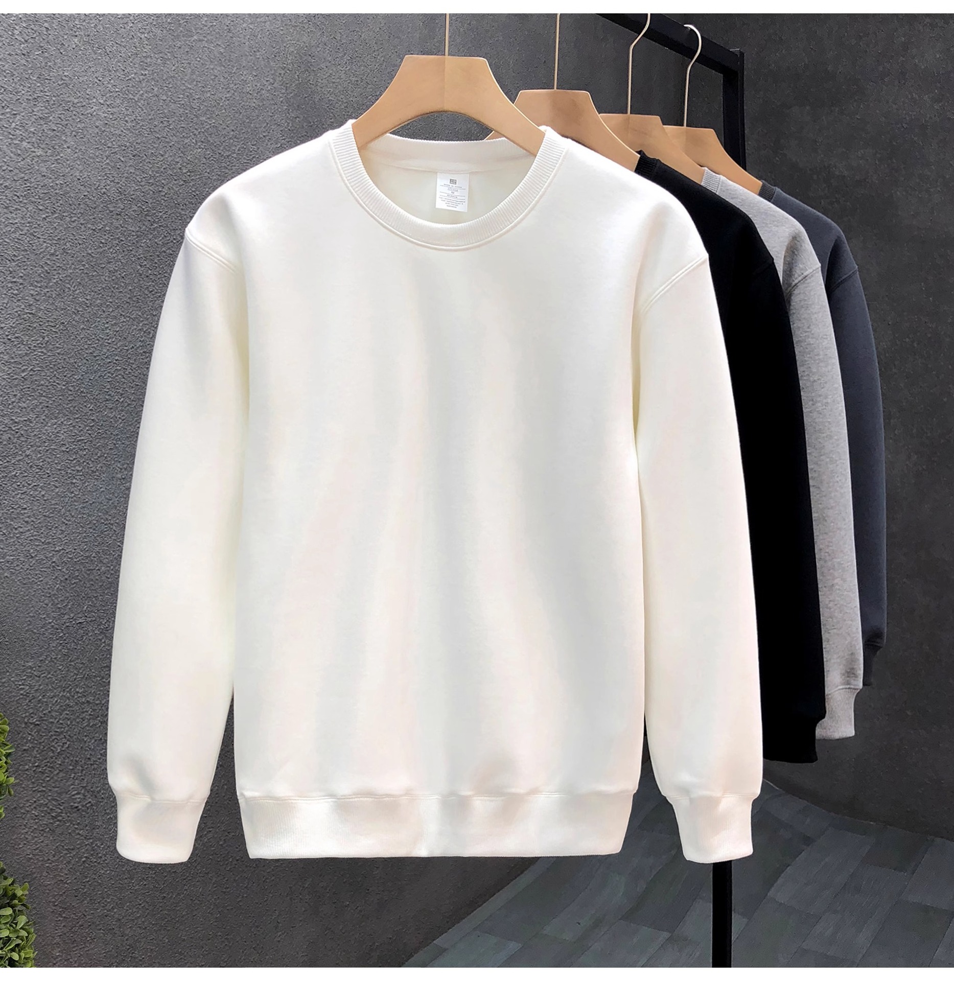 남성 봄, 가을 신작 캐주얼 티셔츠 라운드 넥 솔리드 컬러 스웨트 셔츠 루즈하고 다재다능한 오른쪽 어깨 긴팔 바닥 탑스토어 가기