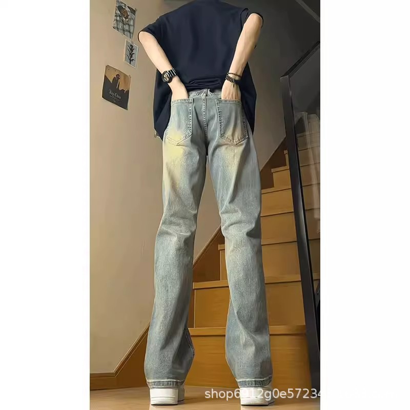 레트로 블루 탄성 청바지 남자 2025 새로운 봄과 가을 미국 스타일 하이 스트리트 바지 스트레이트 바지스토어 가기