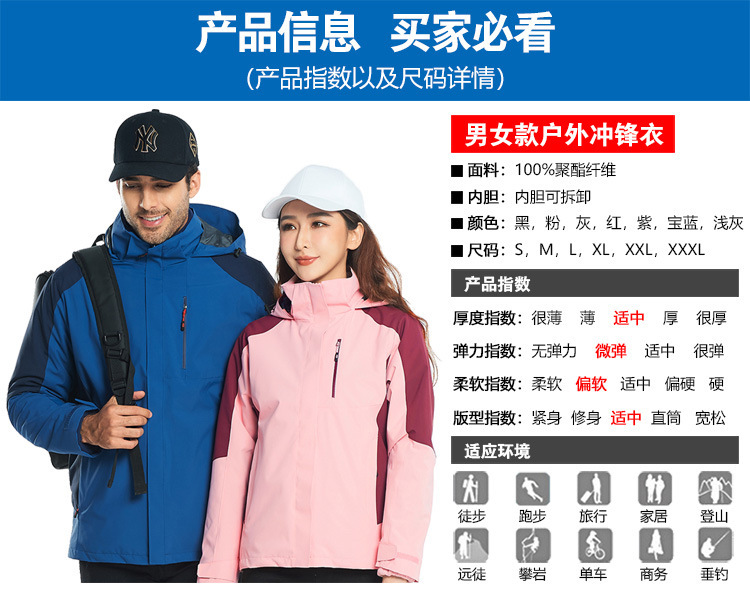 남녀 3 대 1 폭행 의류 남성 투피스 따뜻한 방수 통기성 야외 작업복 프린트 로고스토어 가기