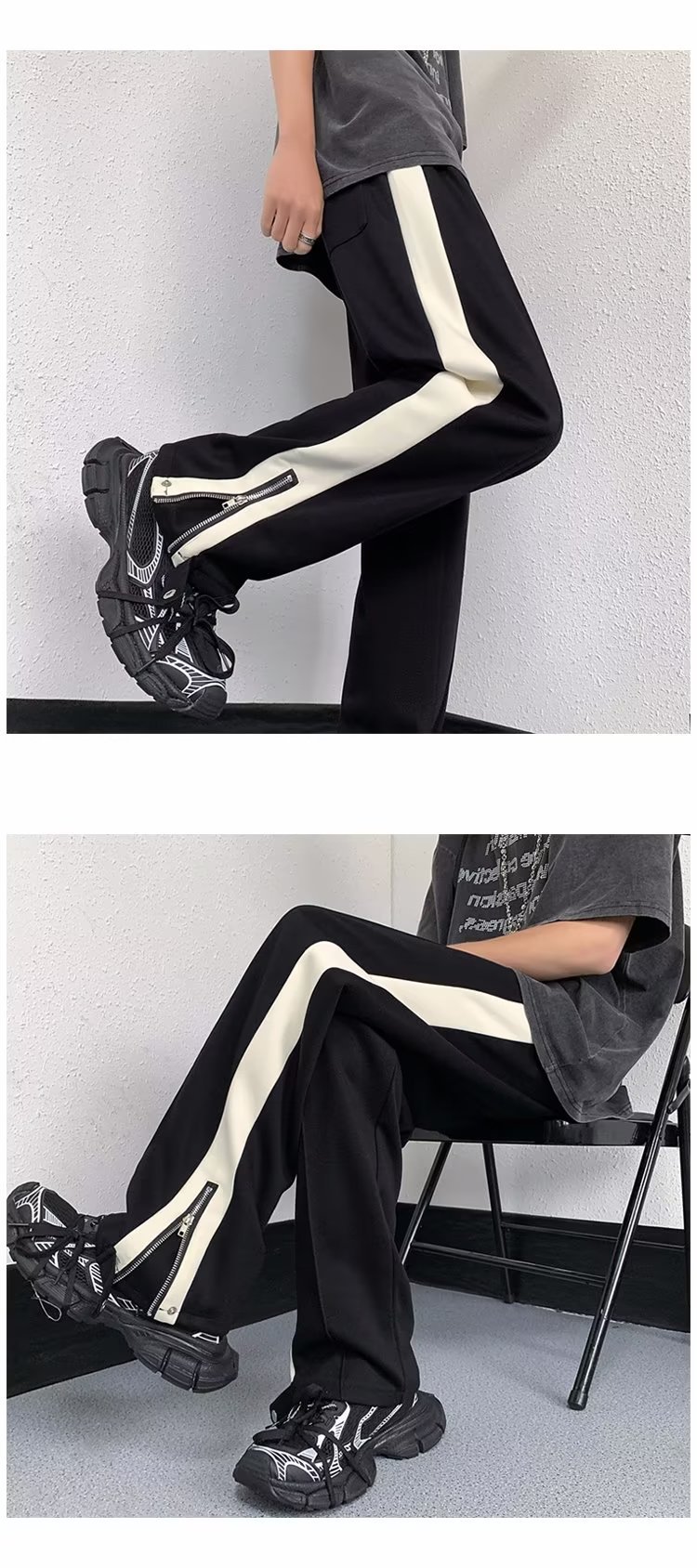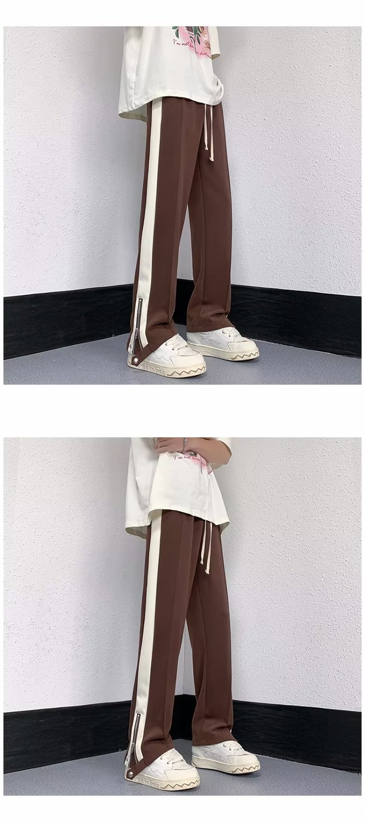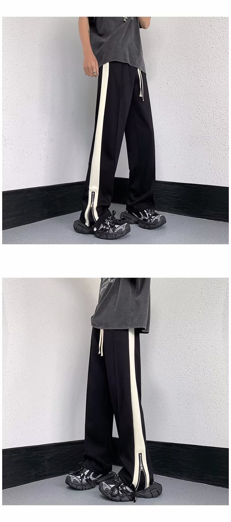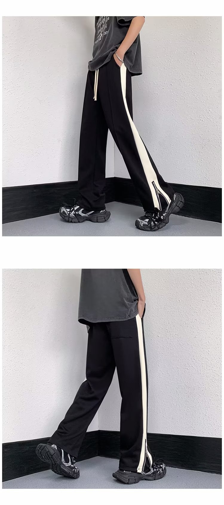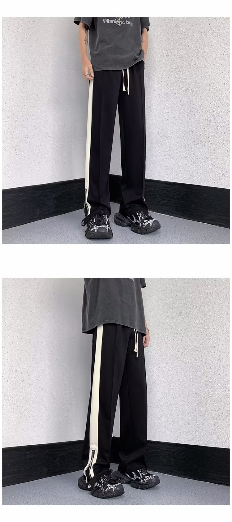사이드 스트라이프 캐주얼 바지 남성 여름 얇은 슬림 스트레이트 마이크로 플레어 바지 아메리칸 바이브 트렌디 스포츠 바지스토어 가기