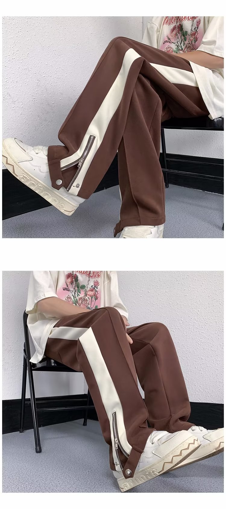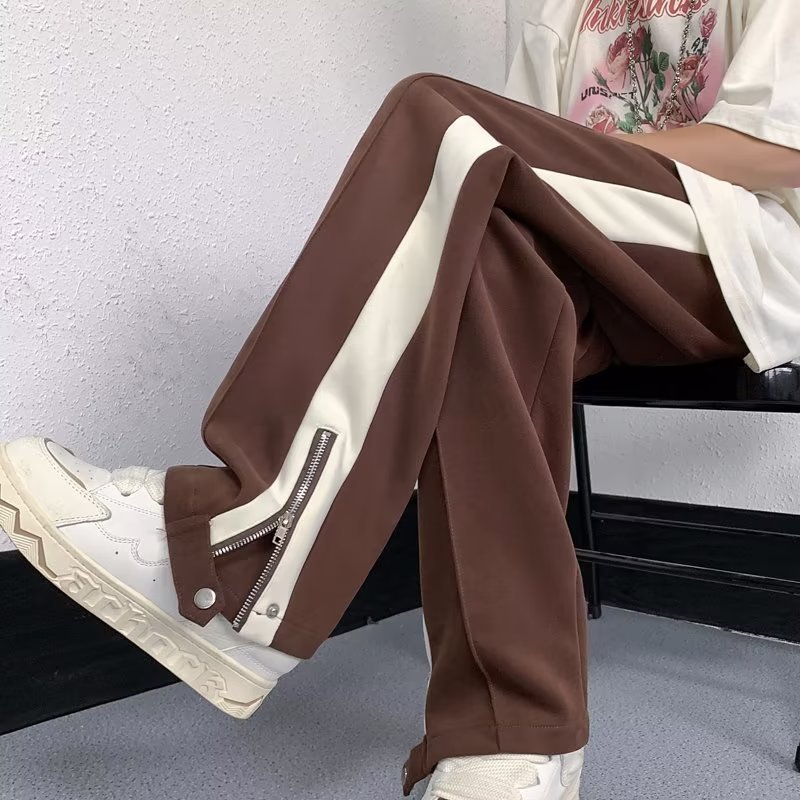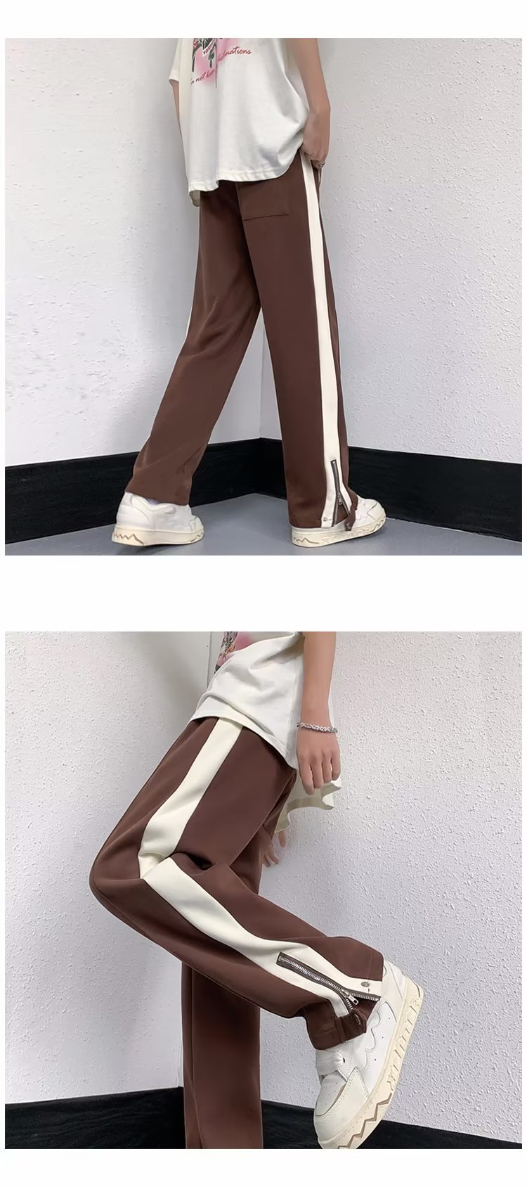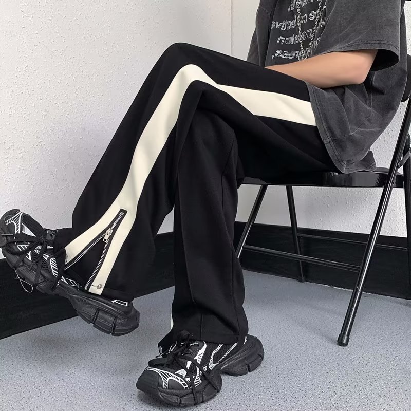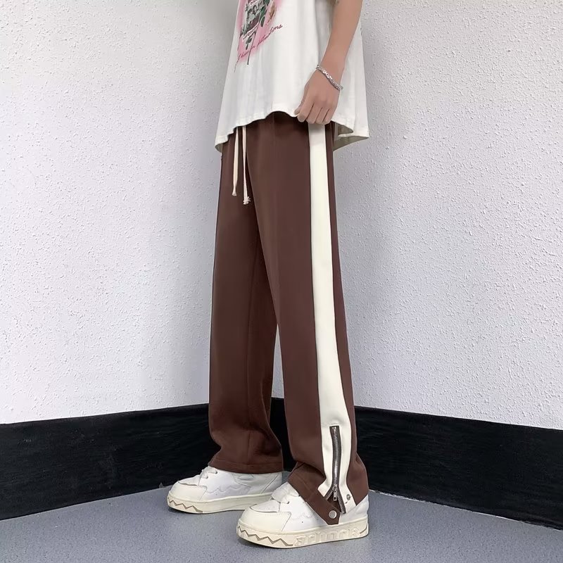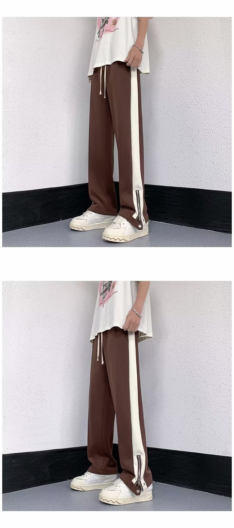 사이드 스트라이프 캐주얼 바지 남성 여름 얇은 슬림 스트레이트 마이크로 플레어 바지 아메리칸 바이브 트렌디 스포츠 바지스토어 가기