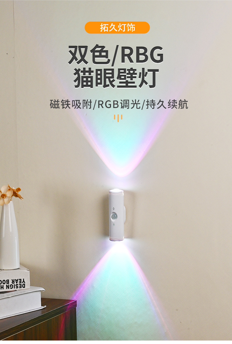 실내 고양이 눈 벽 램프 led 더블 헤드 현대 간단한 3 색 배경 복도 통로 크리 에이 티브 침실 머리맡 램프