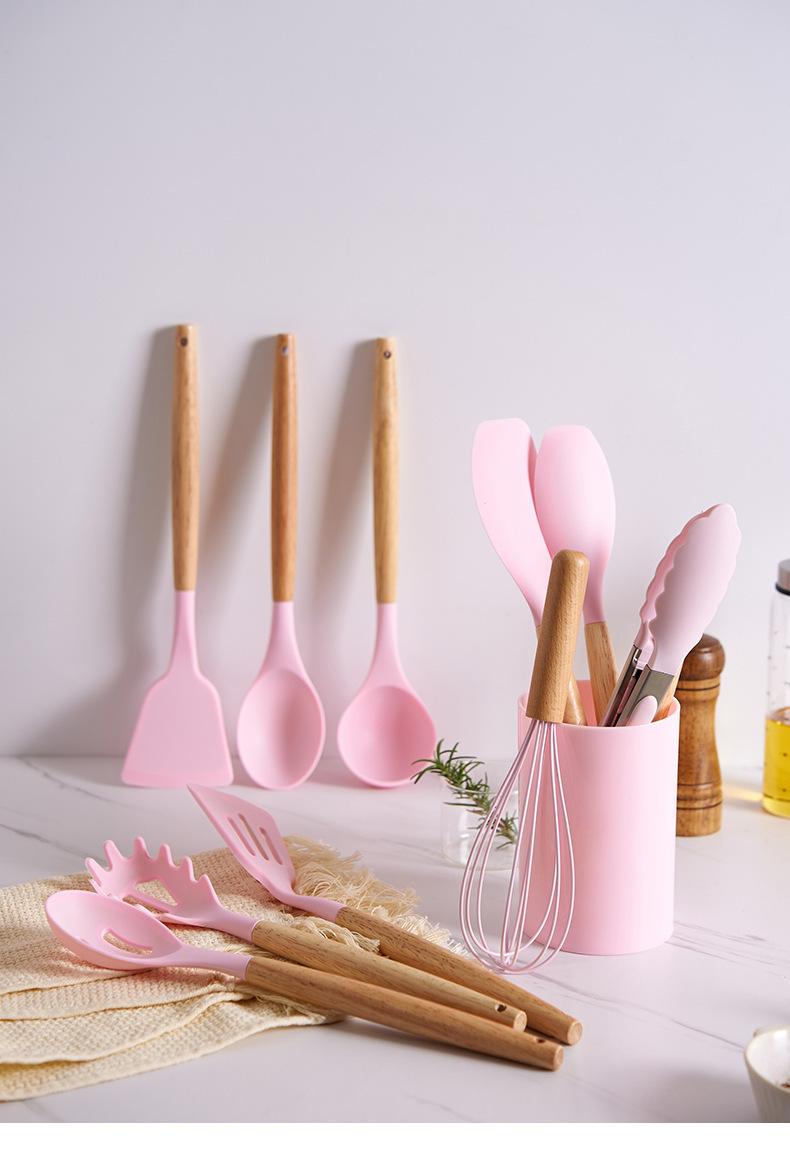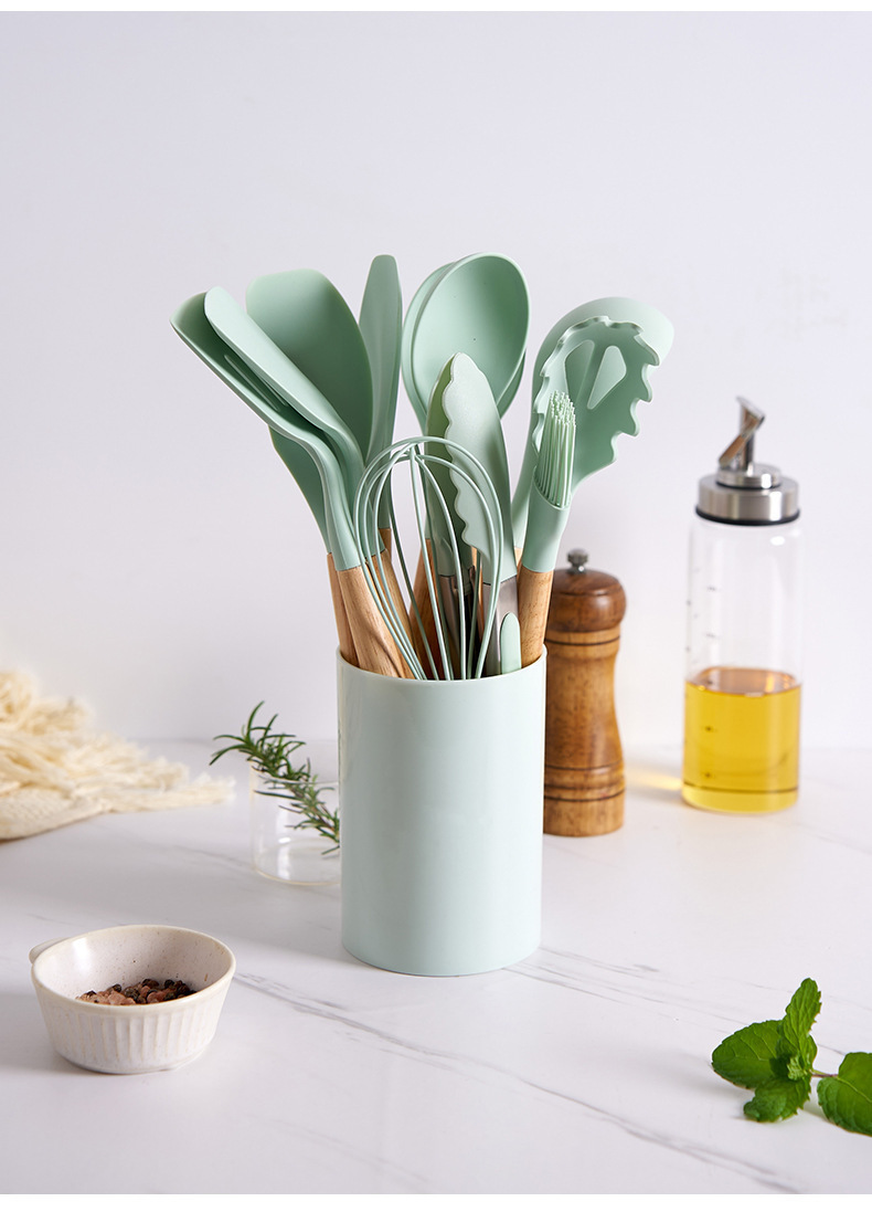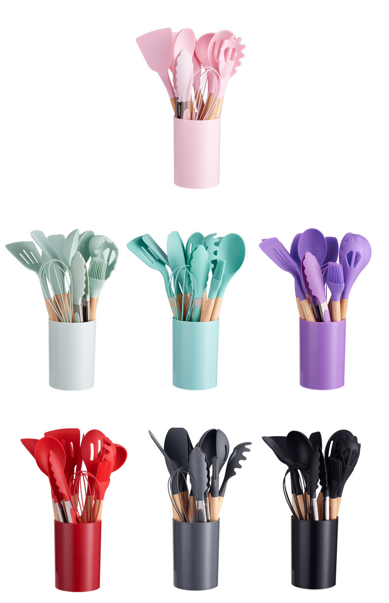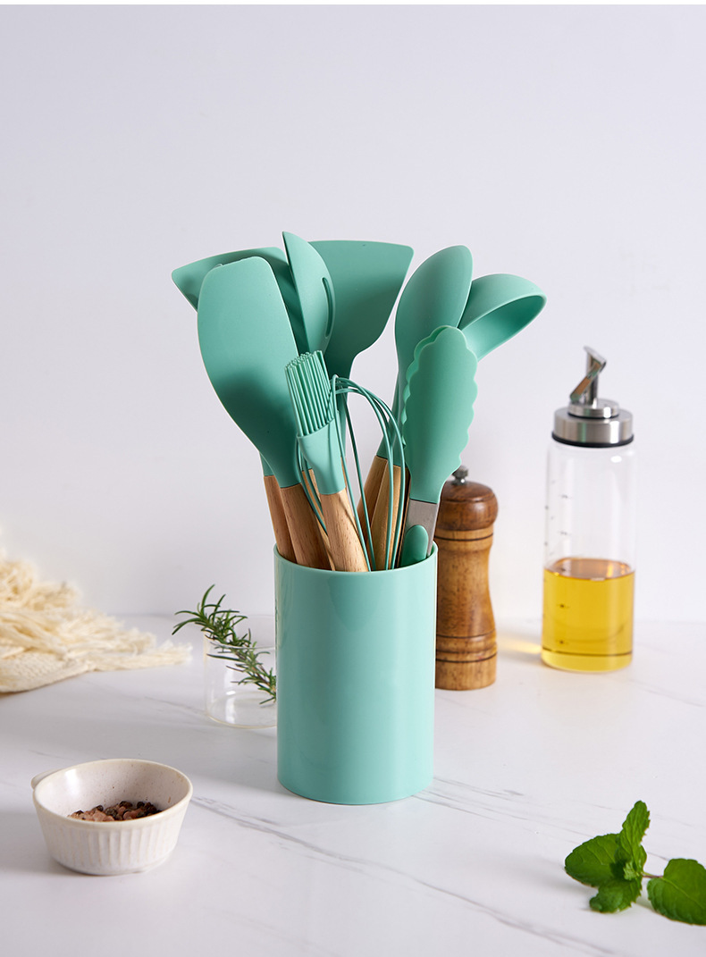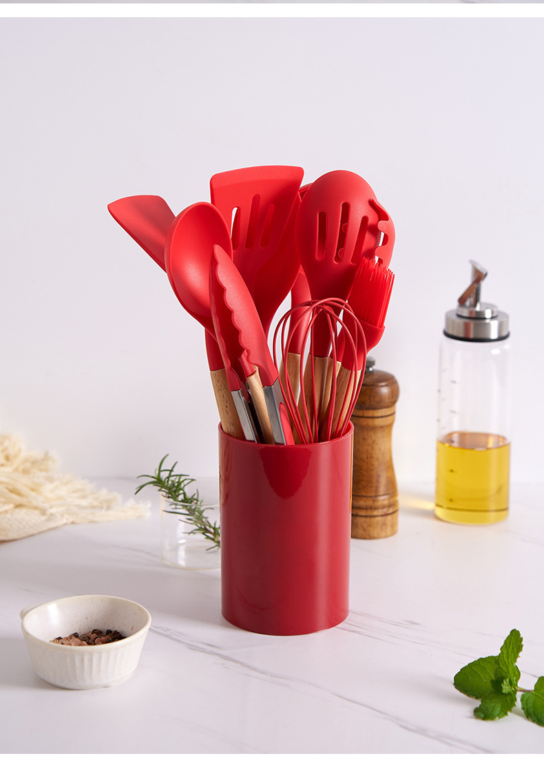 실리콘 주방용품 세트, 내열성, 미끄럼 방지 나무 손잡이, 베이킹 및 요리 도구, 주방 용품, 국경 간 대량 재고 있음