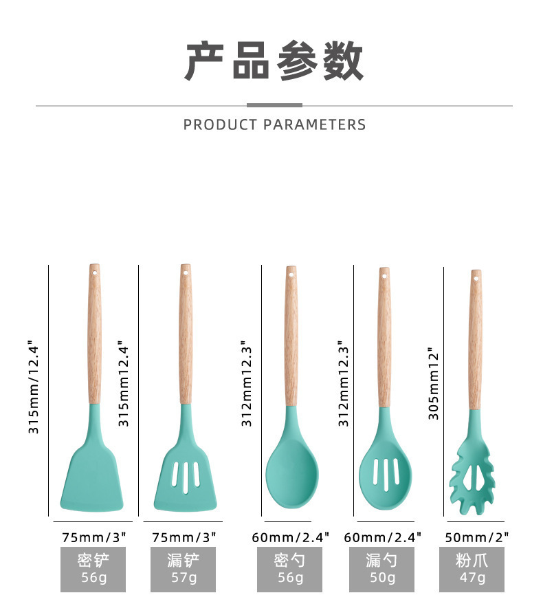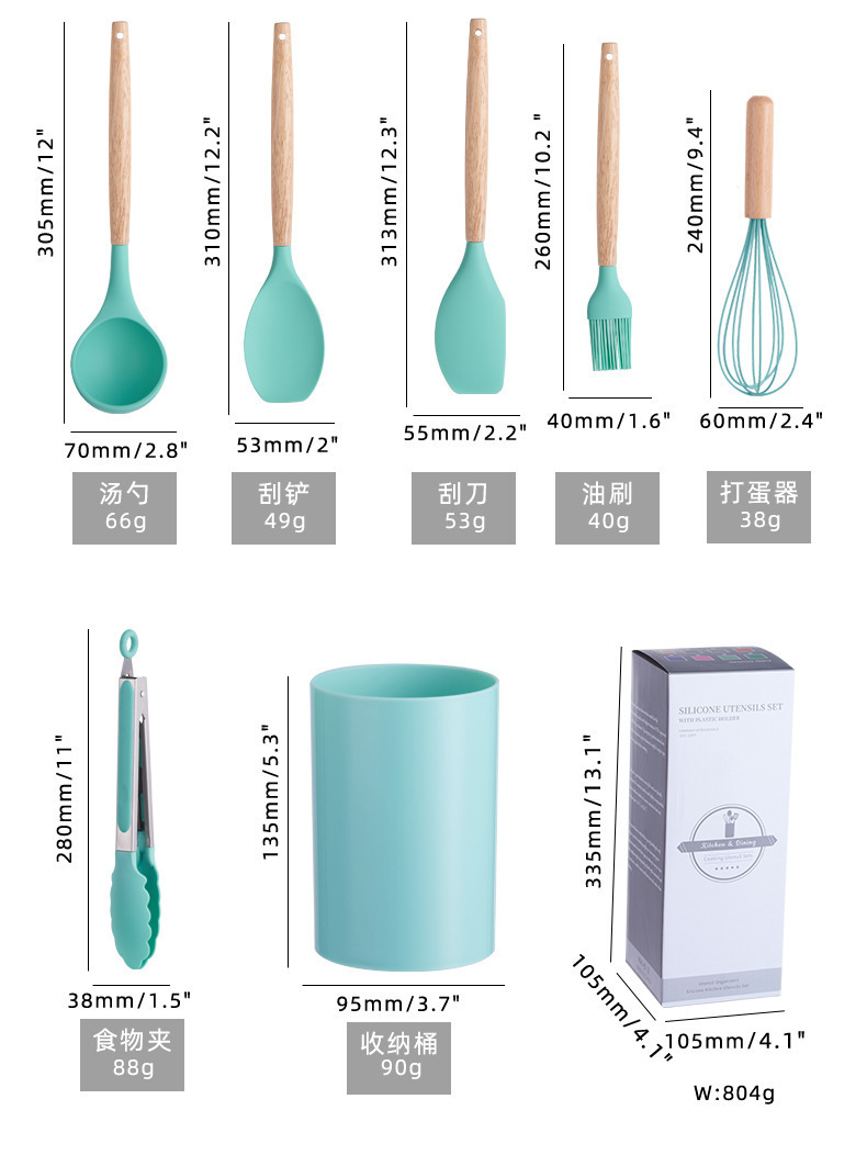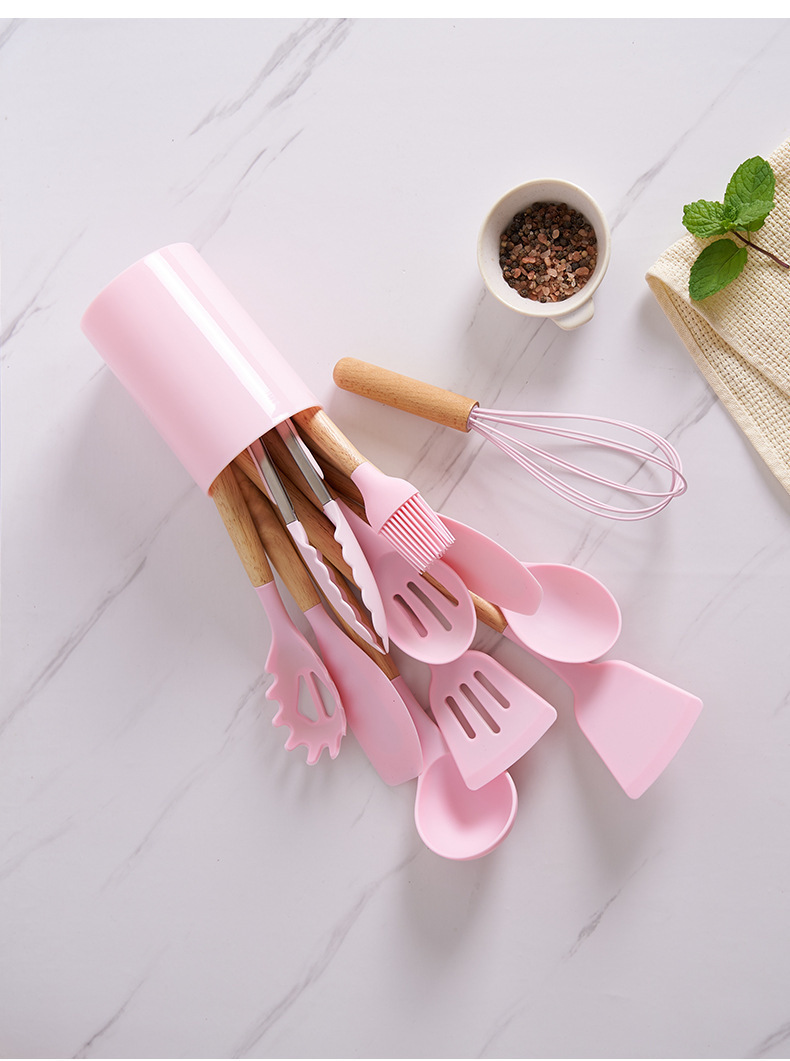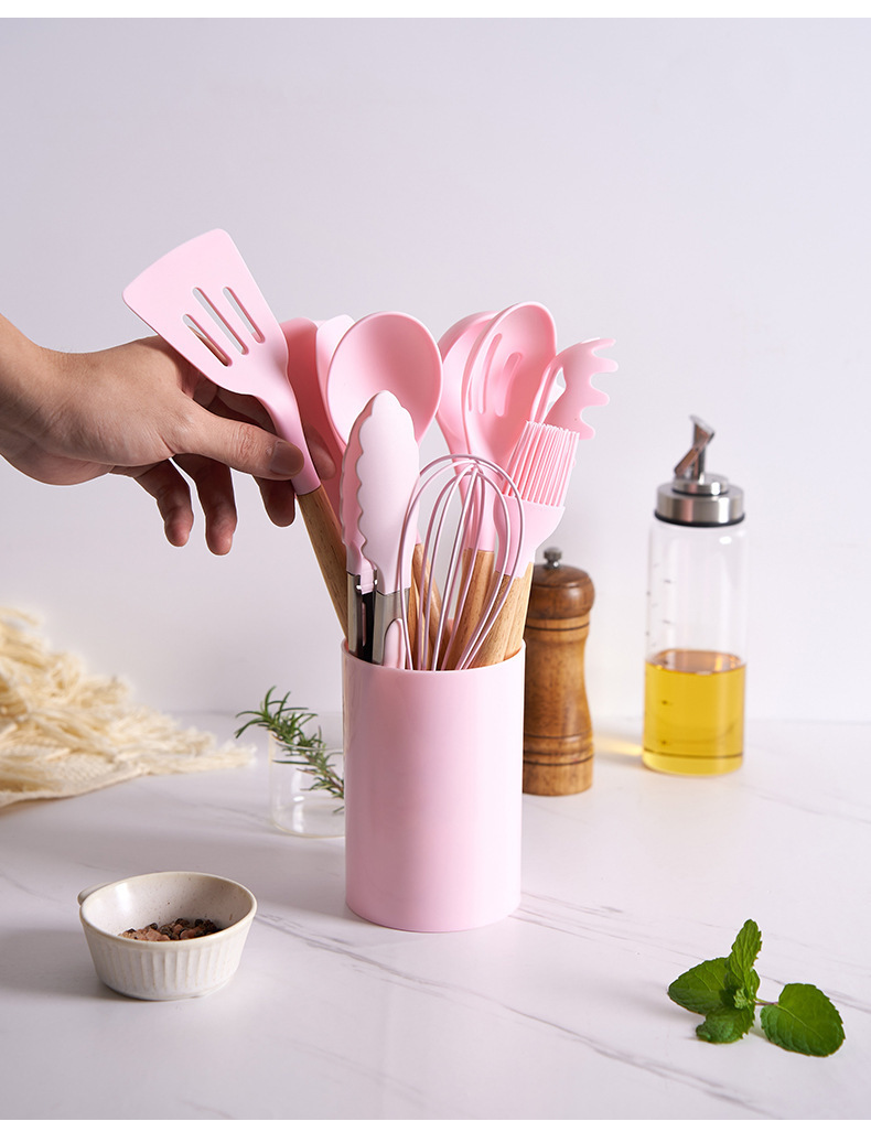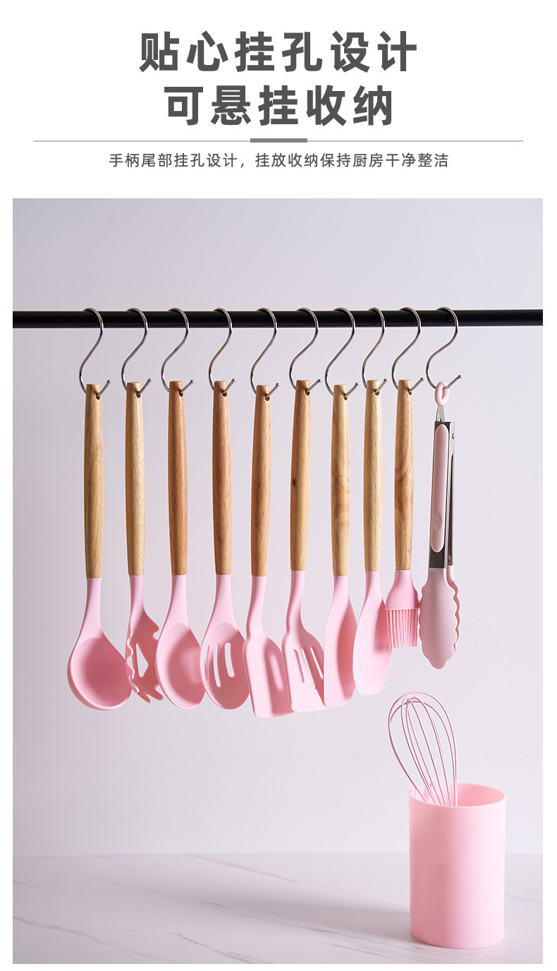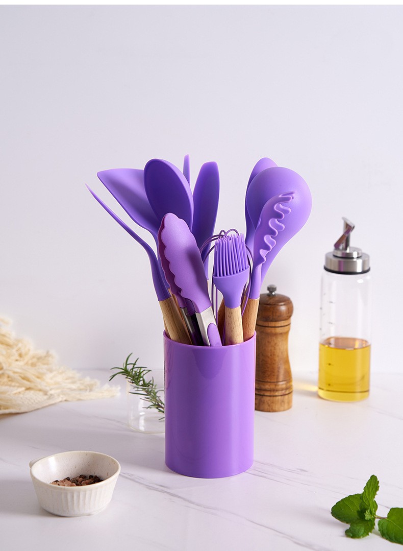 실리콘 주방용품 세트, 내열성, 미끄럼 방지 나무 손잡이, 베이킹 및 요리 도구, 주방 용품, 국경 간 대량 재고 있음