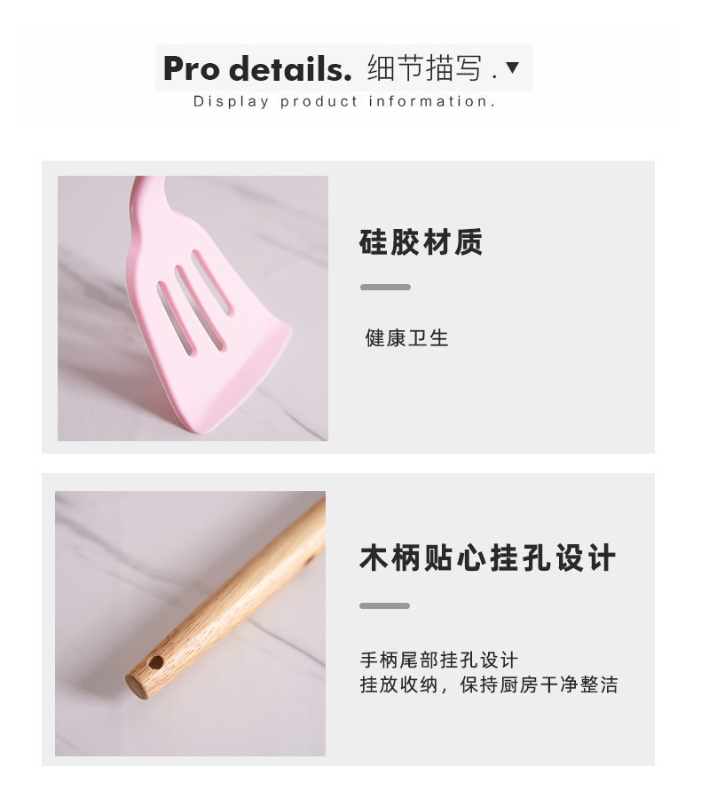 실리콘 주방용품 세트, 내열성, 미끄럼 방지 나무 손잡이, 베이킹 및 요리 도구, 주방 용품, 국경 간 대량 재고 있음스토어 가기
