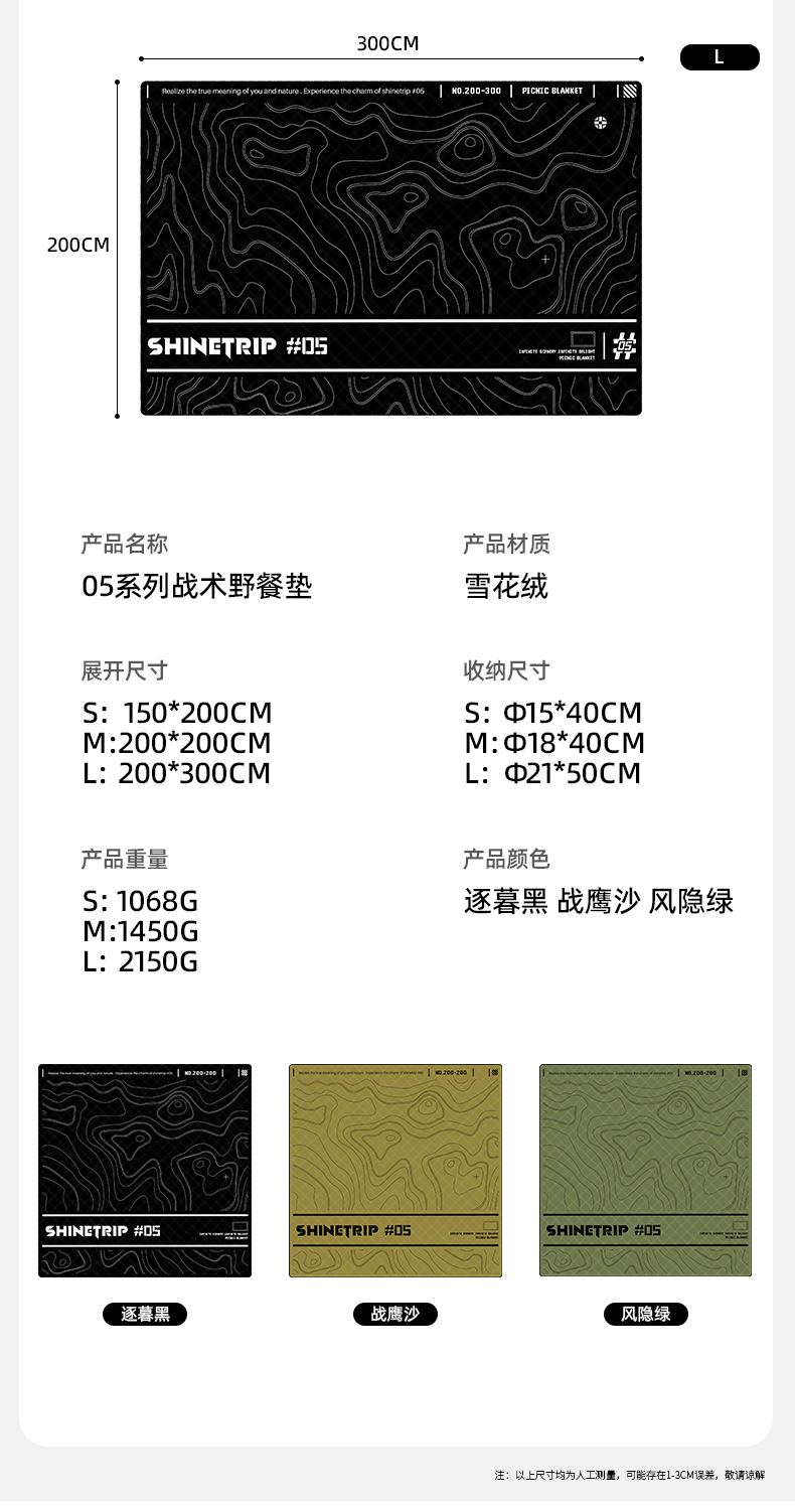 ShineTrip 산 재미 야외 05 시리즈 전술 피크닉 매트 눈송이 벨벳 원단 경량 초음파 방습 매트