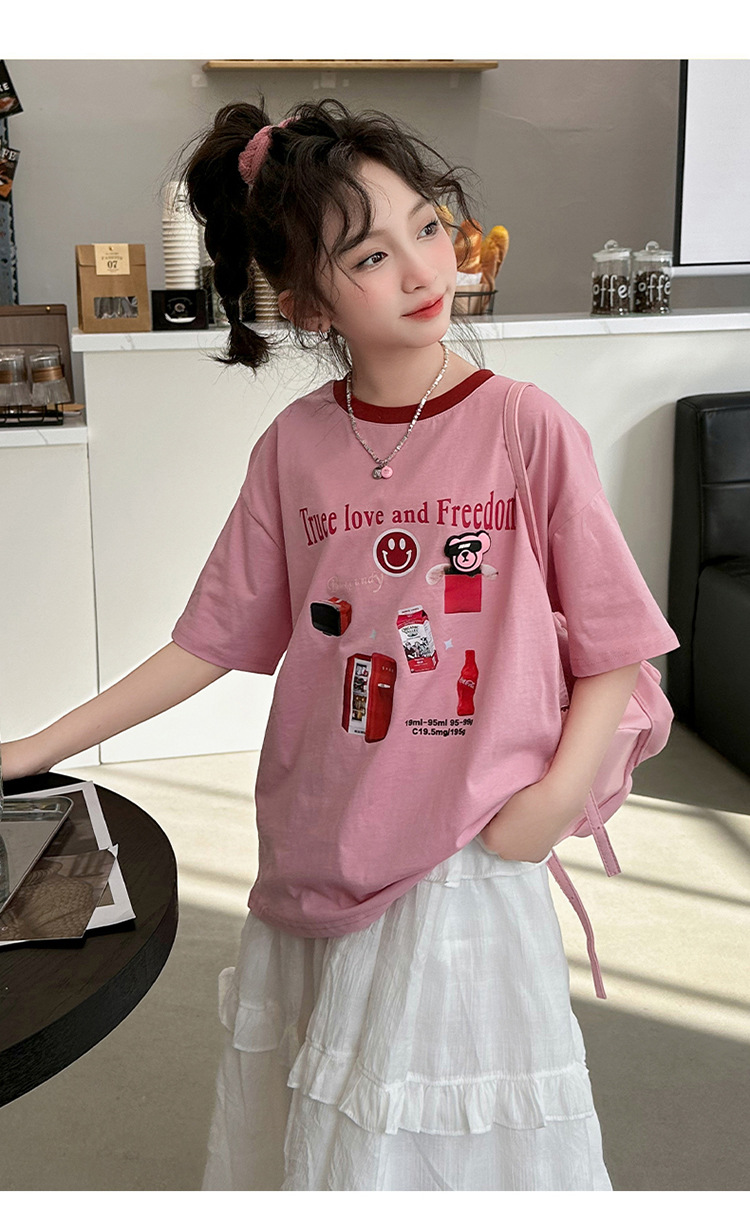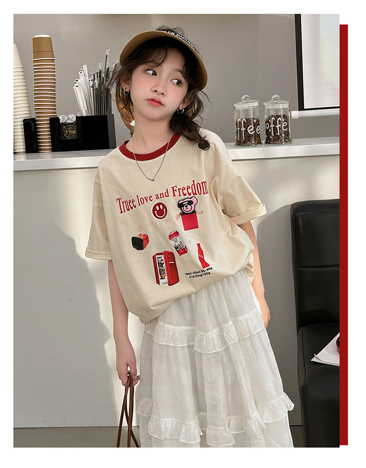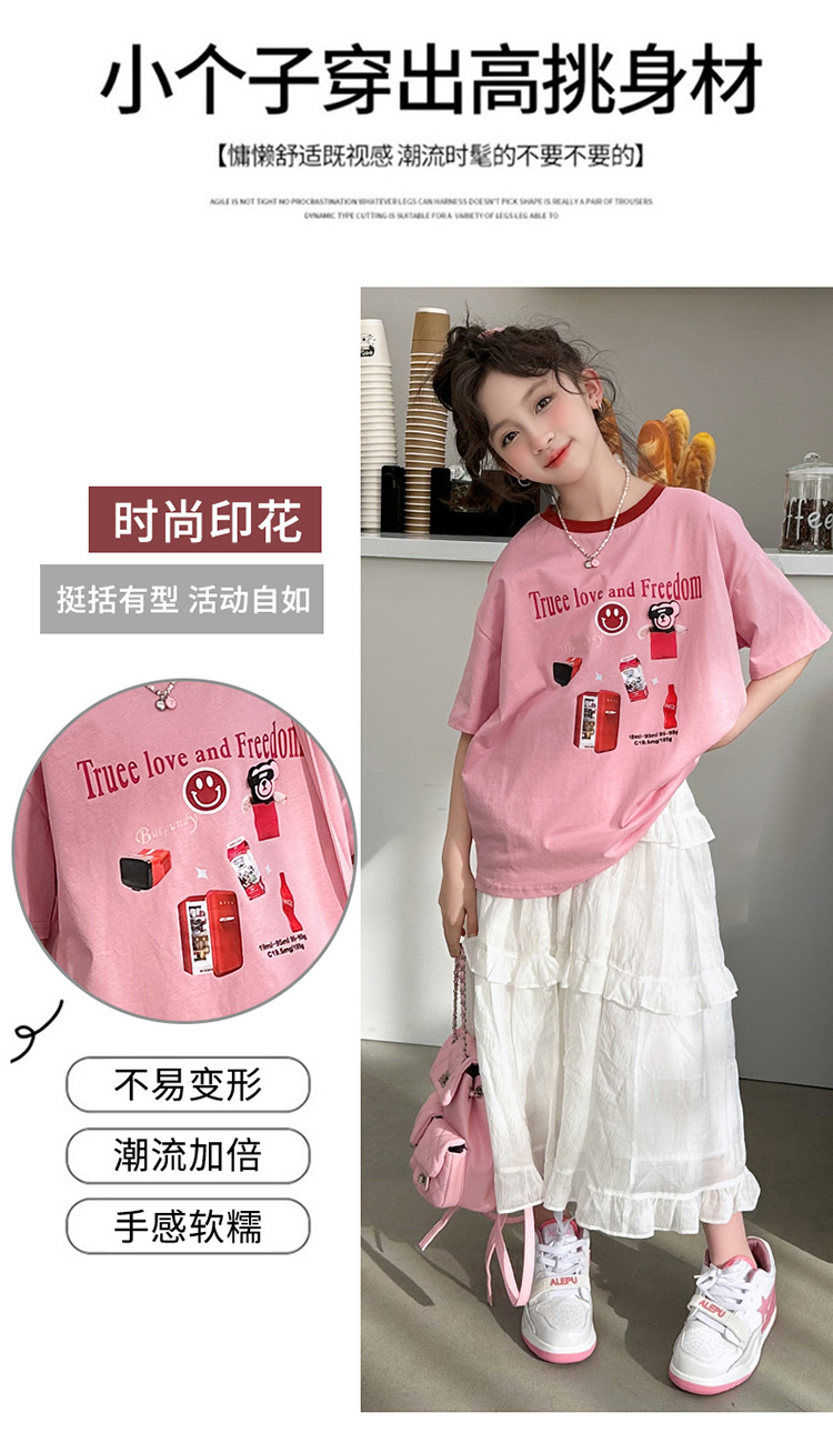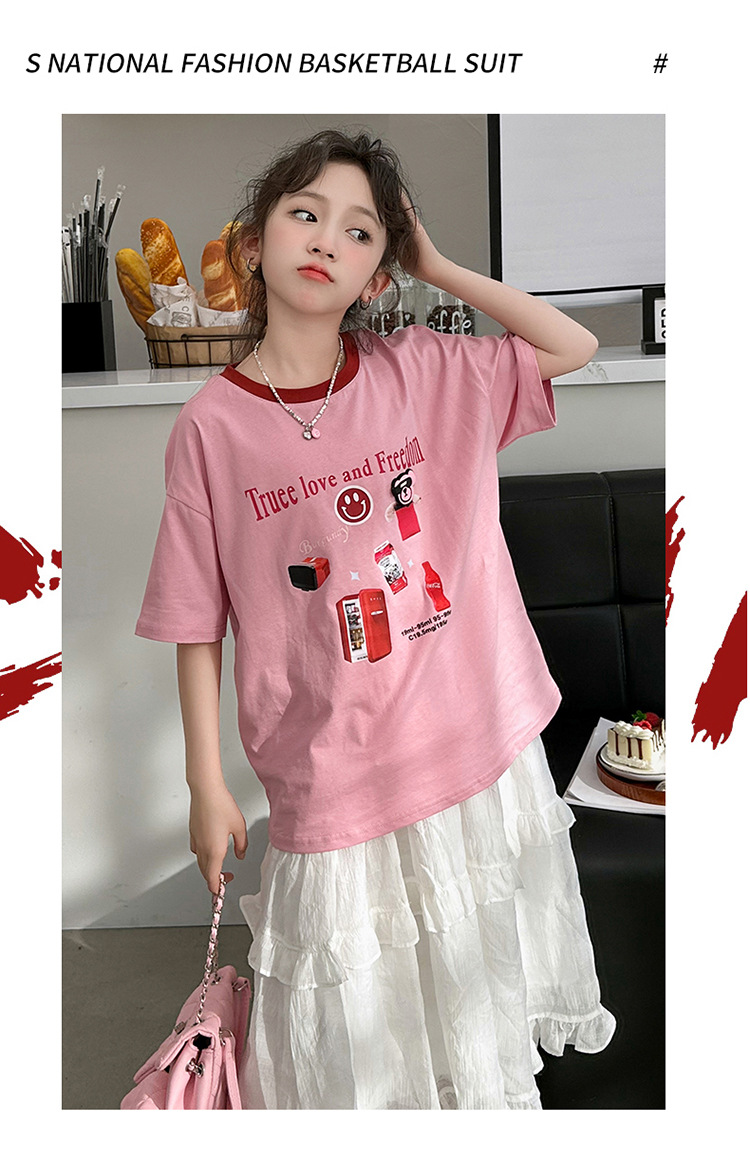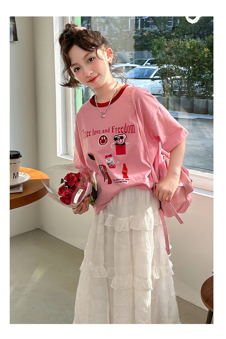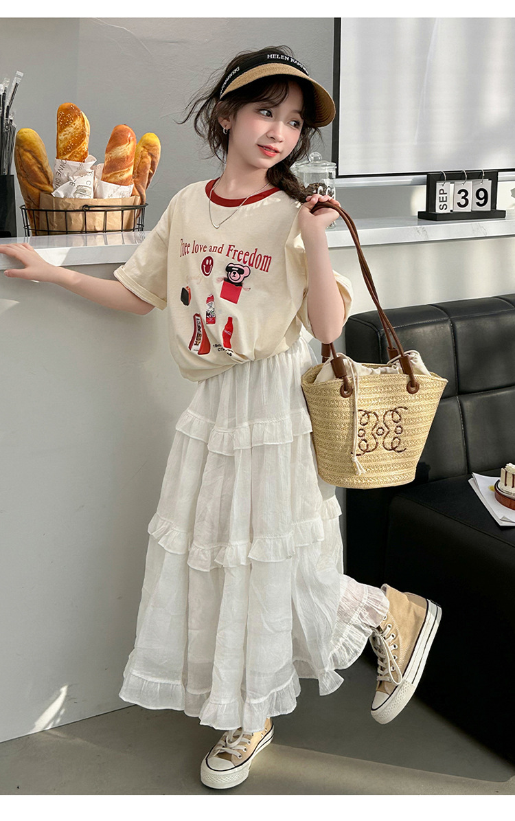 여자 여름 세트 여름 2025 새로운 캐주얼 올 매치 탑 어린이 스위트 티셔츠 케이크 스커트 투피스 세트 6