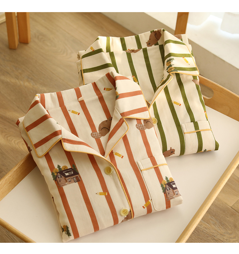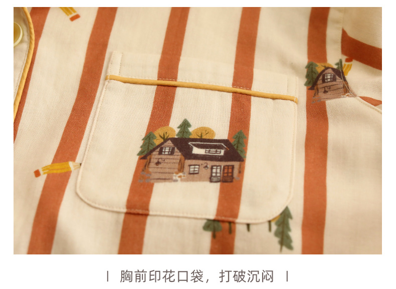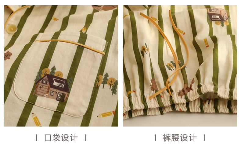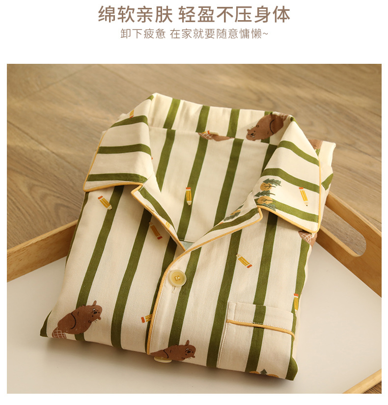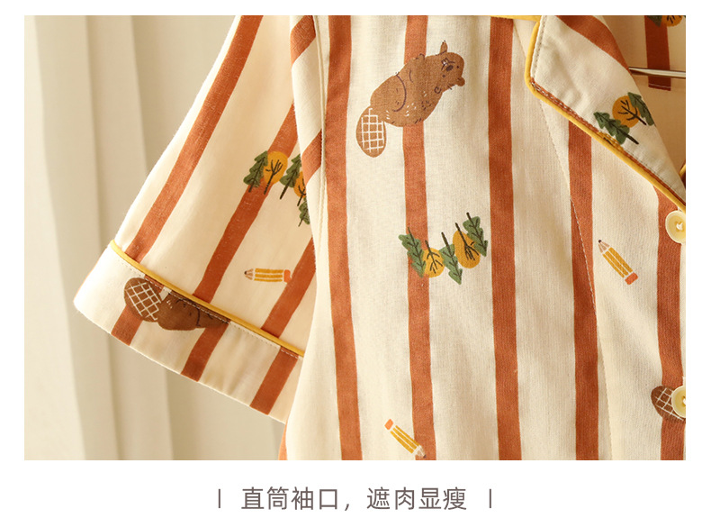 여름 새 스타일 잠옷 더블 레이어 거즈 순수 코튼 커플 만화 반팔 중간 바지 얇은 홈웨어 세트스토어 가기