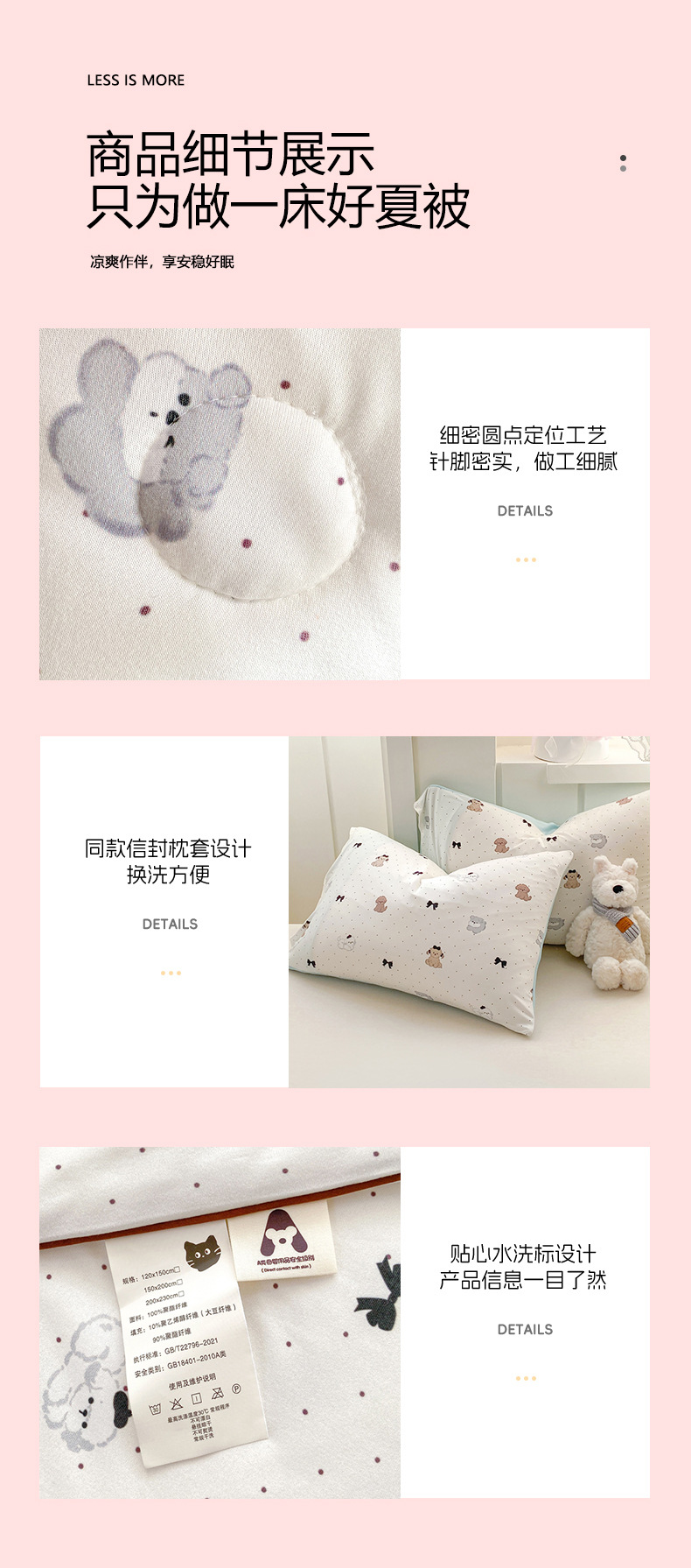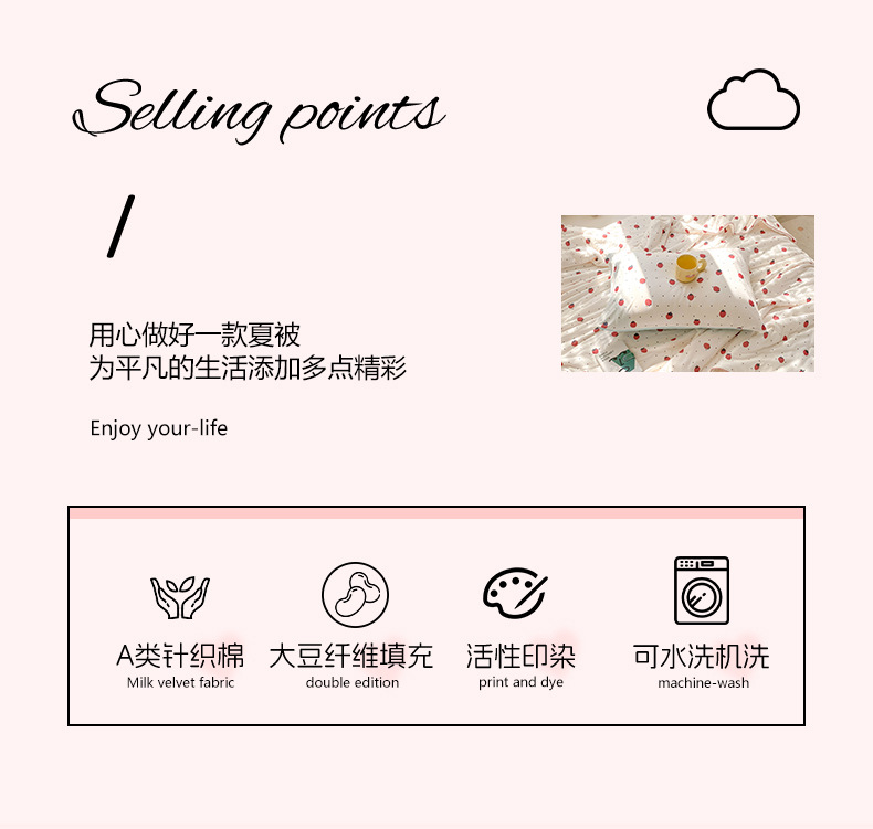 • 여름이불 4종세트 [180*200cm 여름이불 + 230x250cm 침대시트 + 48x74cm 베갯잇 2개]