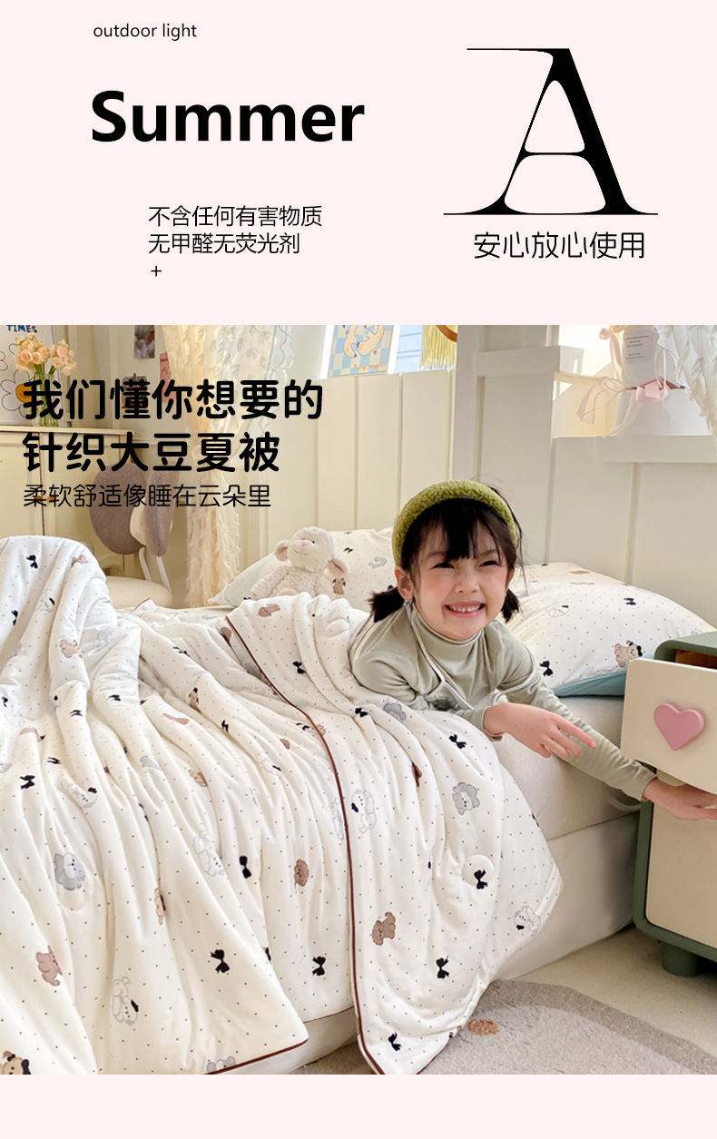 클래스 A 어린이 니트 면화 여름 시원한 이불 기계 세탁기 여름 어린이 얇은 이불 콩 섬유 봄과 가을 에어컨 이불