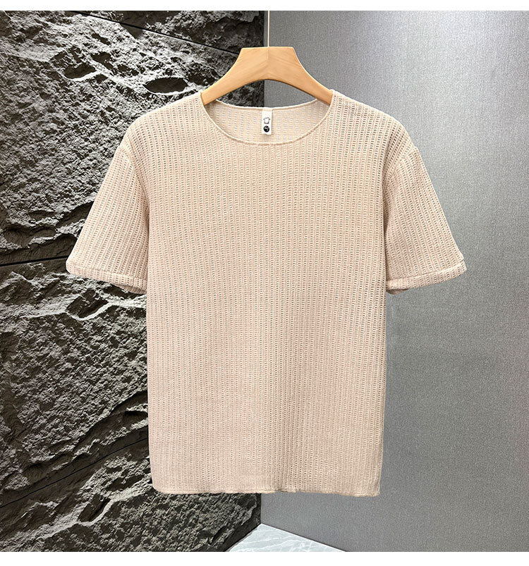 남성용 여름 반팔 티셔츠, 트렌디한 브랜드 디자인, 남성용 중공 통기성 의류, 2025 새로운 여름 얇은 상의스토어 가기