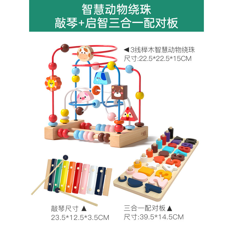 • 지혜 동물 구슬 + 피아노 두드리기 + 지혜 3-in-1 매칭 보드