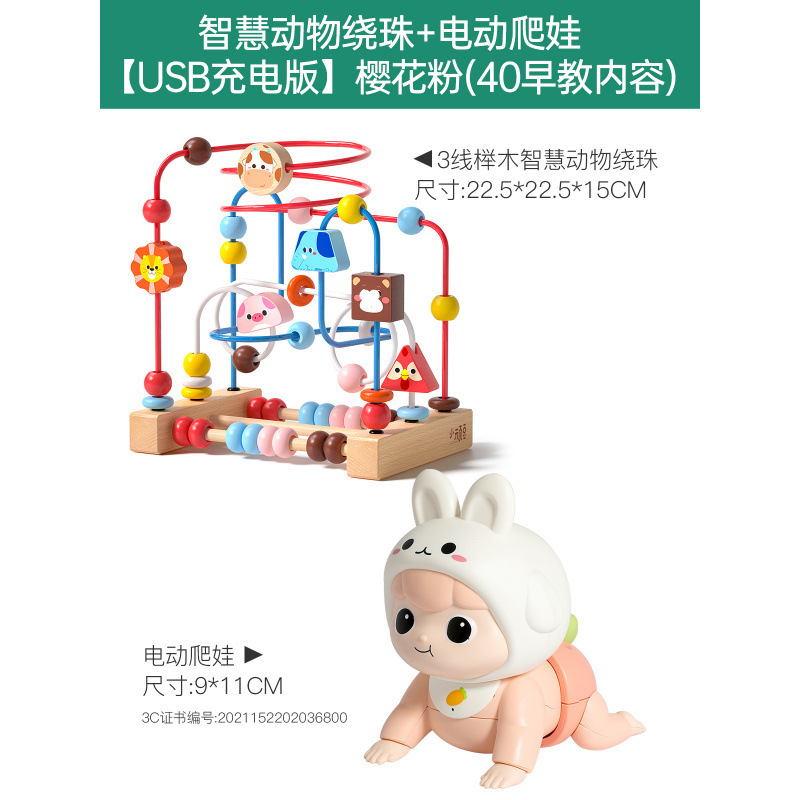 • 똑똑한 동물구슬 + 전동 크롤러 [USB 충전식 버전] 사쿠라 핑크 (유아교육 콘텐츠 40종)