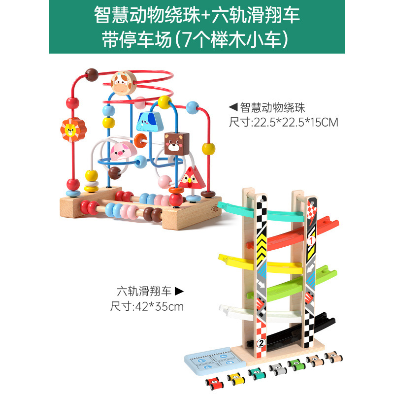 • 스마트 동물구슬 + 주차장이 있는 6트랙 글라이더(너도밤나무 자동차 7대)