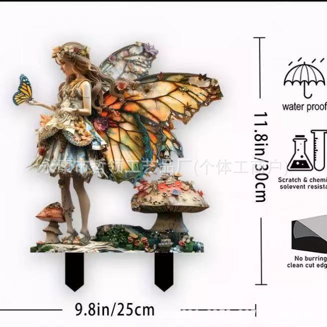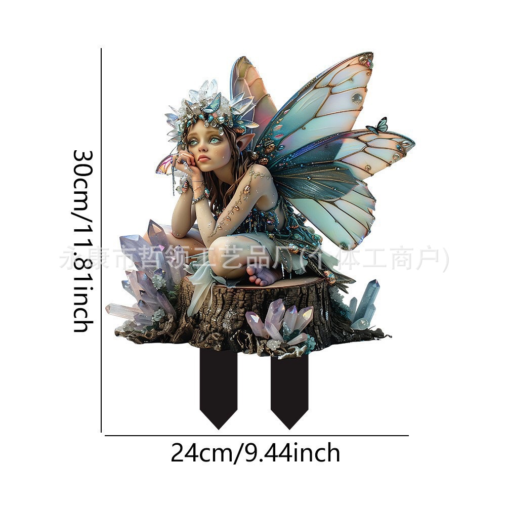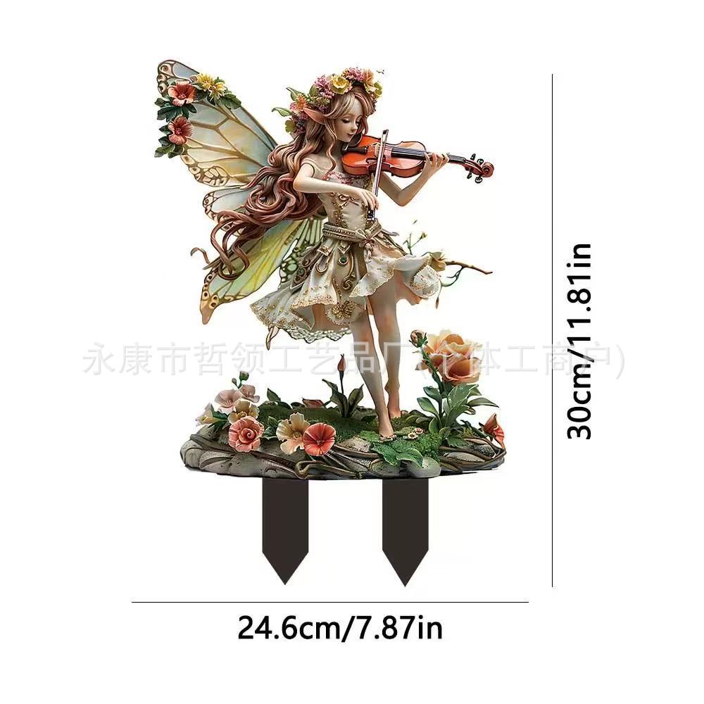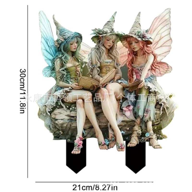 국경 간 보헤미안 요정과 고양이 화분 정원 장식 장식품 아크릴 야외 정원 장식 바닥 삽입스토어 가기