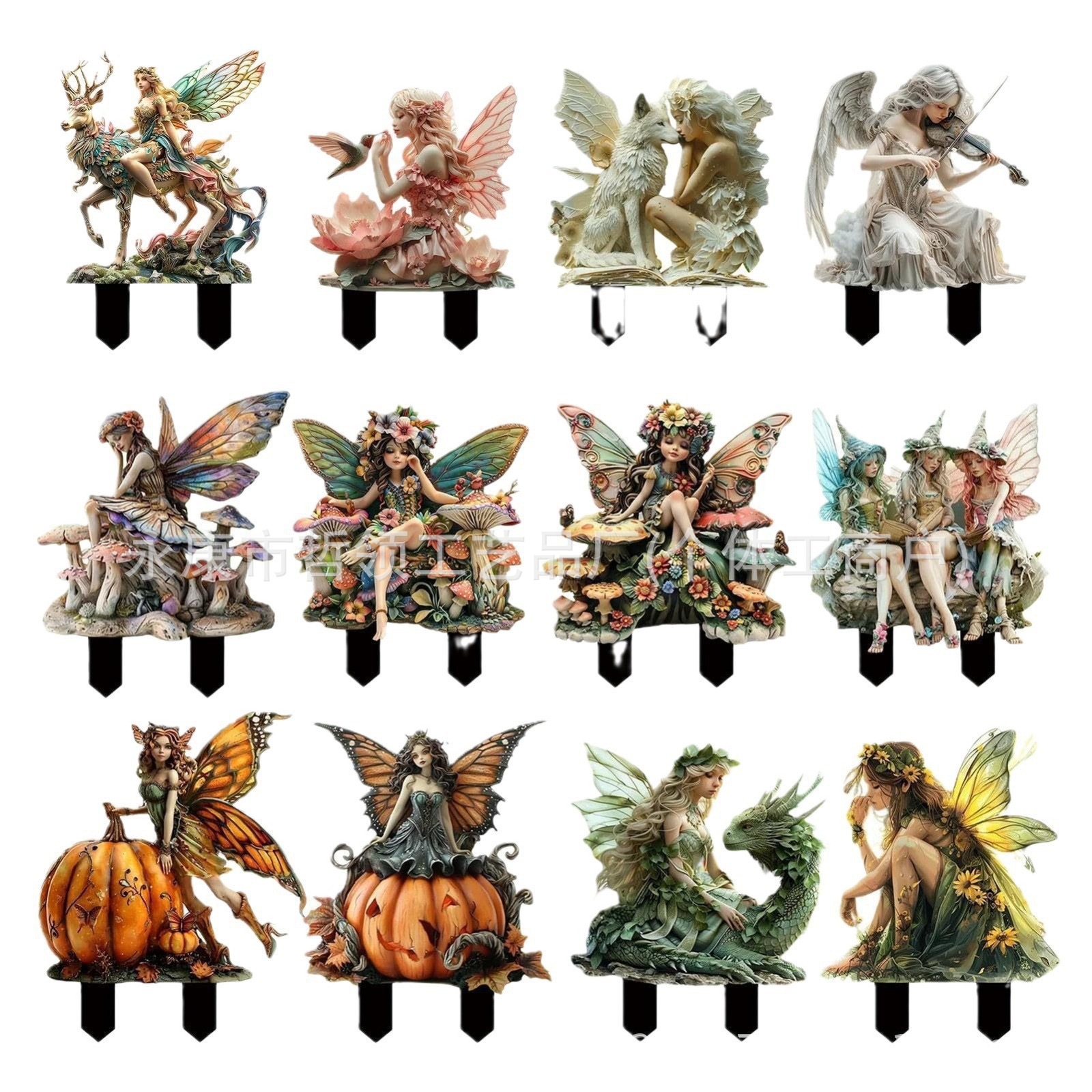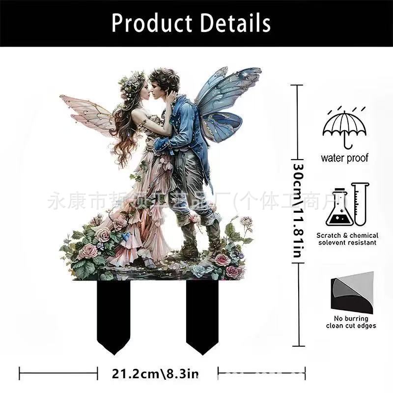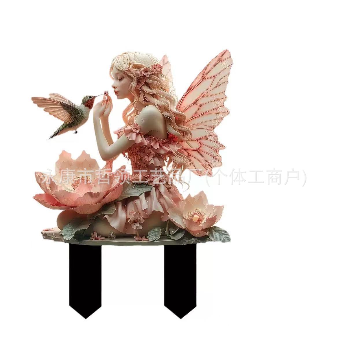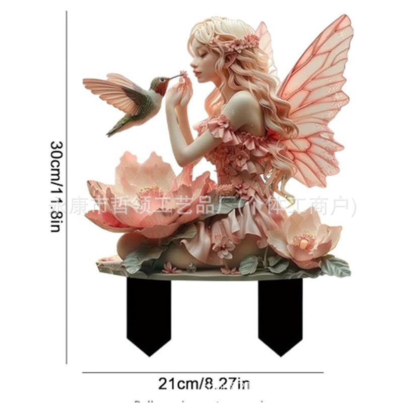 국경 간 보헤미안 요정과 고양이 화분 정원 장식 장식품 아크릴 야외 정원 장식 바닥 삽입스토어 가기